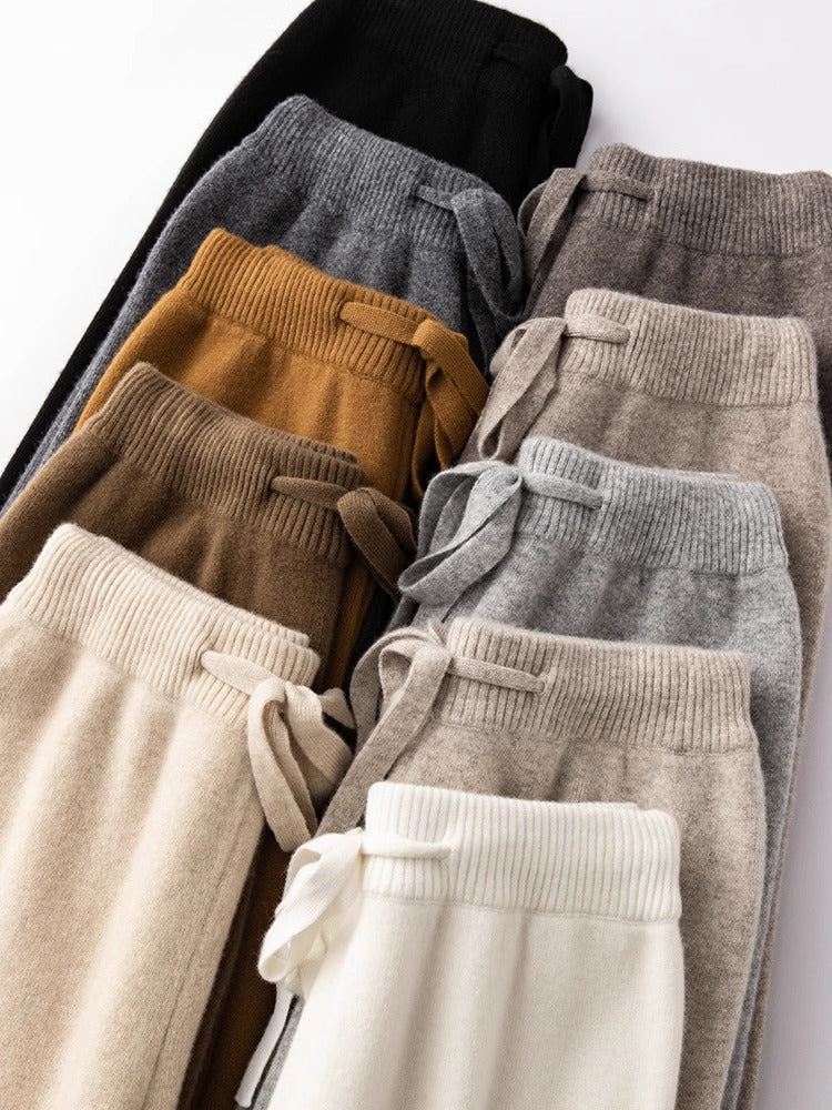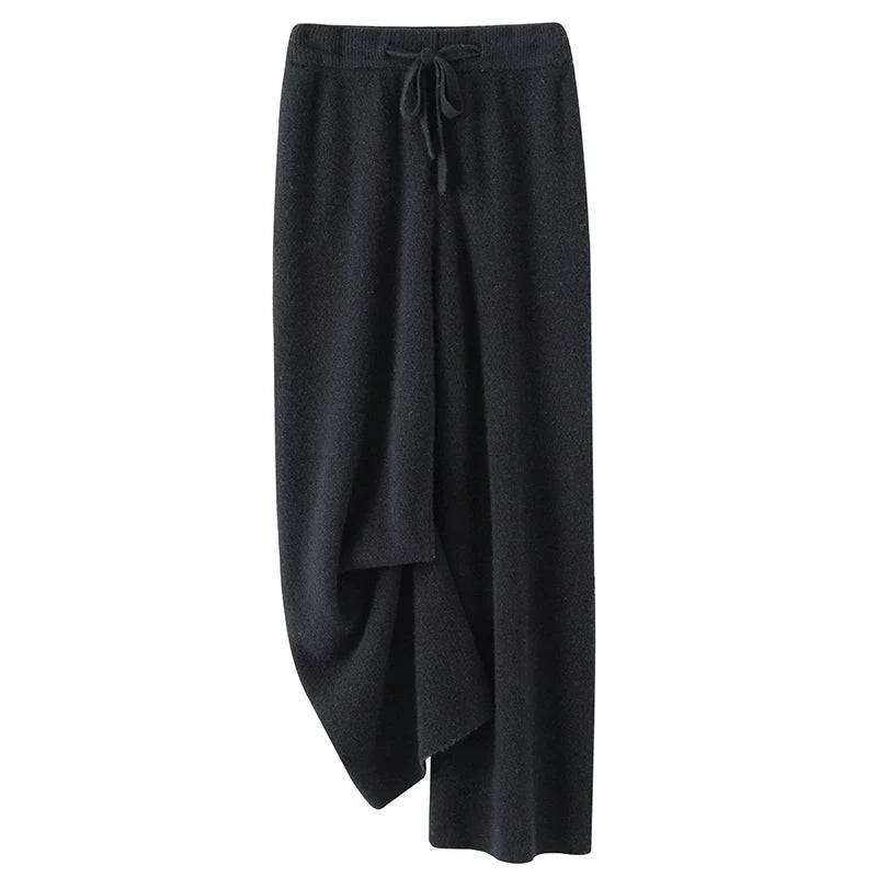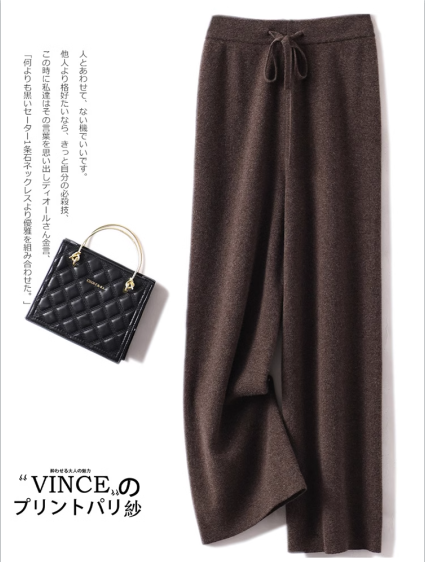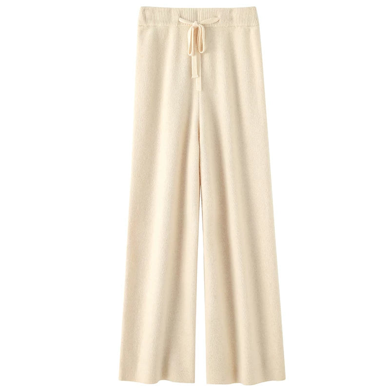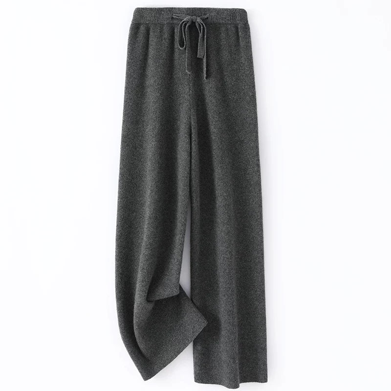 Payız və Qış üçün Qadın Yumşaq və Rahat Yun Şalvarları: Yüksək Belli, Geniş Ayaqlı, Kaşmir Trikotaj Düz Ayaqlı Şalvar, Qalın və Yun Astarlı Uzun Şalvar