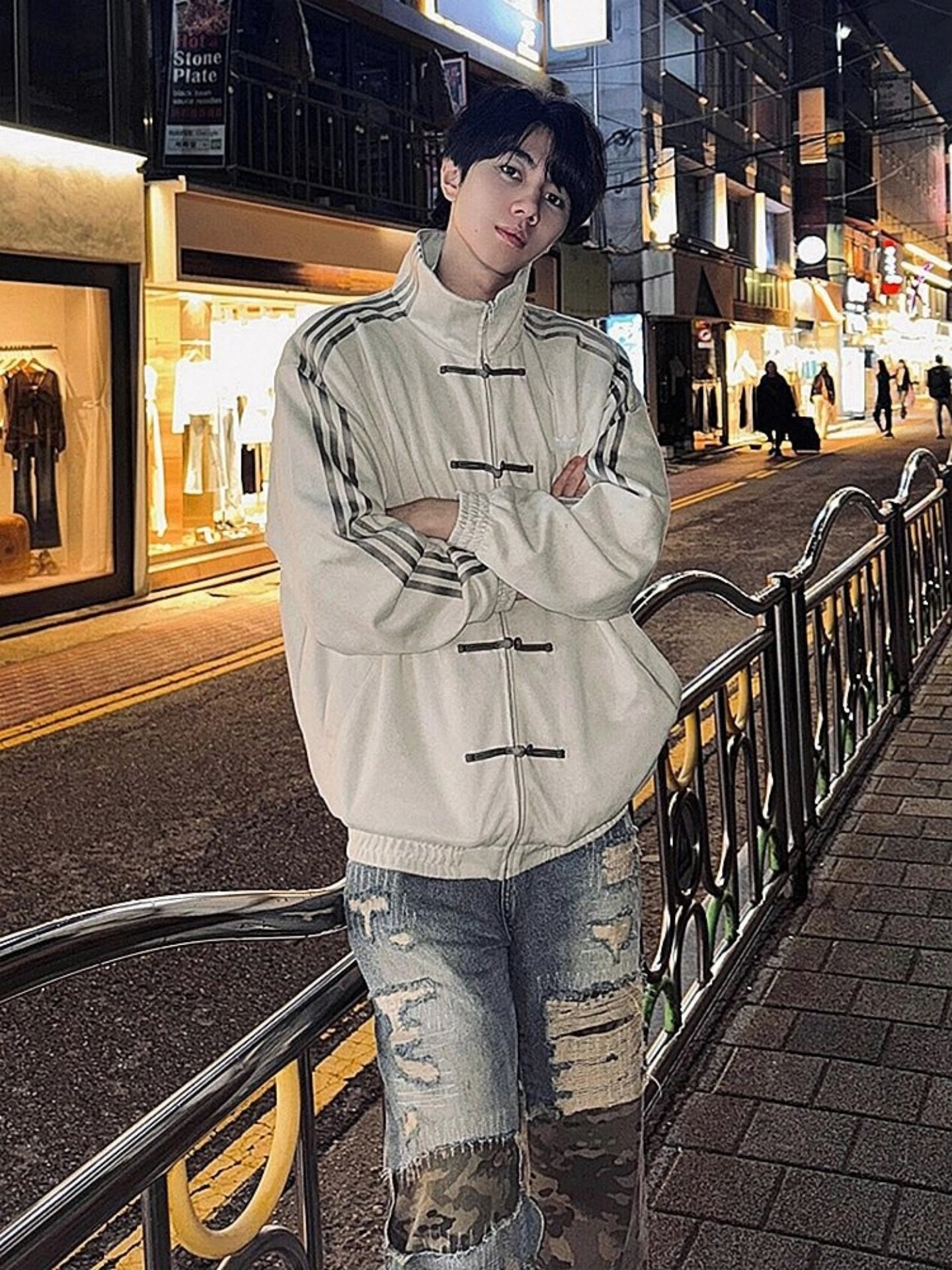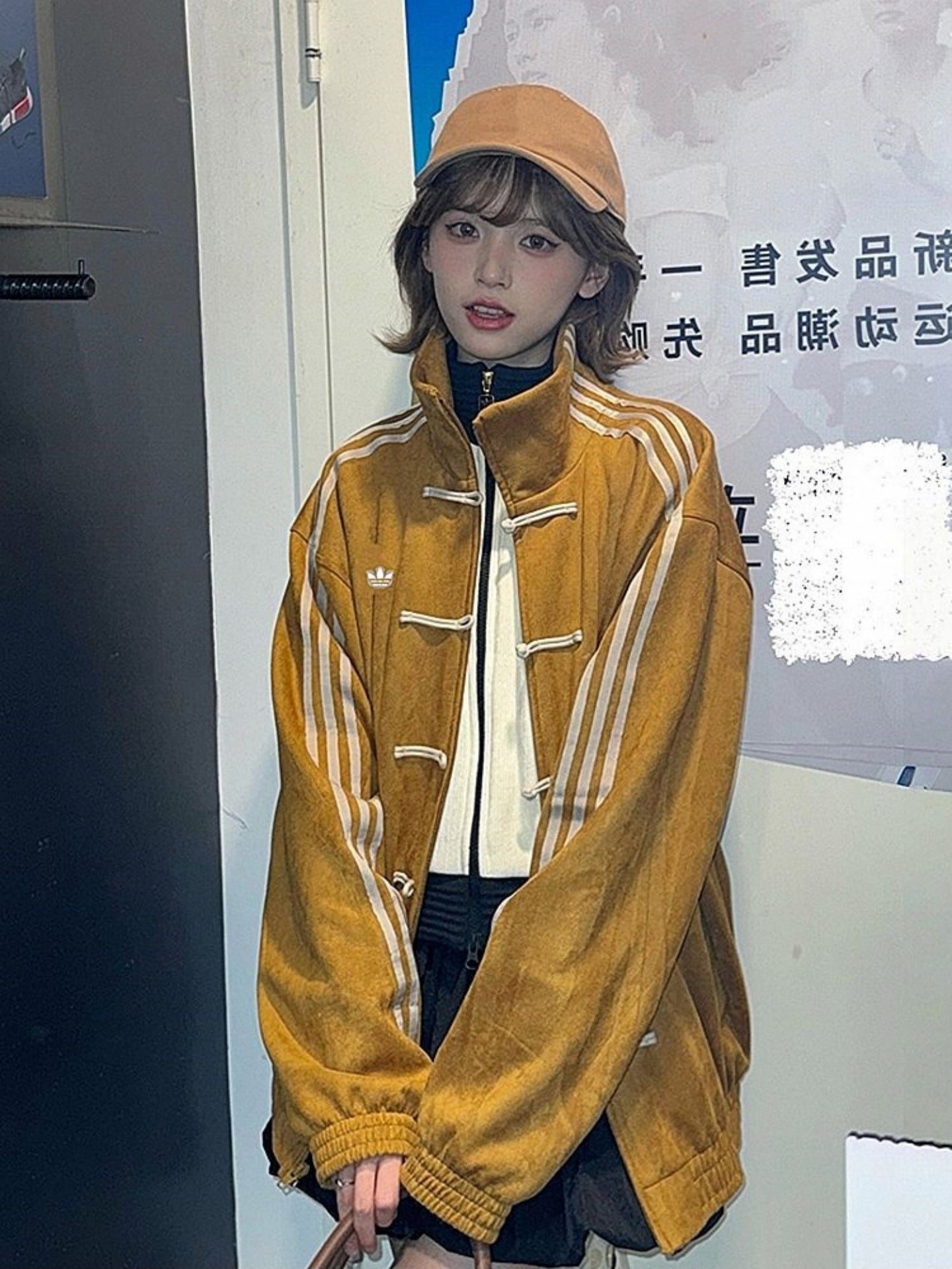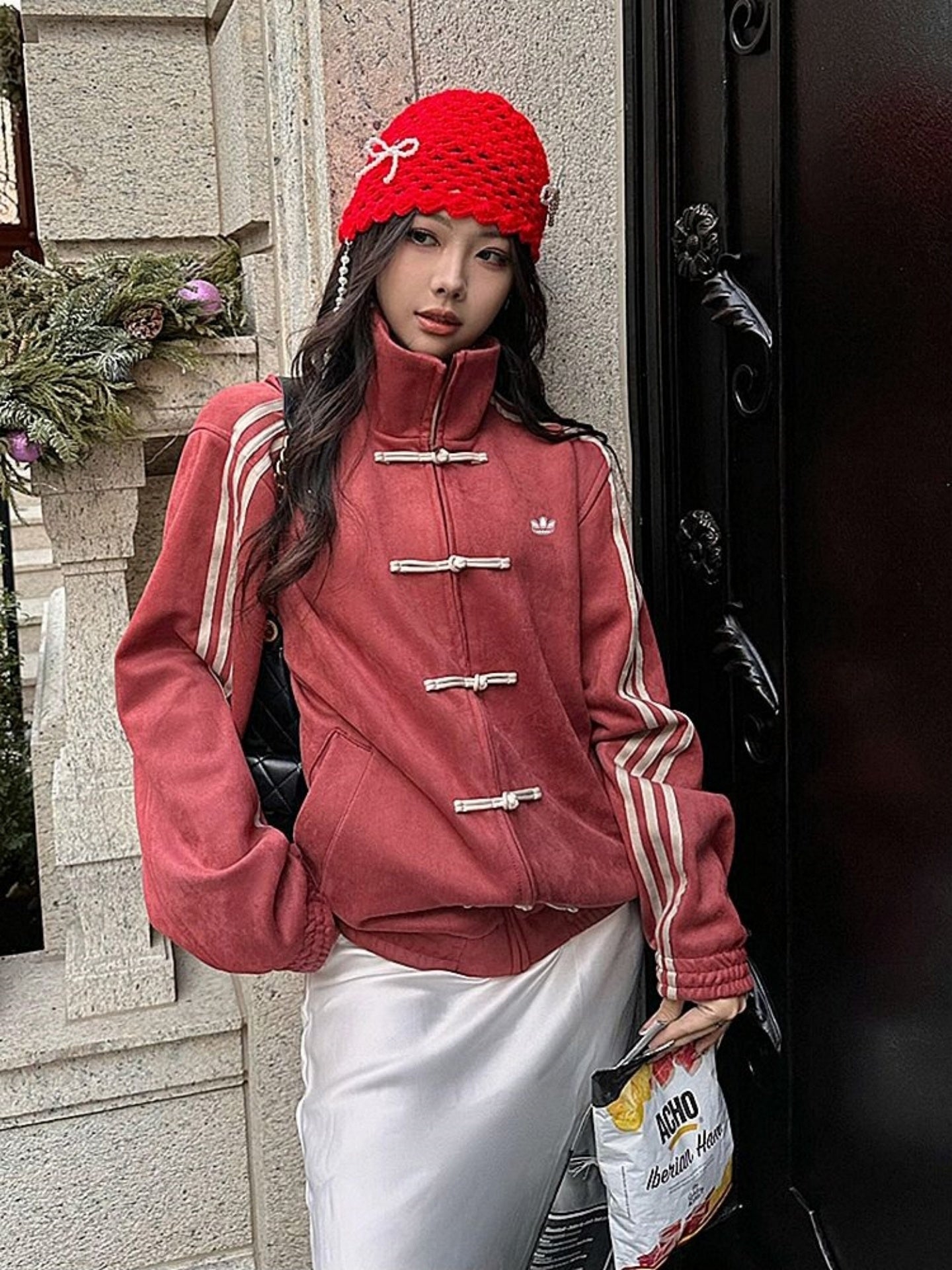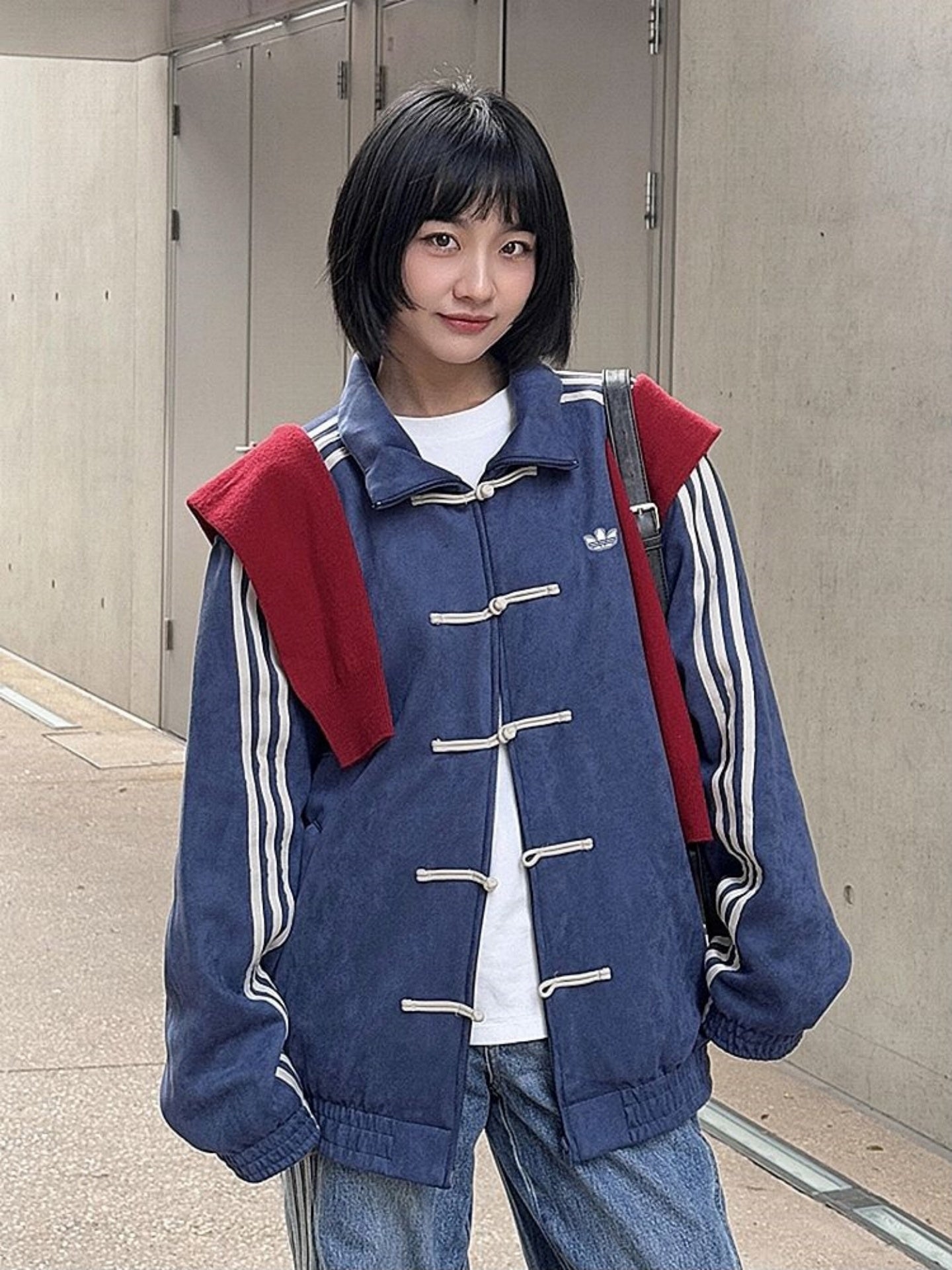 Populyar Tövsiyə | Wang Anyu's Stilində Zamşa Qatlanan Düyməli Yeni Çin Stilində Tang Kostyumlu Dayaq Yaxalı Gödəkçə JZ9927
