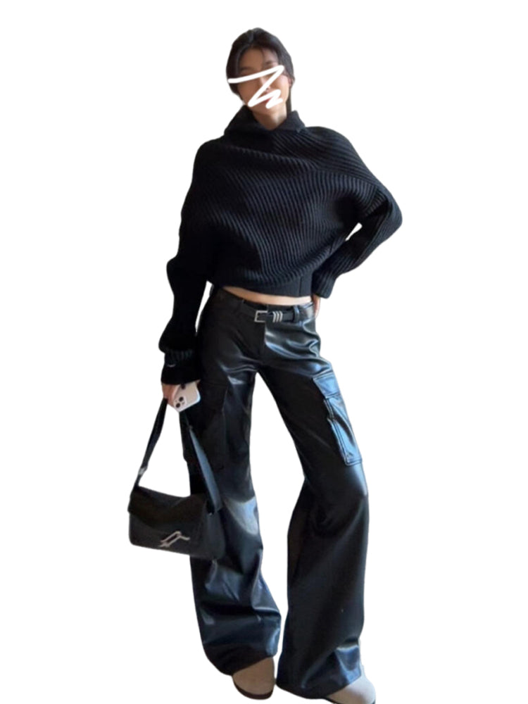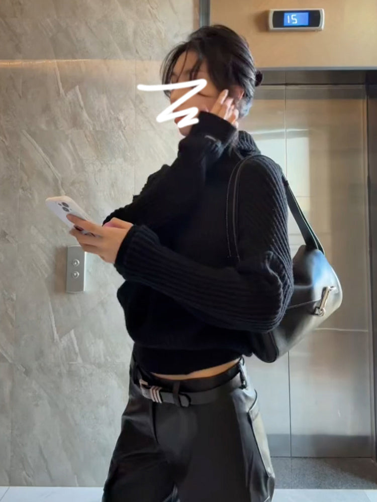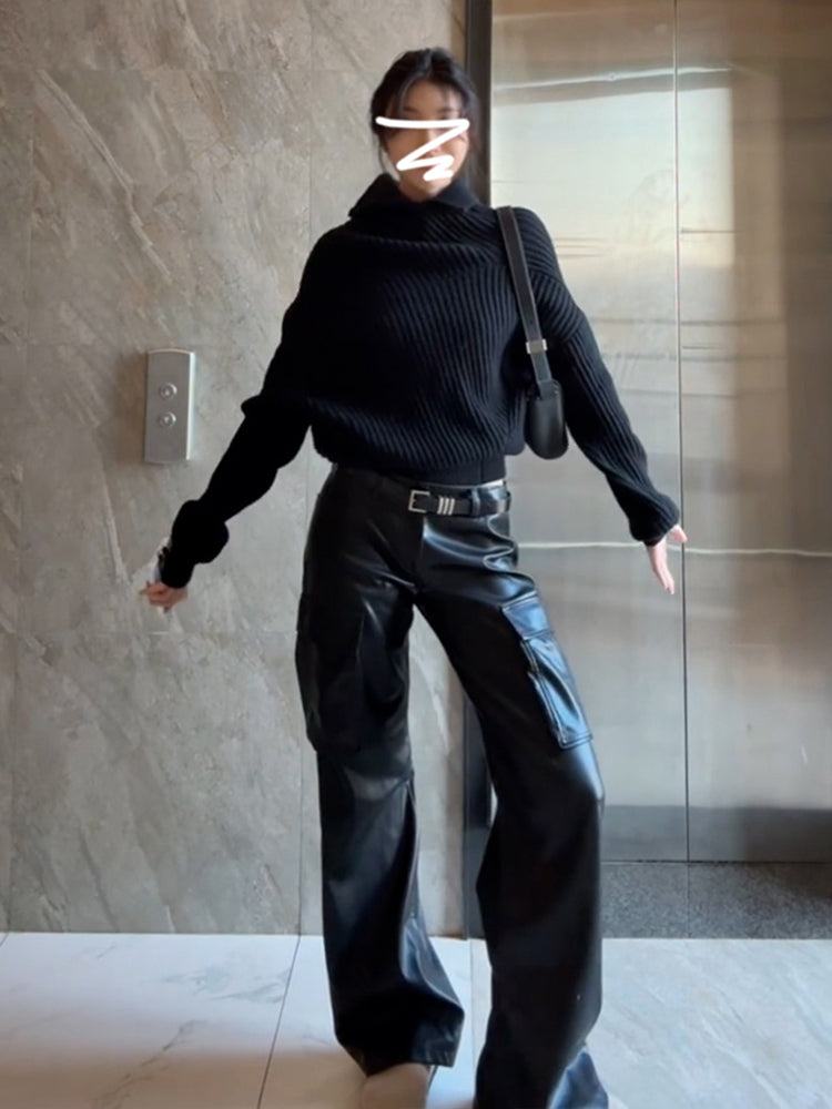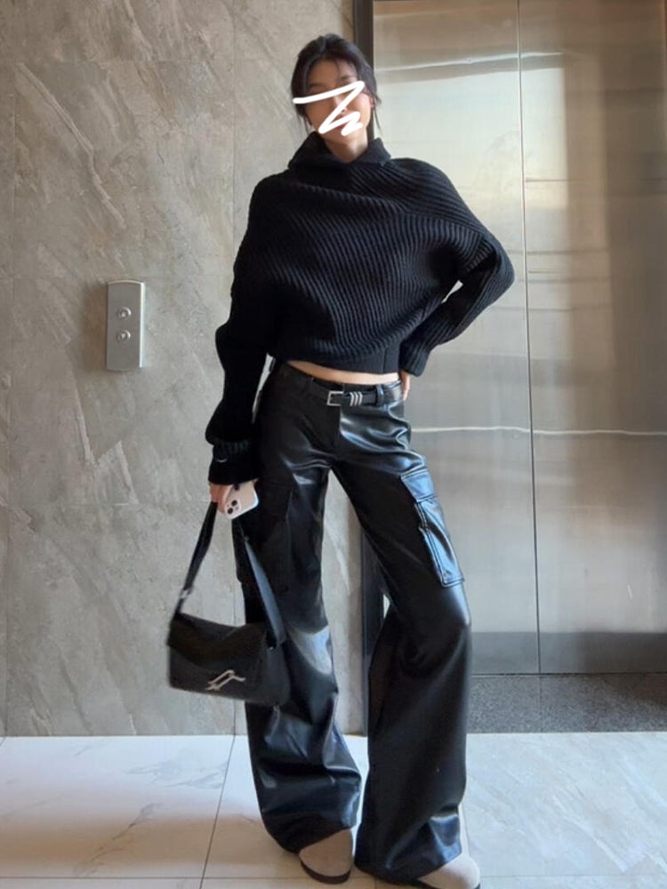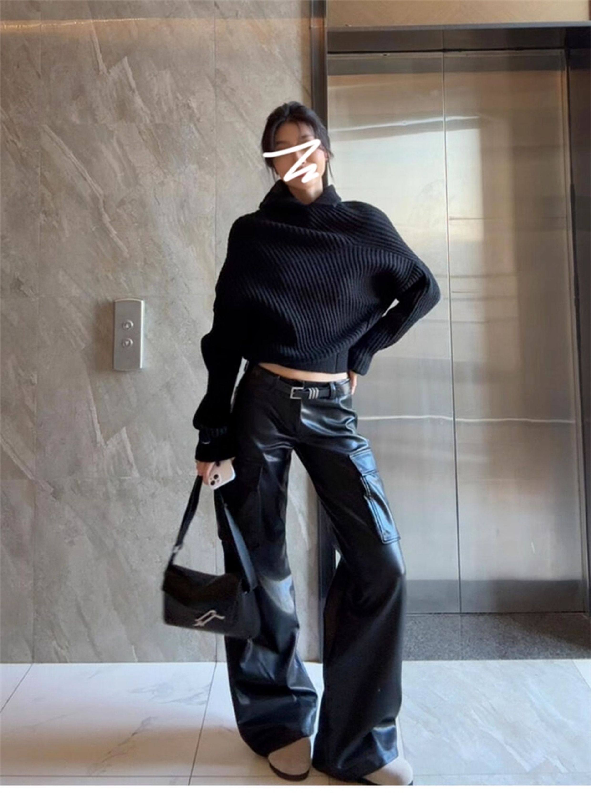 Qadın qara rəngli balıqçı yaxalı sviter, 2025-ci ilin payız/qış mövsümünün yeni, dəbli modeli, unikal və gözəl, toxunmuş üst geyim kimi geyinmək üçün mükəmməldir.