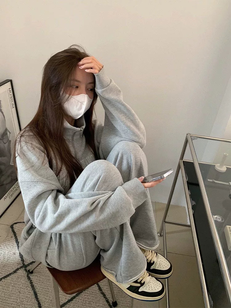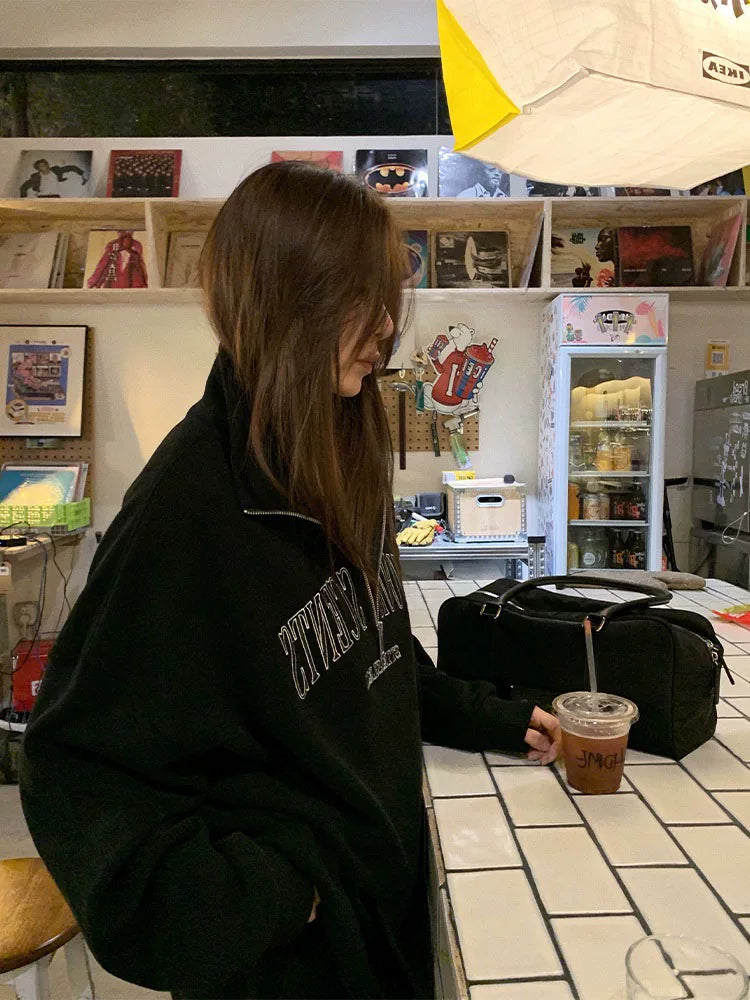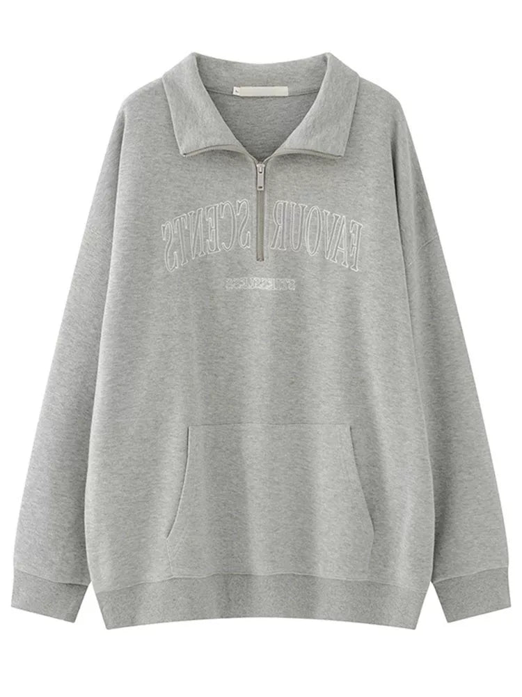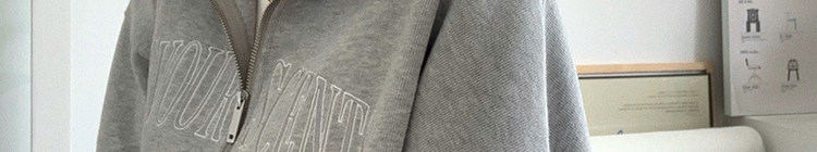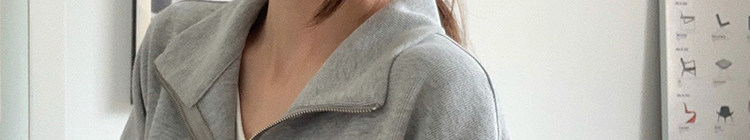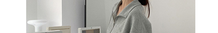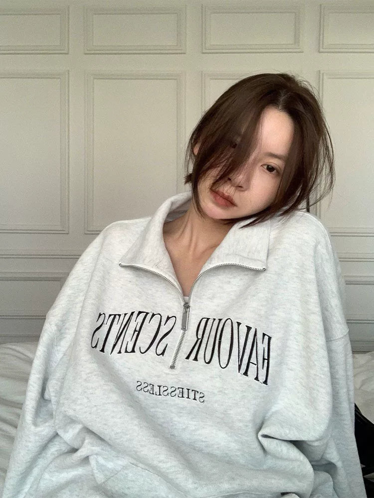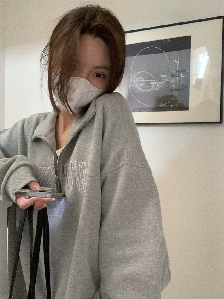 Qadın üçün Amerika üslubunda boz polo yaxalıqlı sviter, nazik, geniş, böyük ölçülü, Honq Konq üslubunda şık fermuarlı top/gödəkçə.
