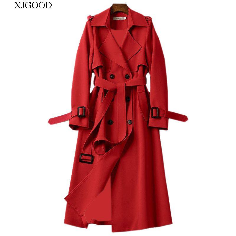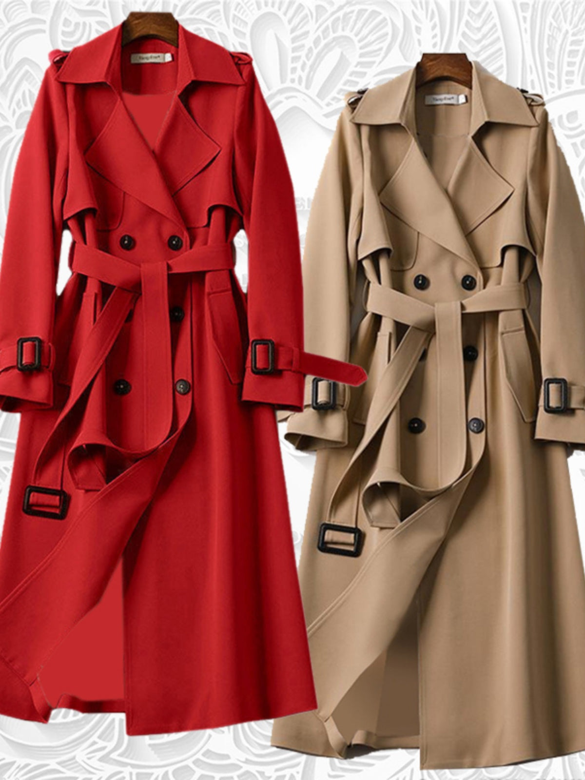 Qadın üçün böyük ölçülü uzun palto, qırmızı trençkot.