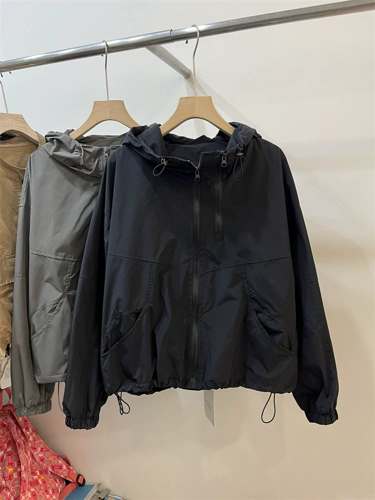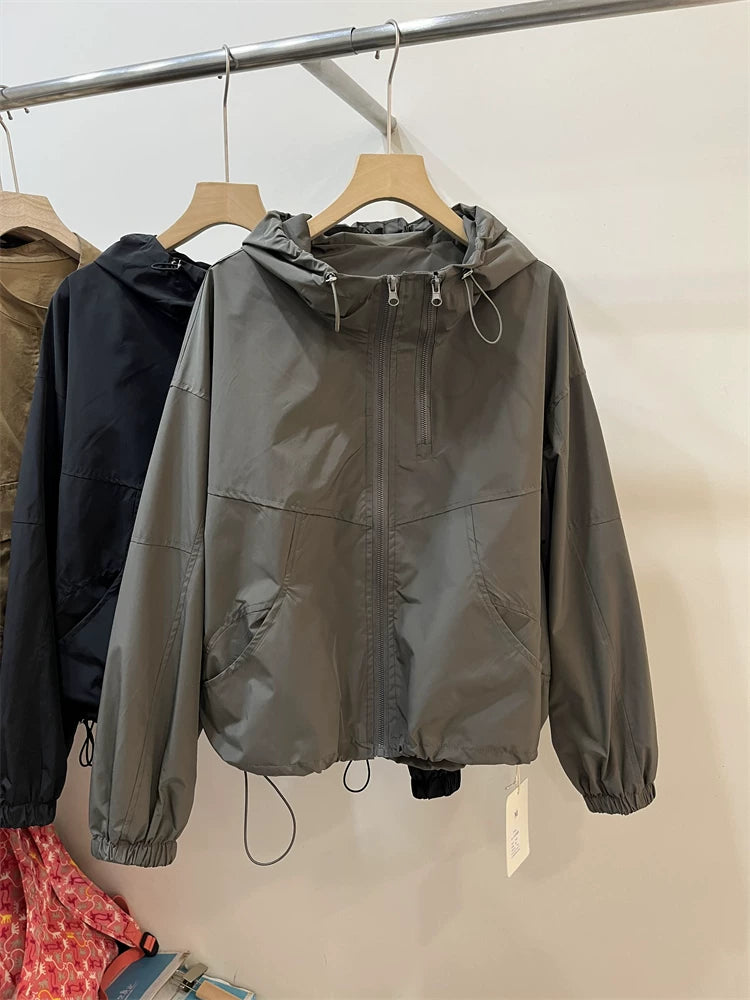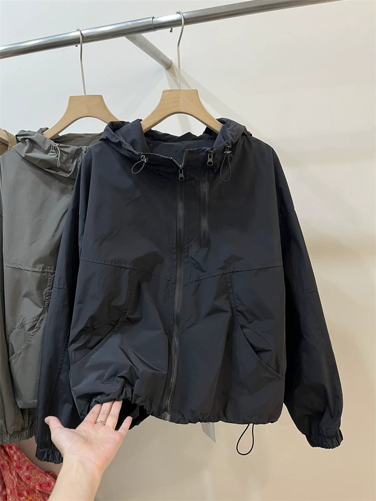 Qadınlar üçün 2026 Yaz Yeni Avropa Stilində Başlıqlı İş Geyimi Beysbol Gödəkçəsi, Dəbli Kiçik Boş Qısa Gödəkçə