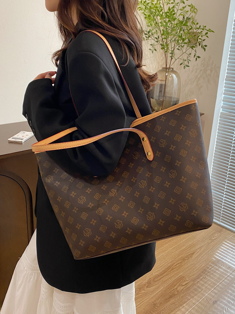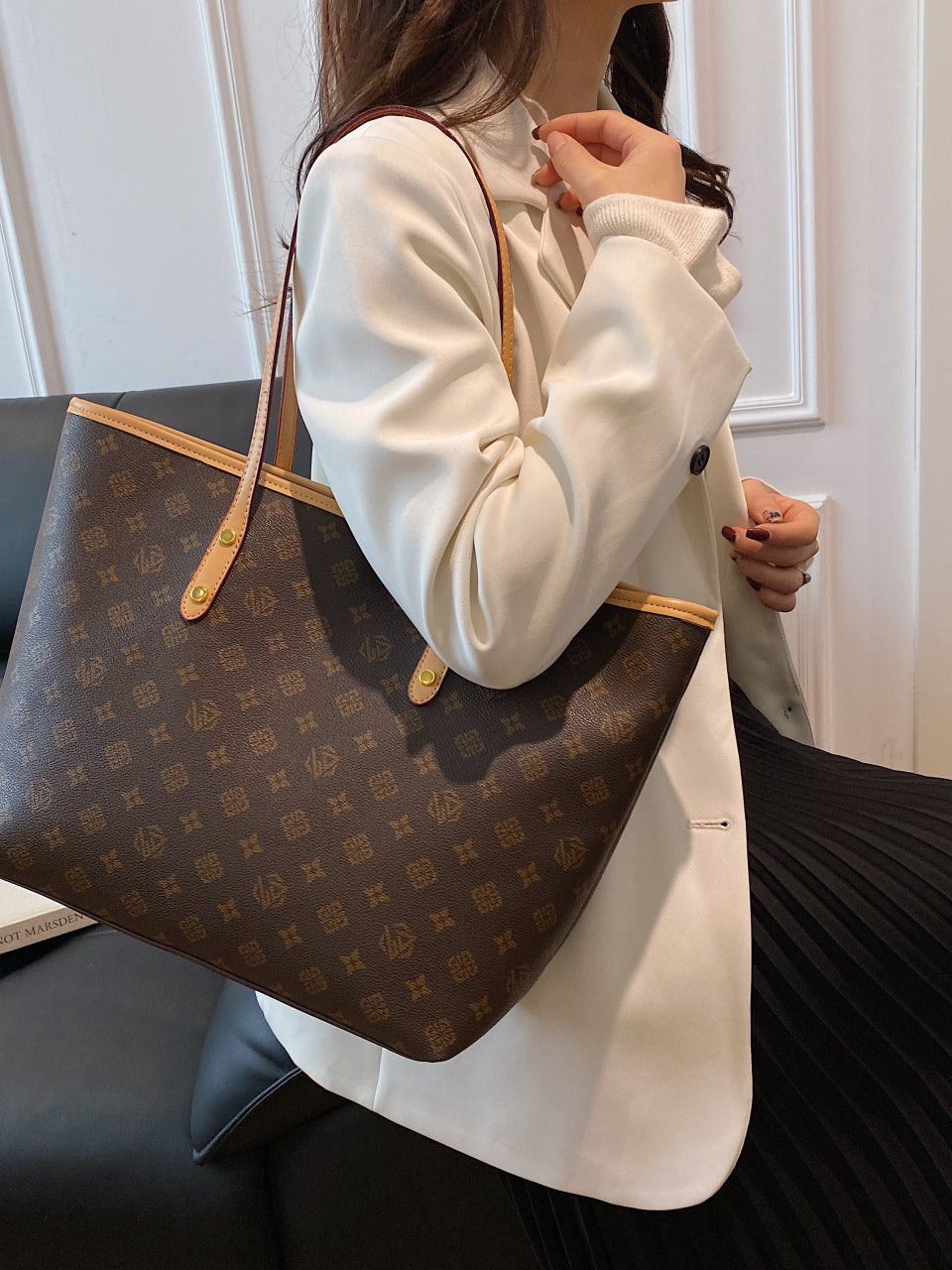 Qadınlar üçün böyük tutumlu çanta, 2025-ci il yeni payız və qış çantası, yüngül lüks niş yüksək səviyyəli çiyin çantası/əl çantası