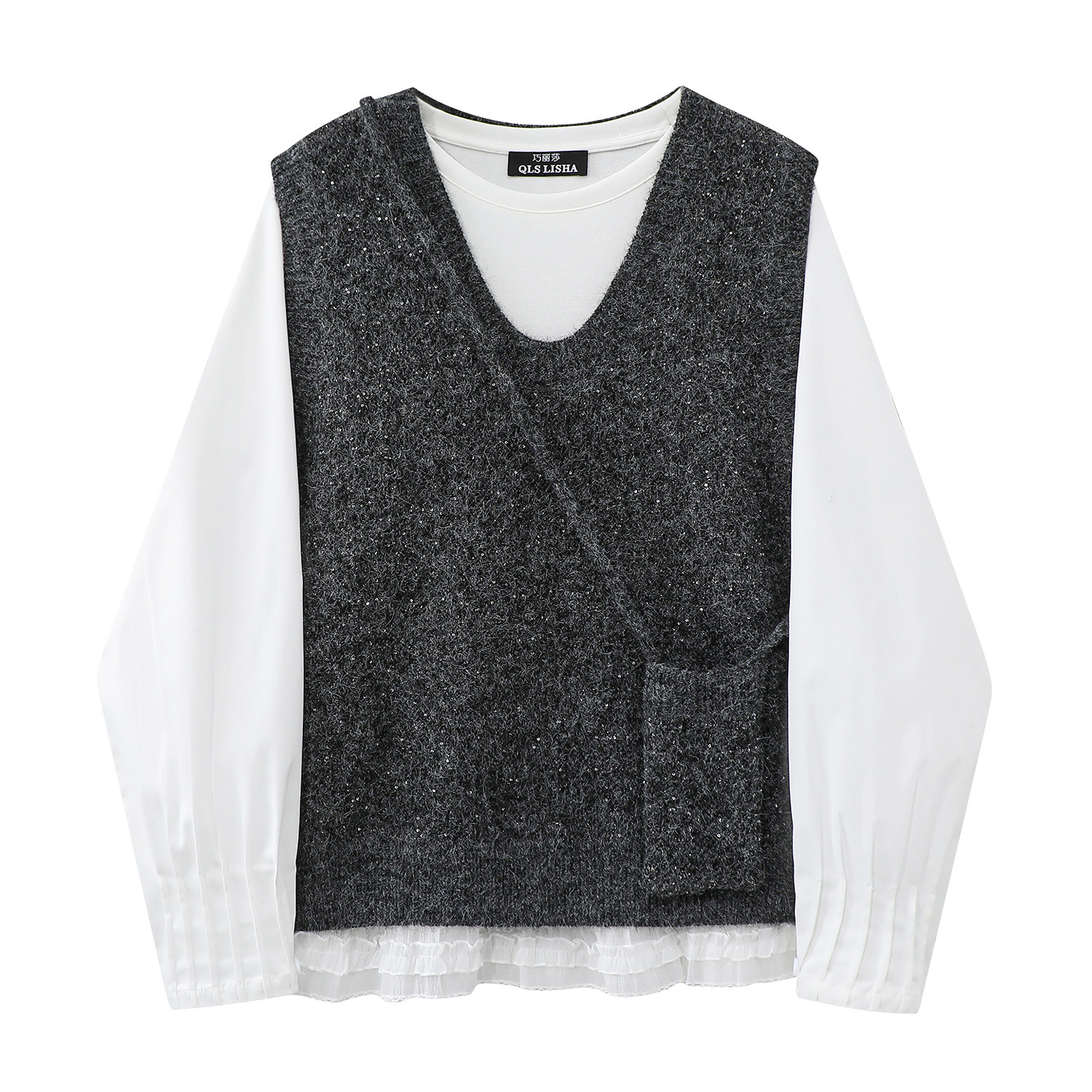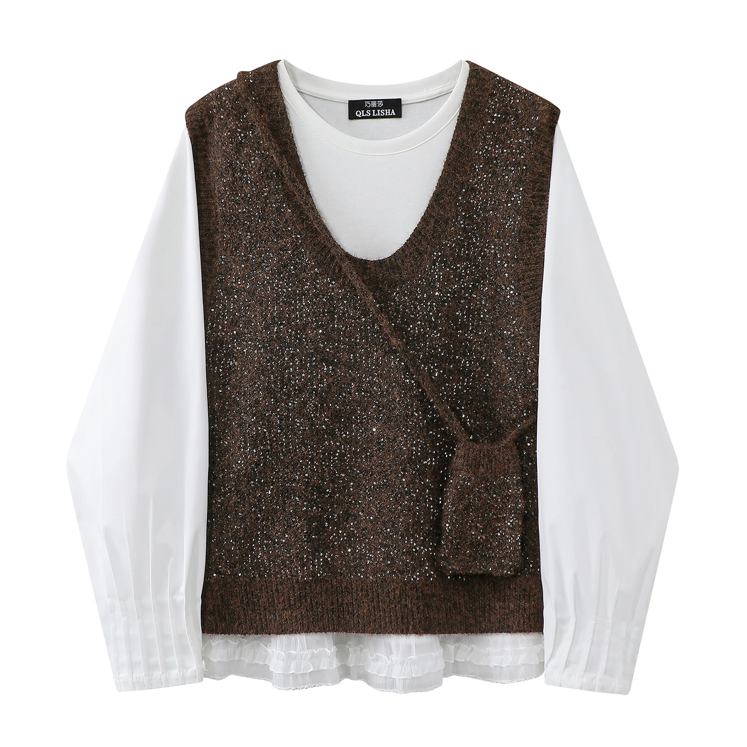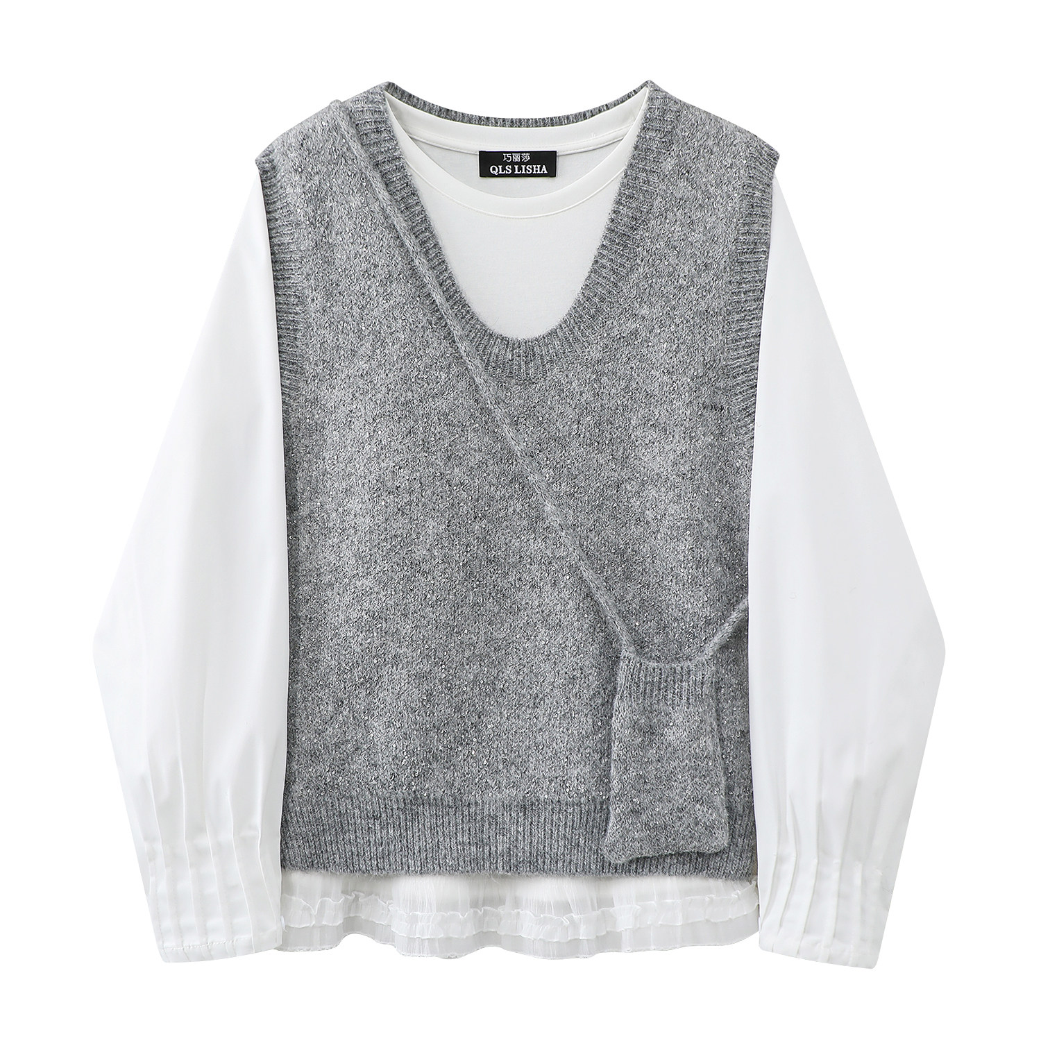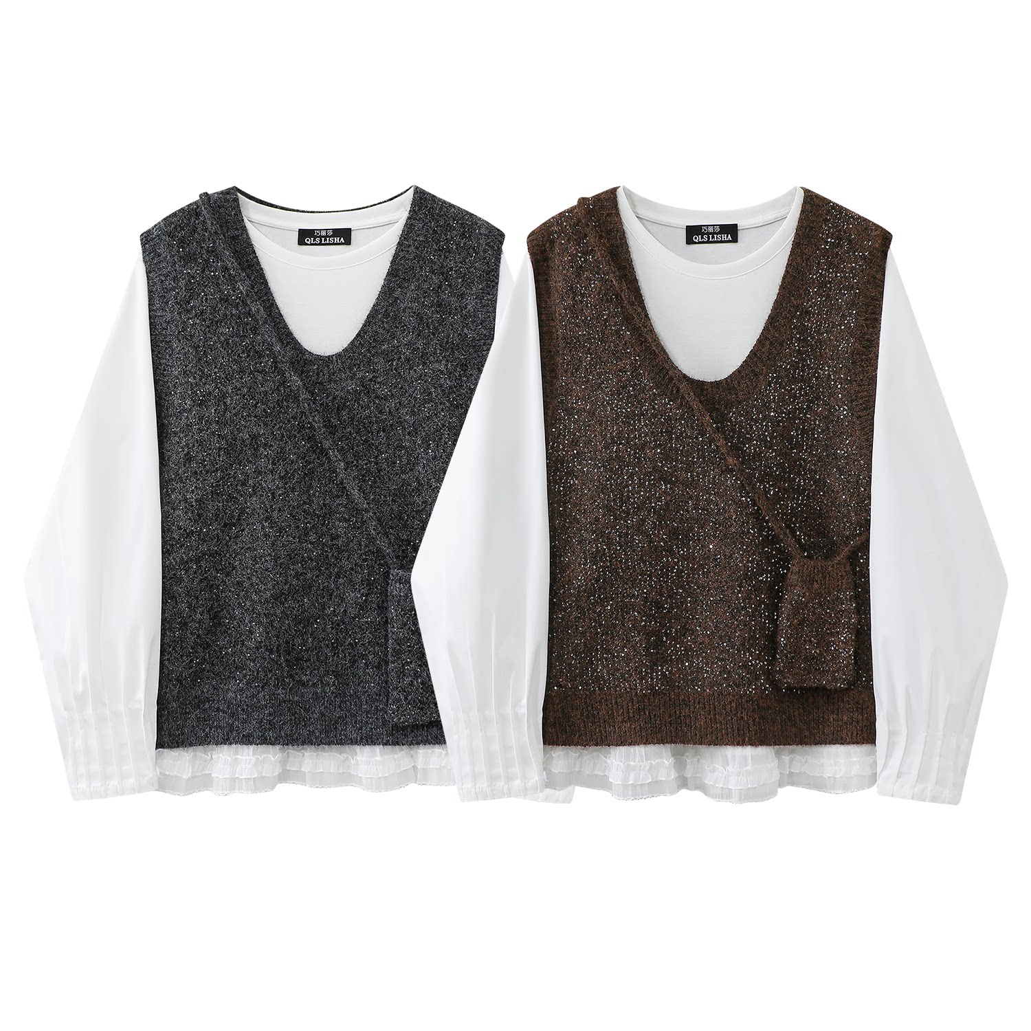 Qadınlar üçün Cholisa Jilet Sviter Dəsti - Daxili Qat kimi Uzunqollu Futbolka ilə Çox Qəşəng İki Parçalı Payız Geyimi