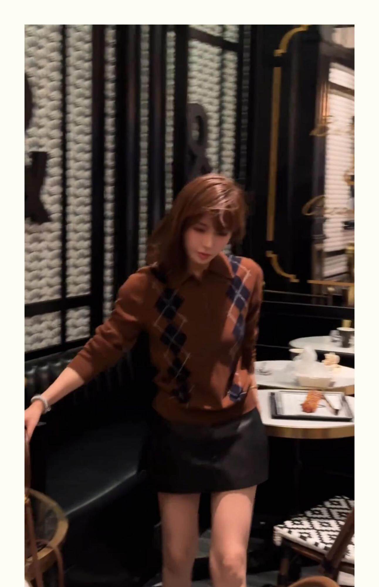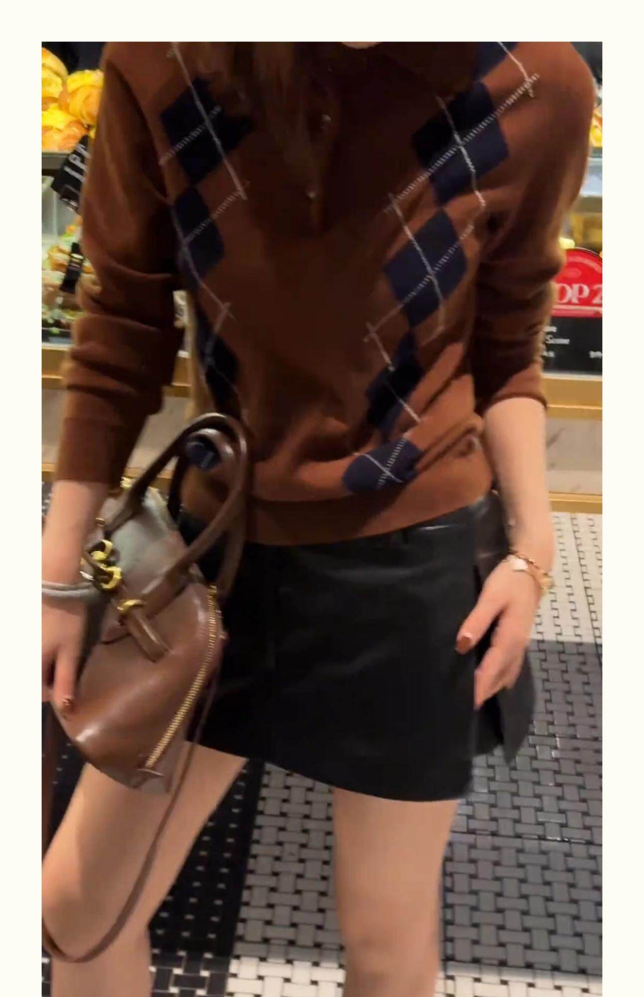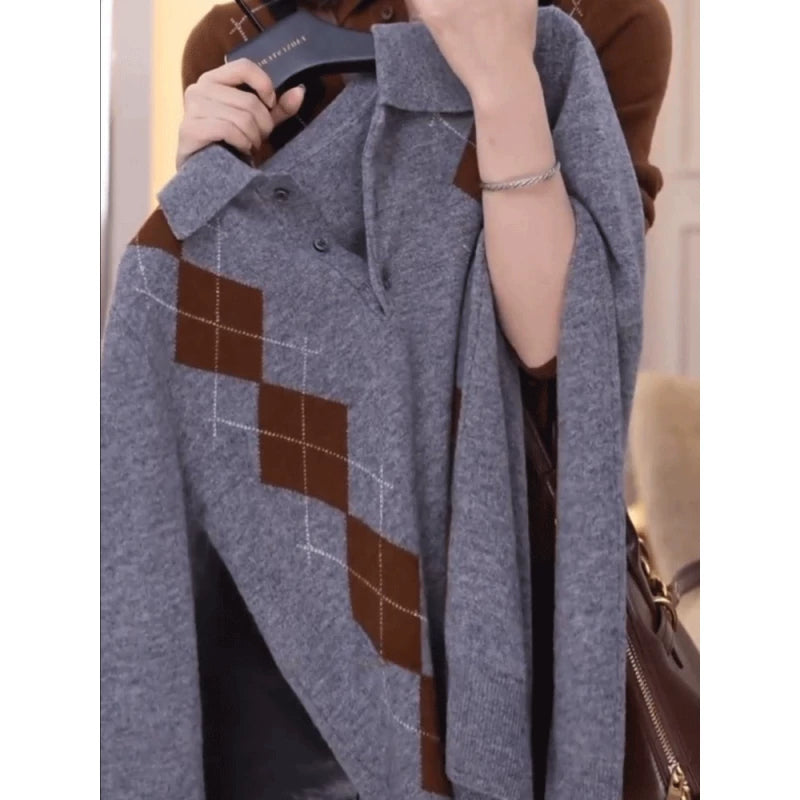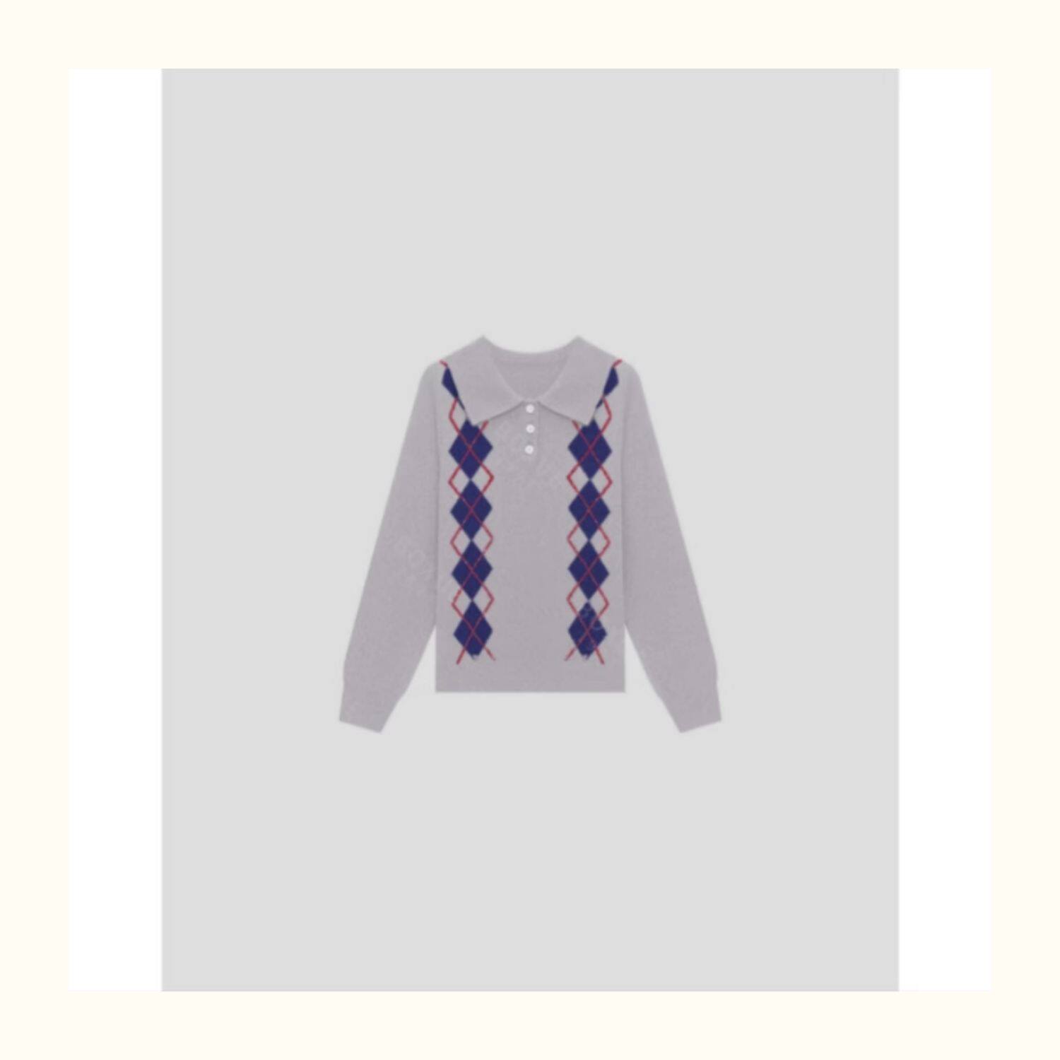 Qadınlar üçün incə, yaraşıqlı, isti və çoxfunksiyalı toxunma polo köynək, erkən payız və qış üçün idealdır. Fransız retro argyle yun top.