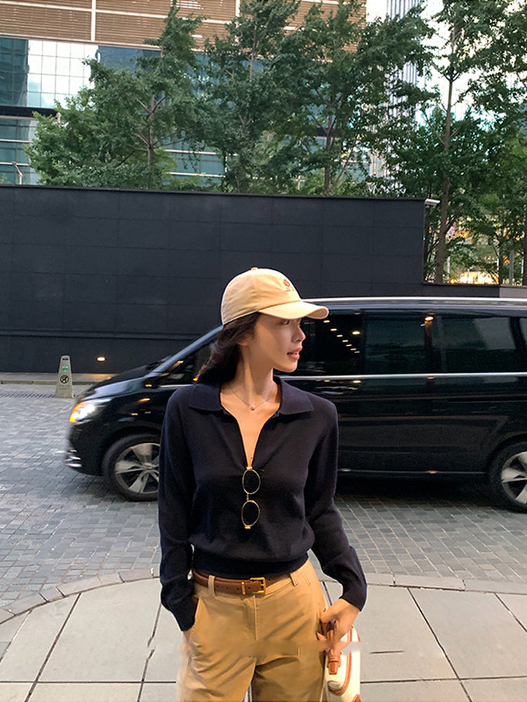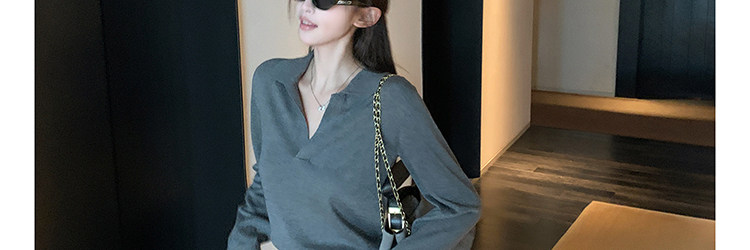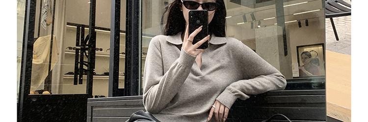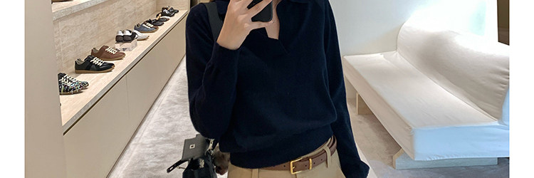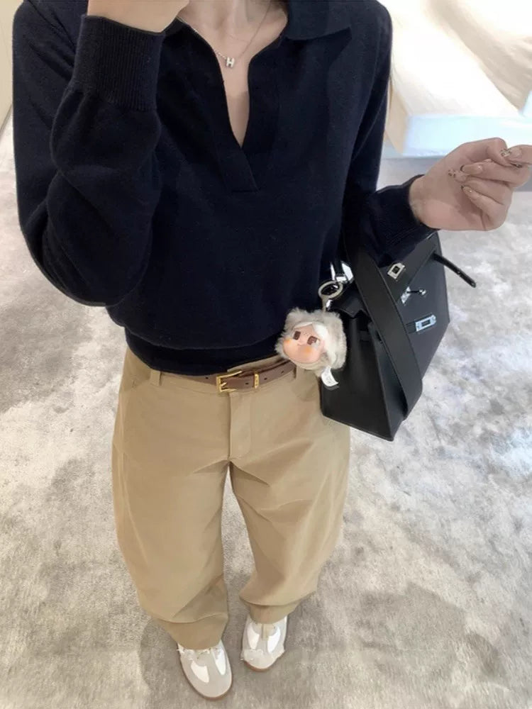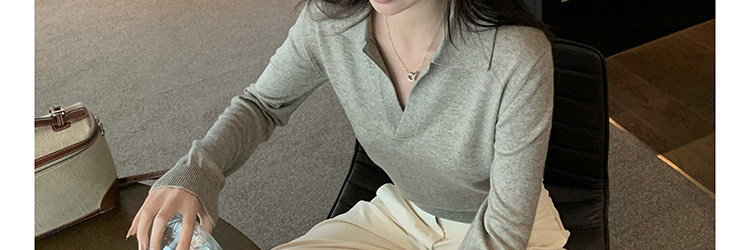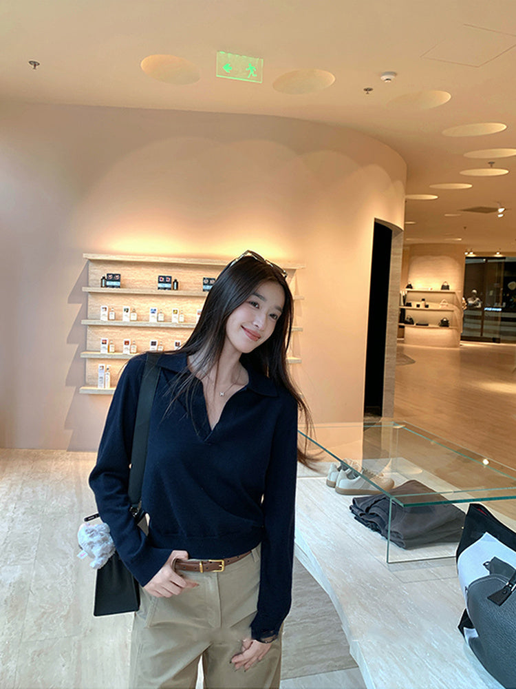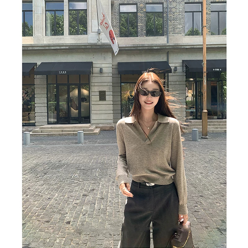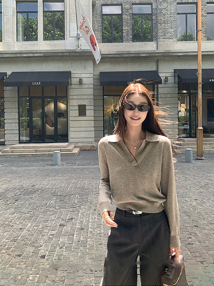 Qadınlar üçün köhnə üslubda polo yaxalıqlı toxunma sviter, payız, tənbəl, zərif, gənc, gündəlik V-yaxalı uzunqol köynək