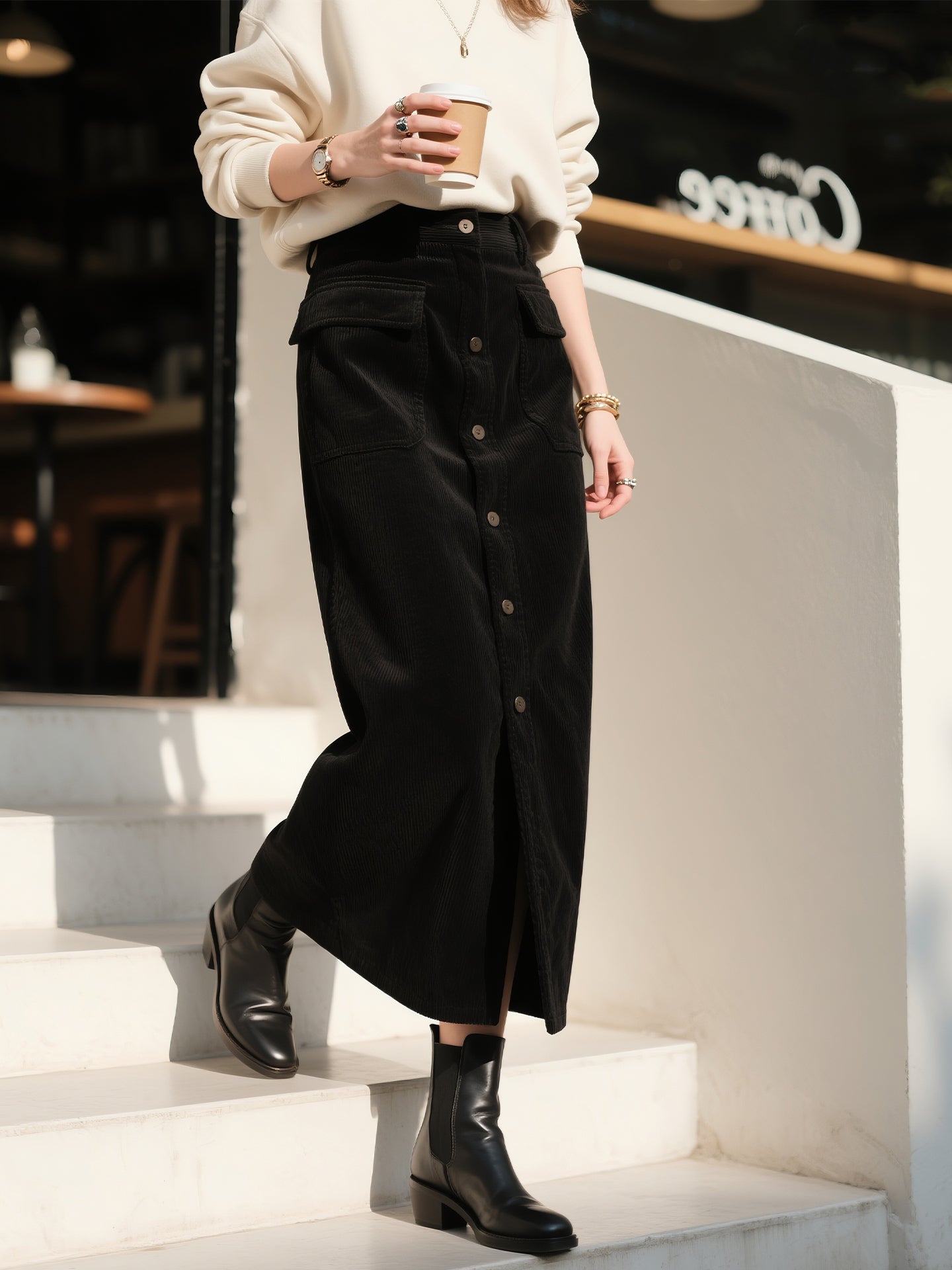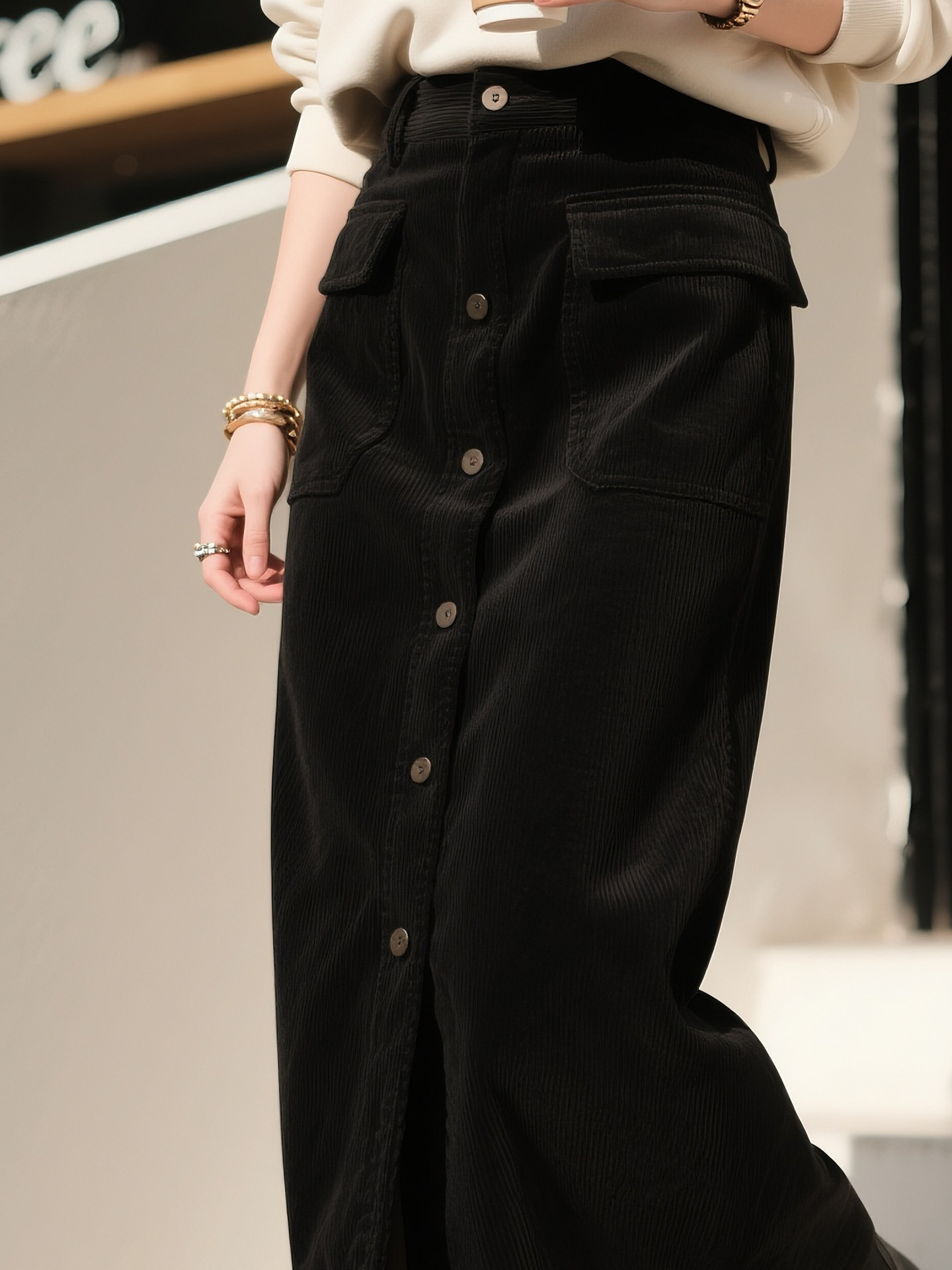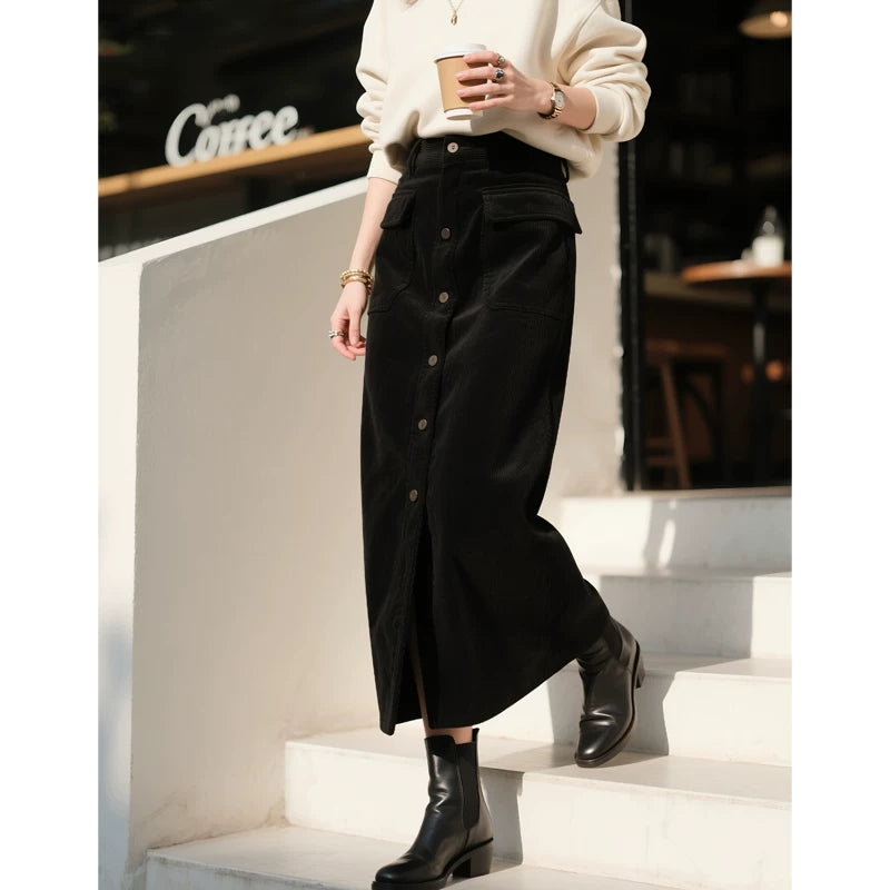 Qadınlar üçün Qara Mərmər Midi Ətək, 2025 Payız/Qış Yeni Retro Yüksək Belli Arıqladıcı Düz Bədən Ətəyi