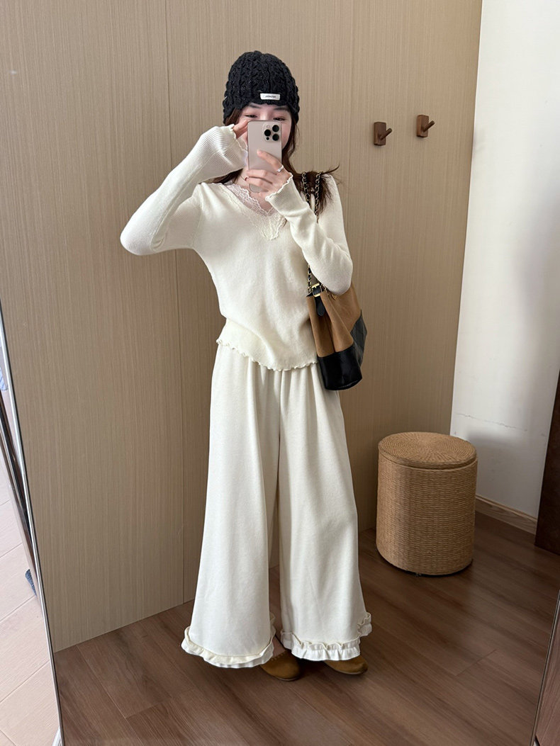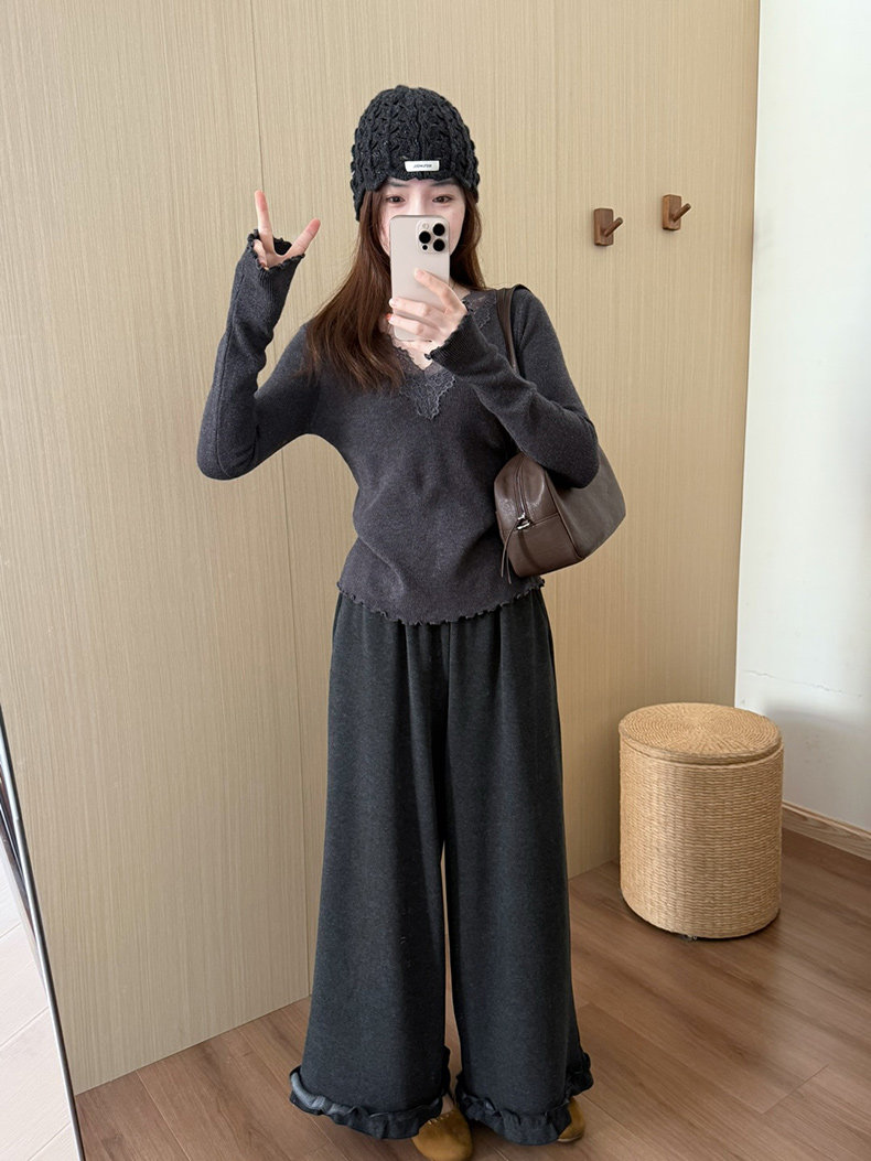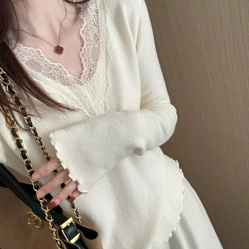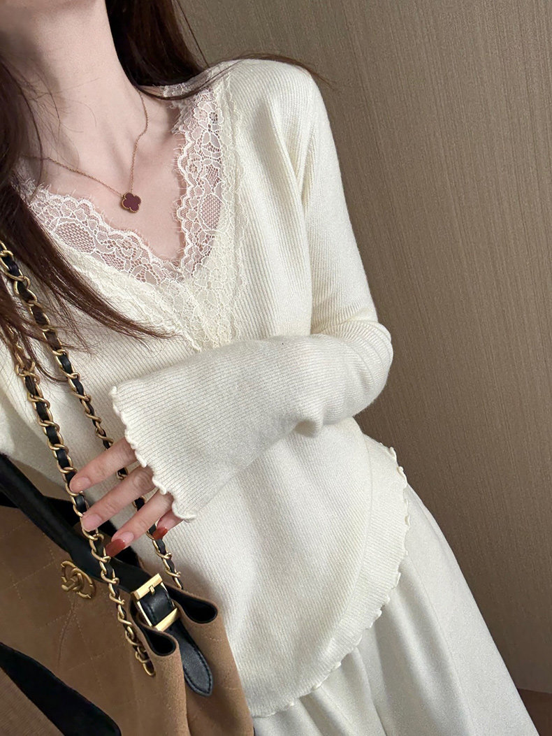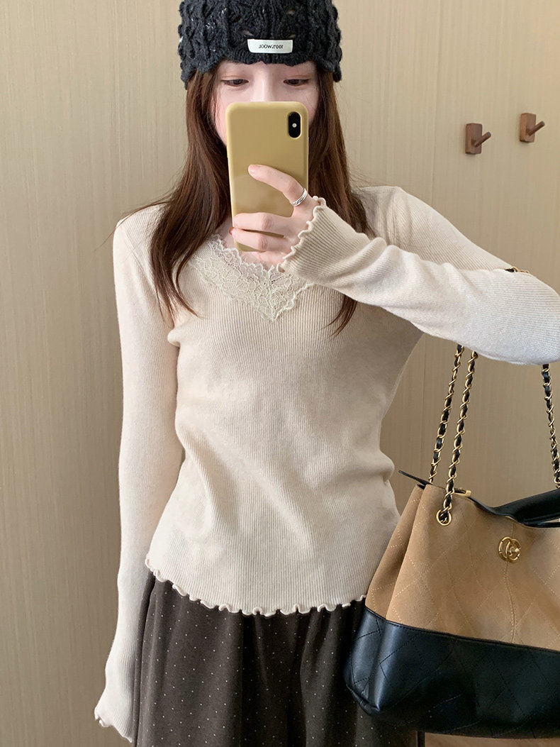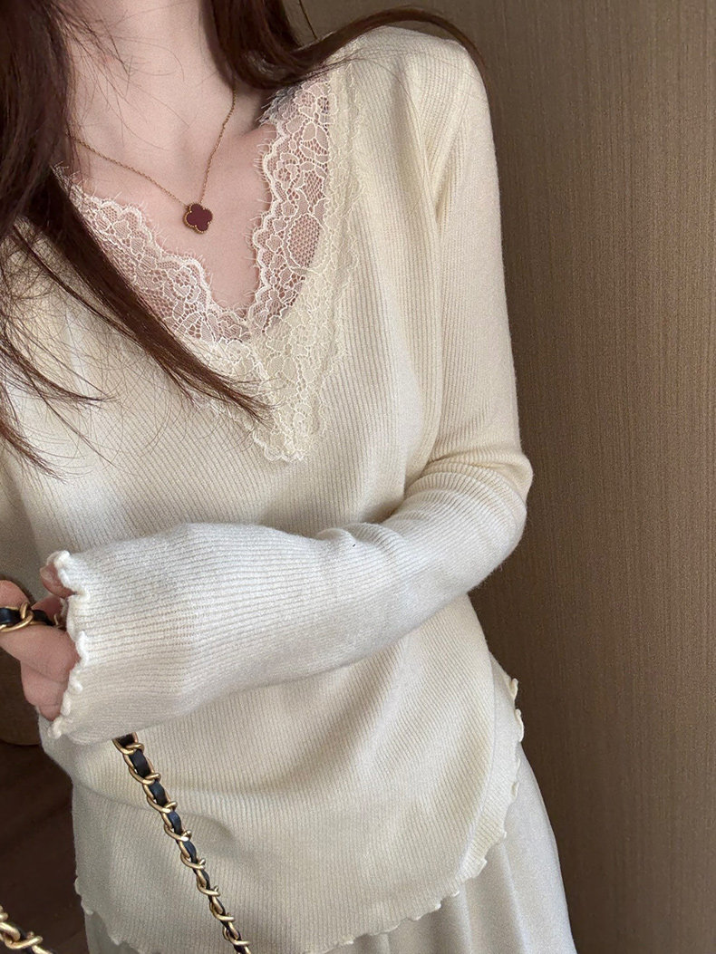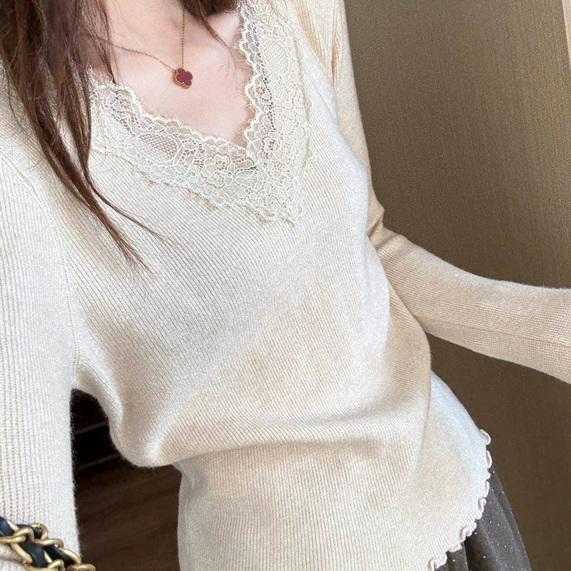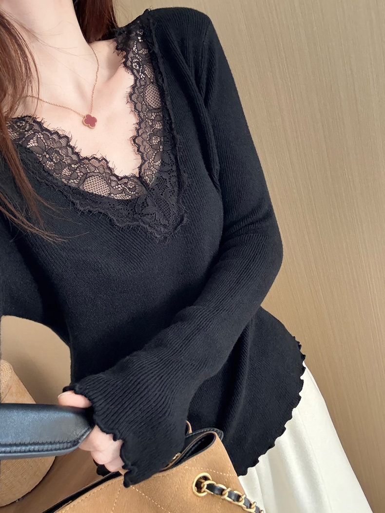 Qadınlar üçün sadə rəngli V-formalı krujeva əsas qatlı top, 2025 payız yeni Koreya üslubunda sadə üslublu daxili qatlı top.