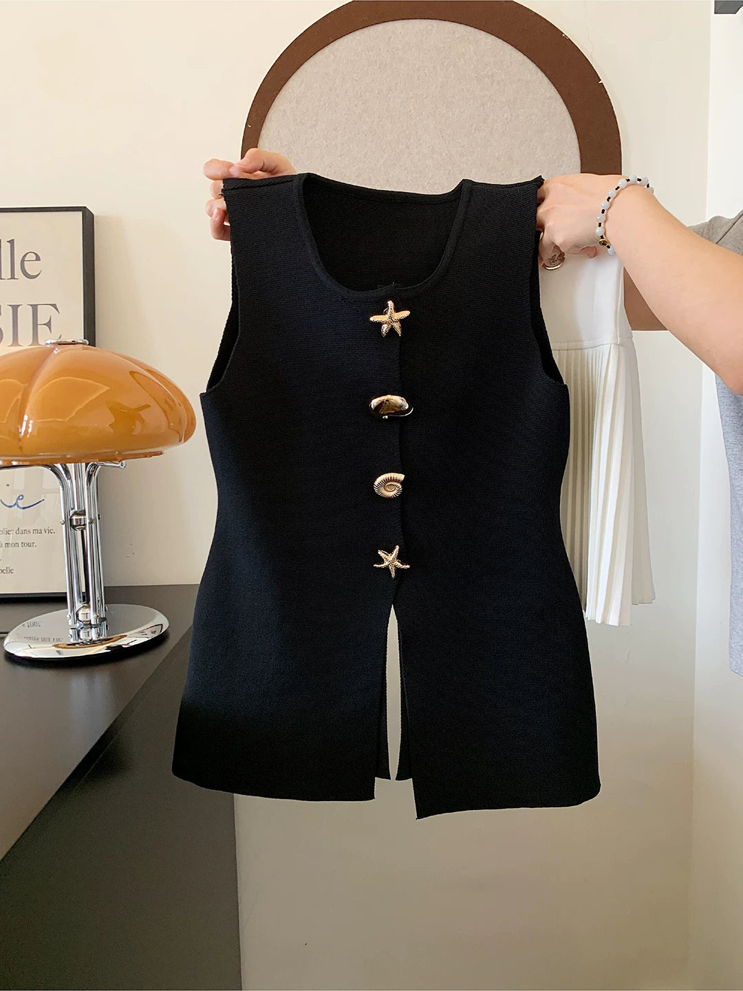 Qadınlar üçün super şık qara V-yaxalı jilet, üst geyim kimi geyinmək üçün mükəmməldir, 2025-ci ilin yeni modası, qolsuz və möhtəşəm.