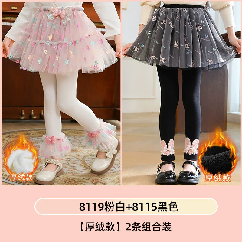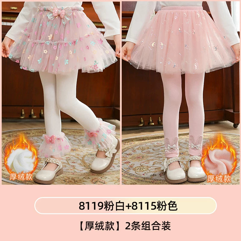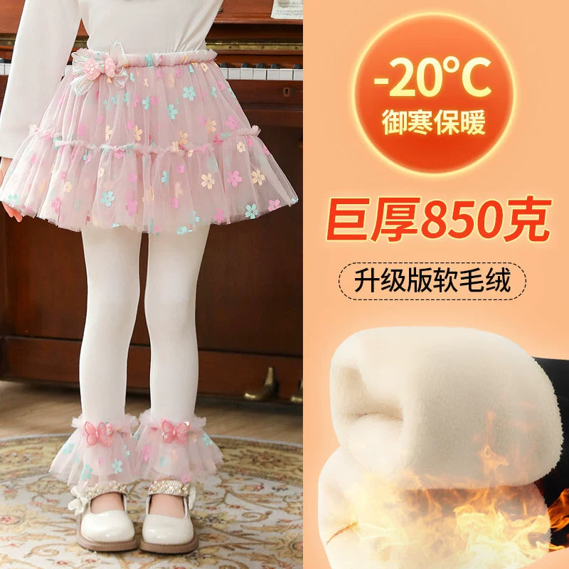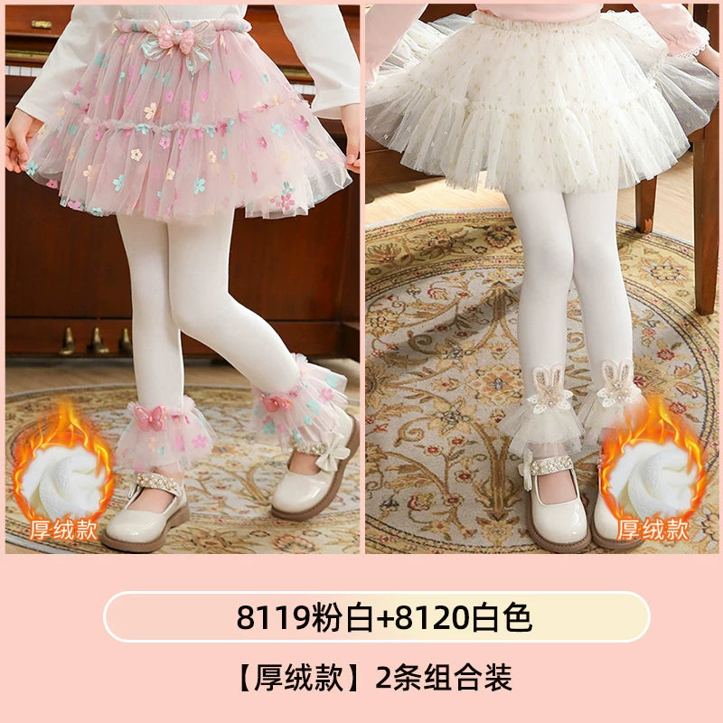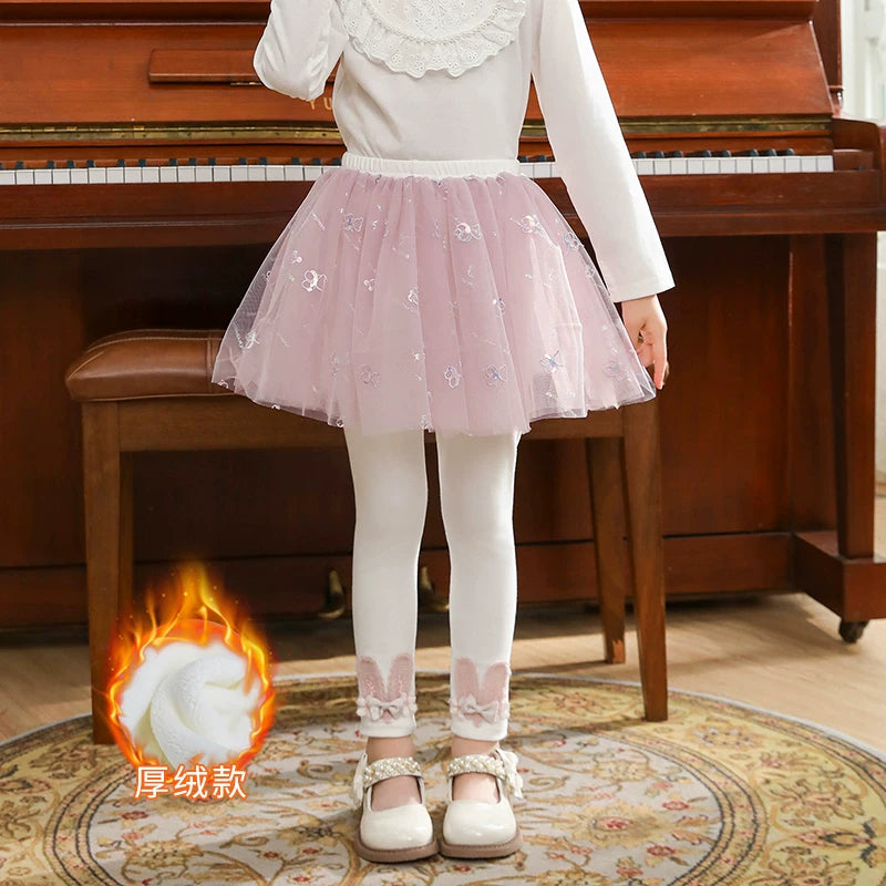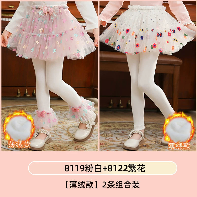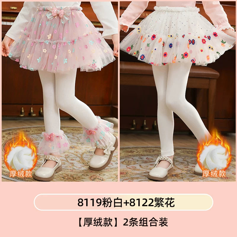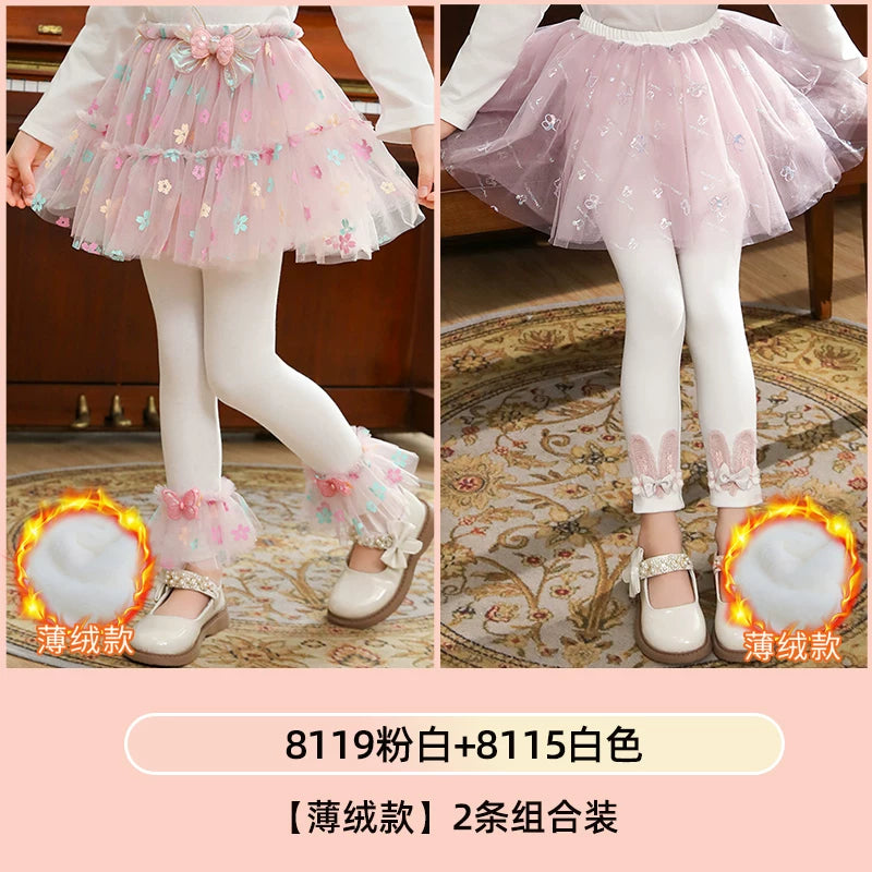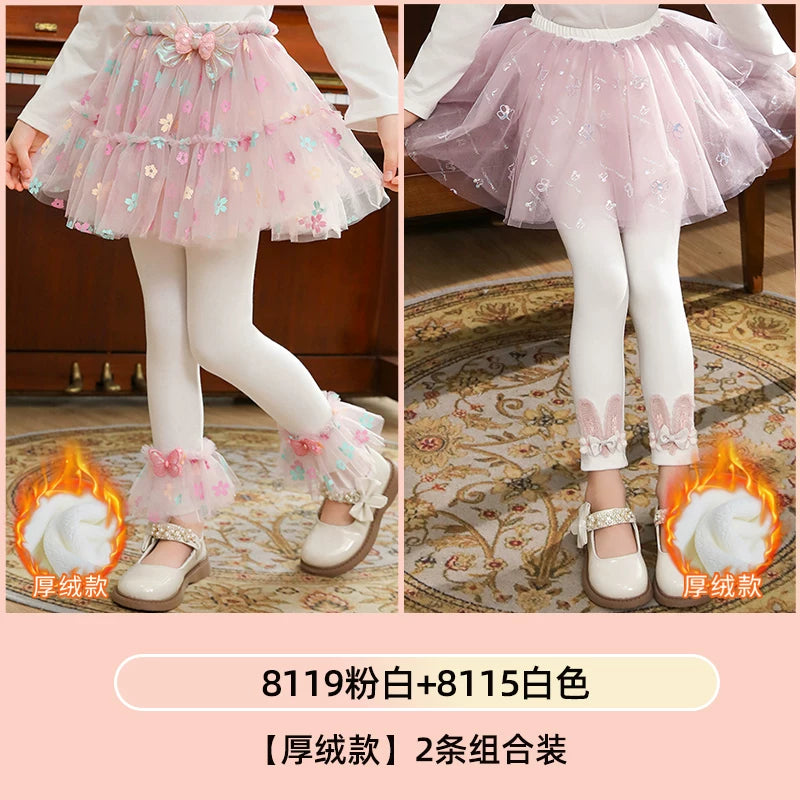 | Qızlar üçün bir hissəli ətək şalvarları, 2025-ci ilin yaz və payız mövsümü üçün yeni model uşaq qış geyimləri, flis astarlı, süni iki hissəli leqinslər, ağ, çöldə geyinmək üçün.