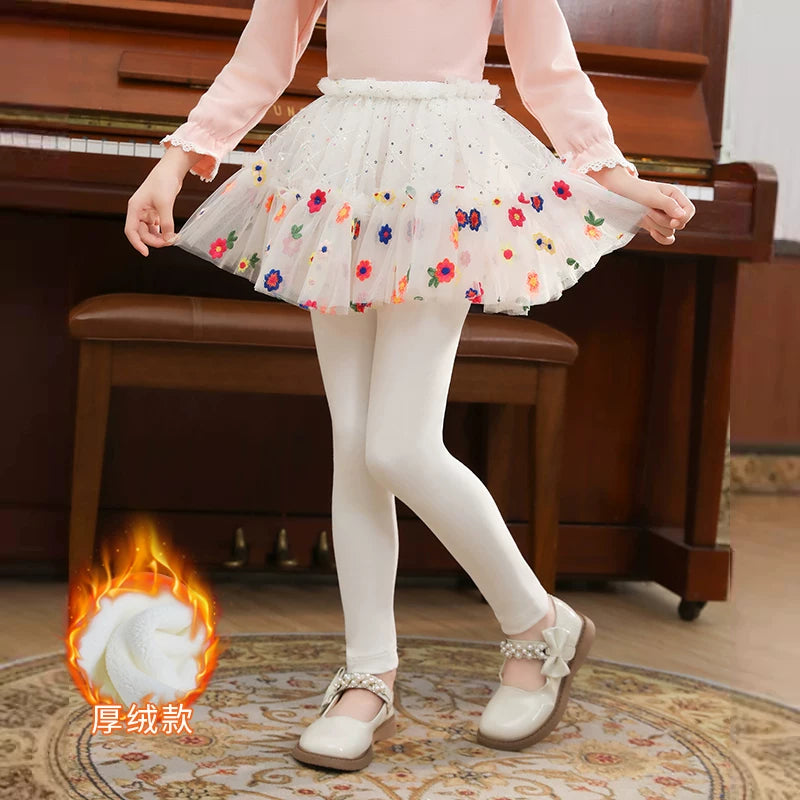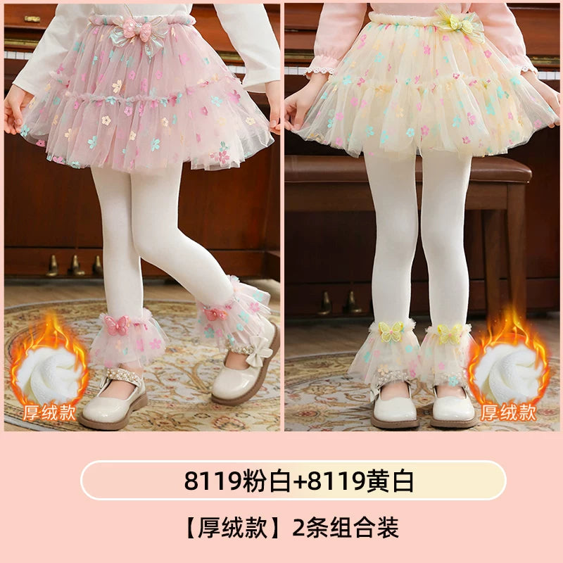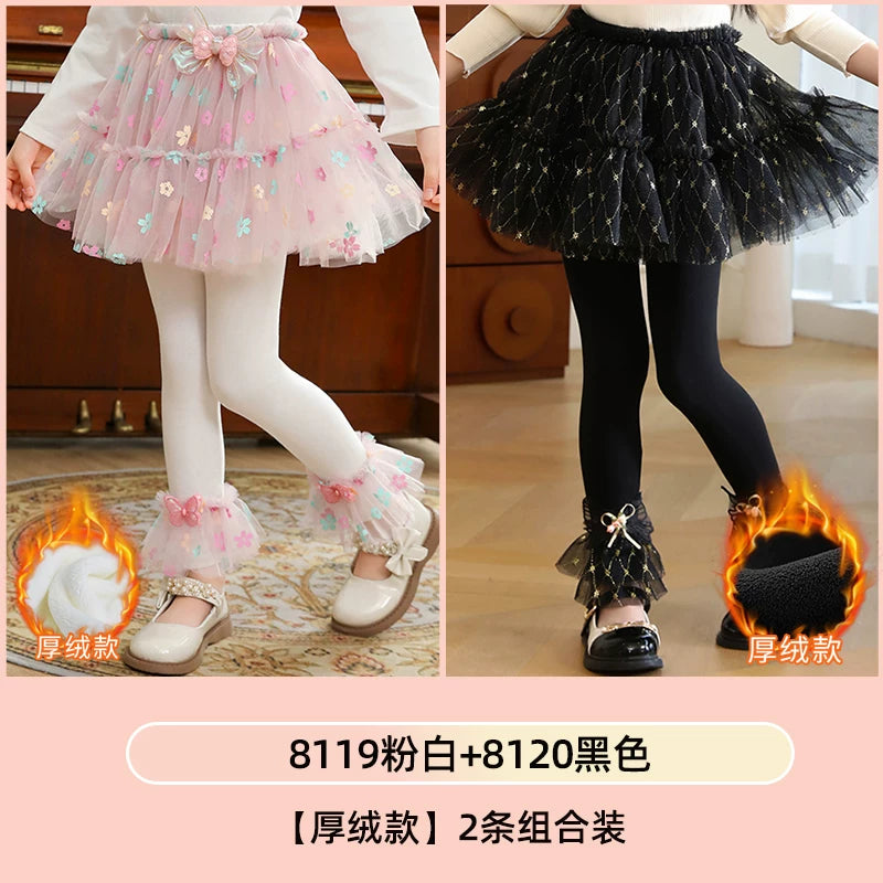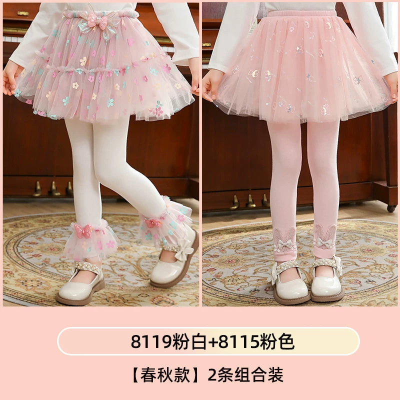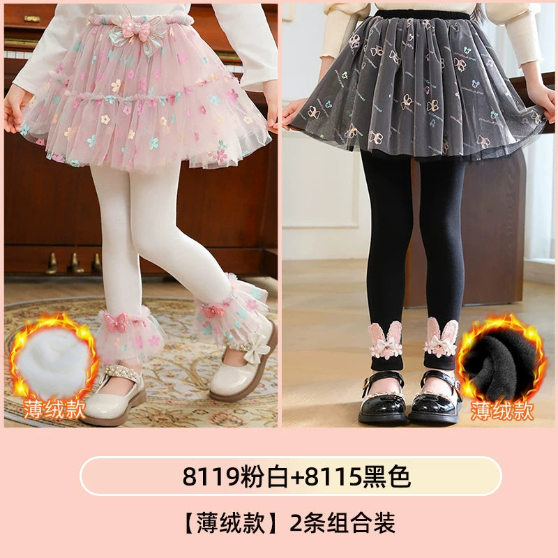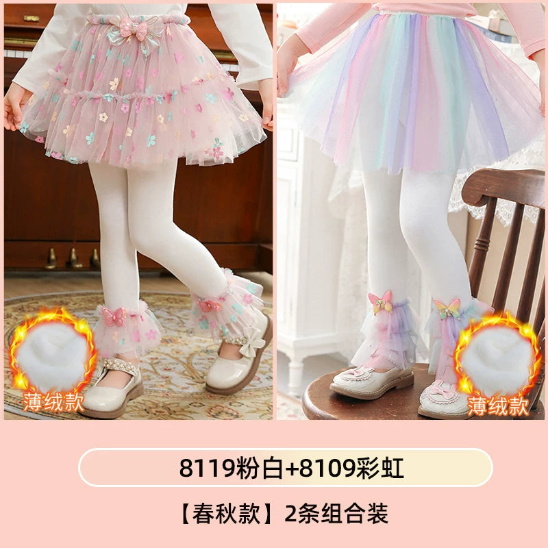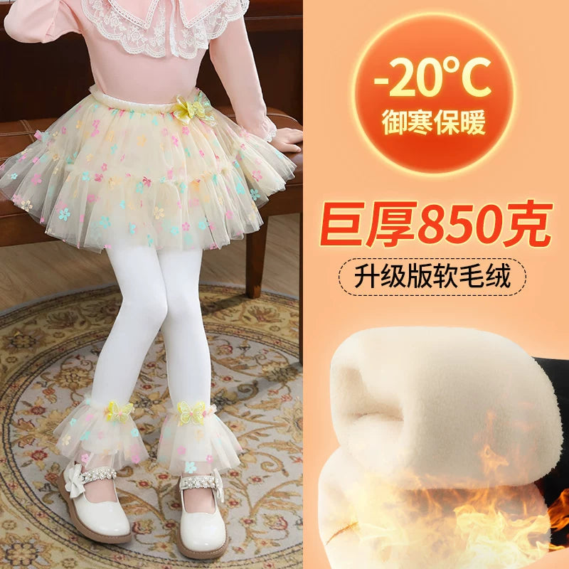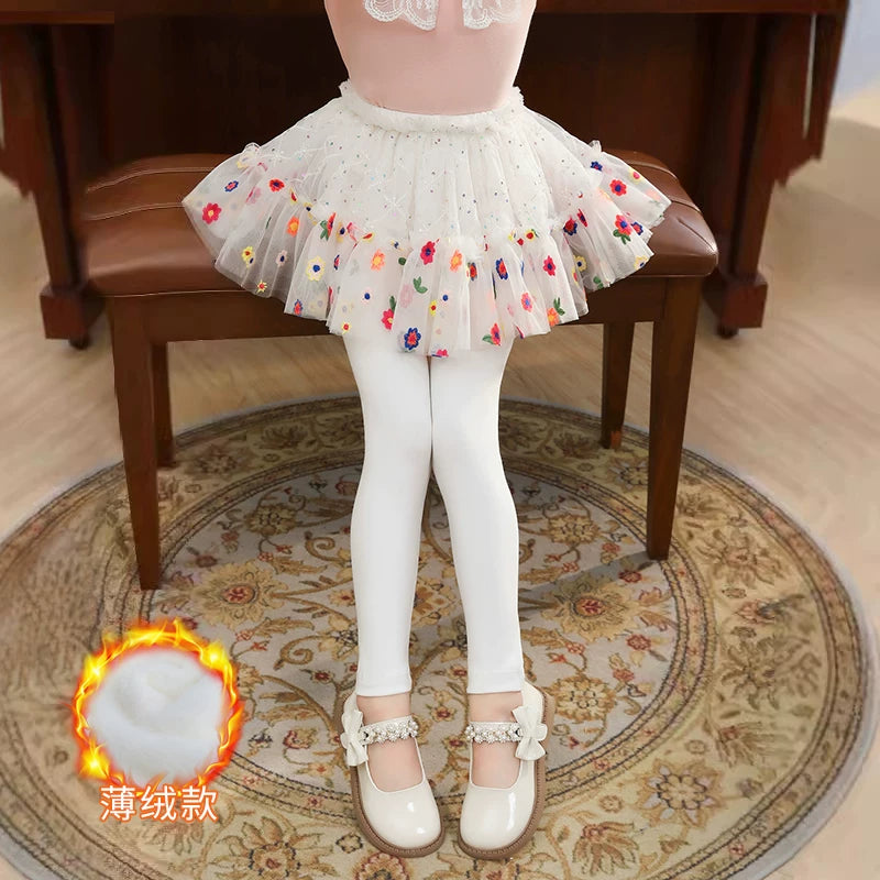 | Qızlar üçün bir hissəli ətək şalvarları, 2025-ci ilin yaz və payız mövsümü üçün yeni model uşaq qış geyimləri, flis astarlı, süni iki hissəli leqinslər, ağ, çöldə geyinmək üçün.