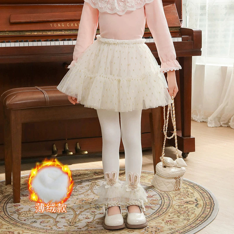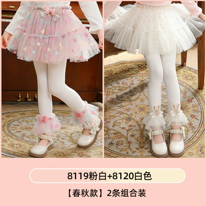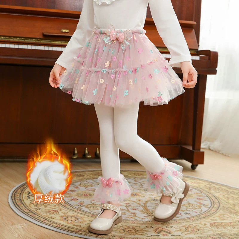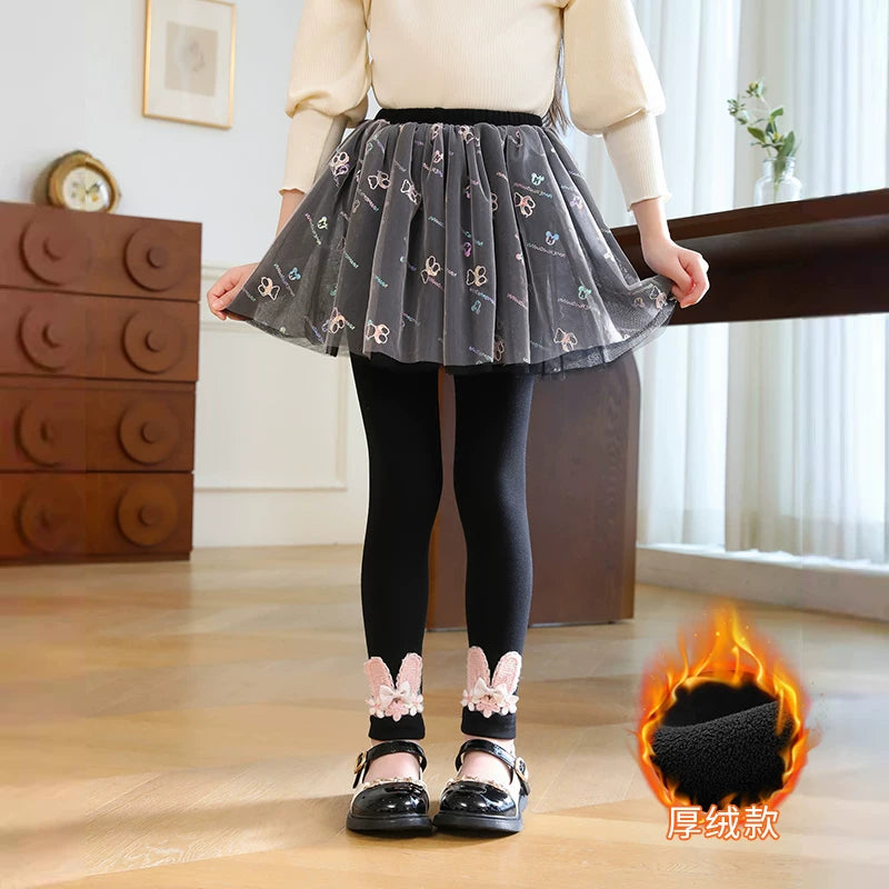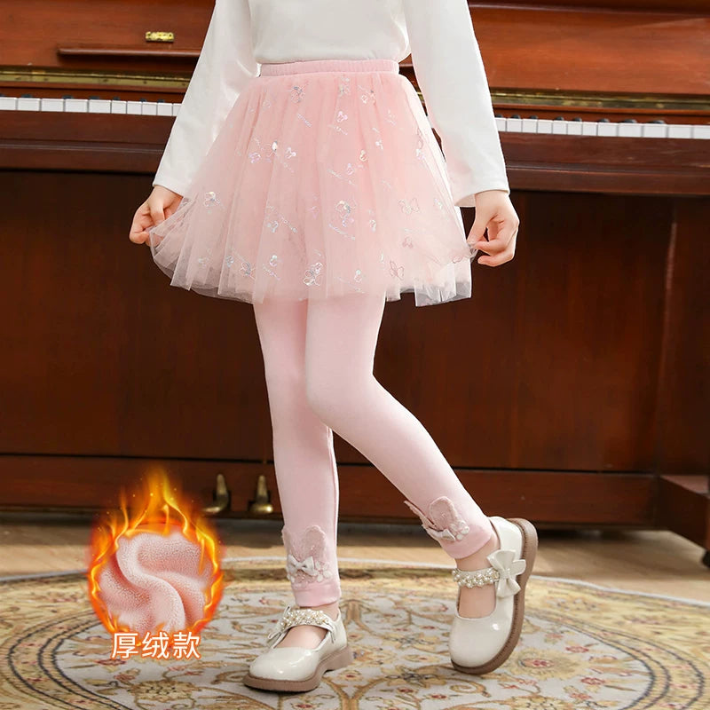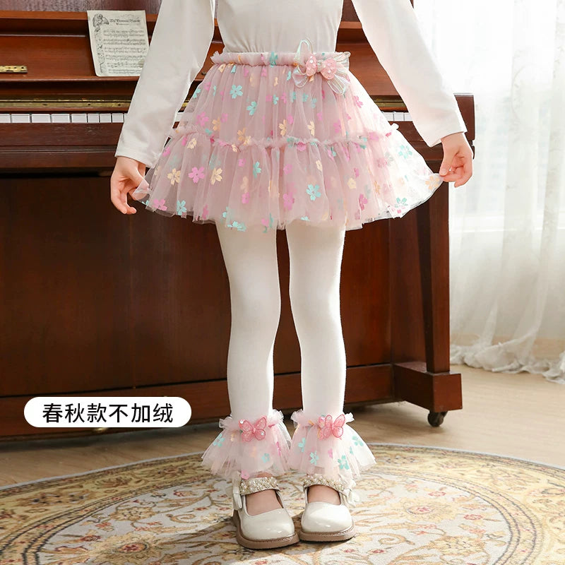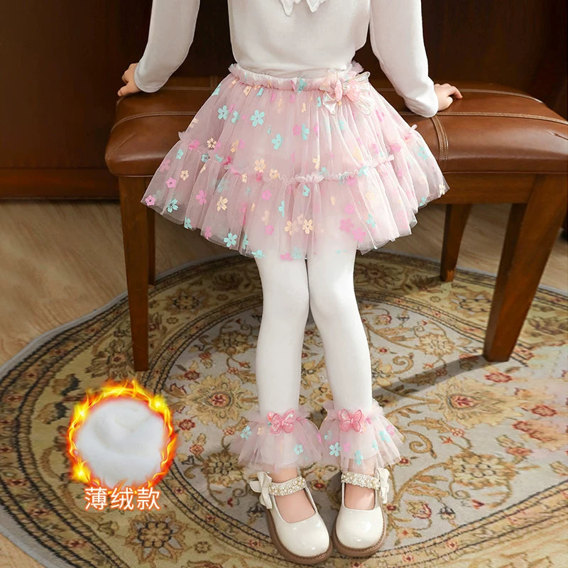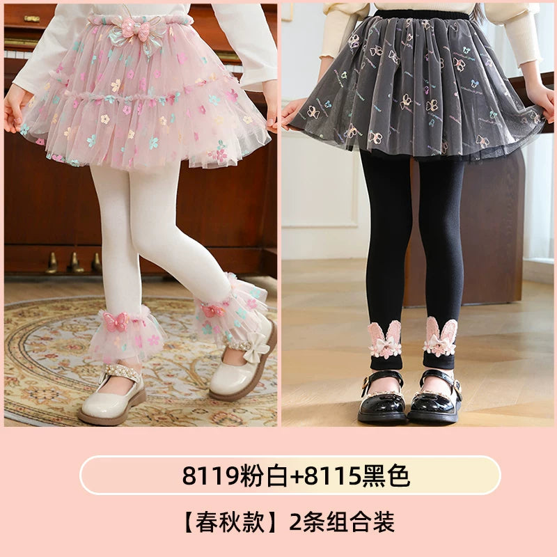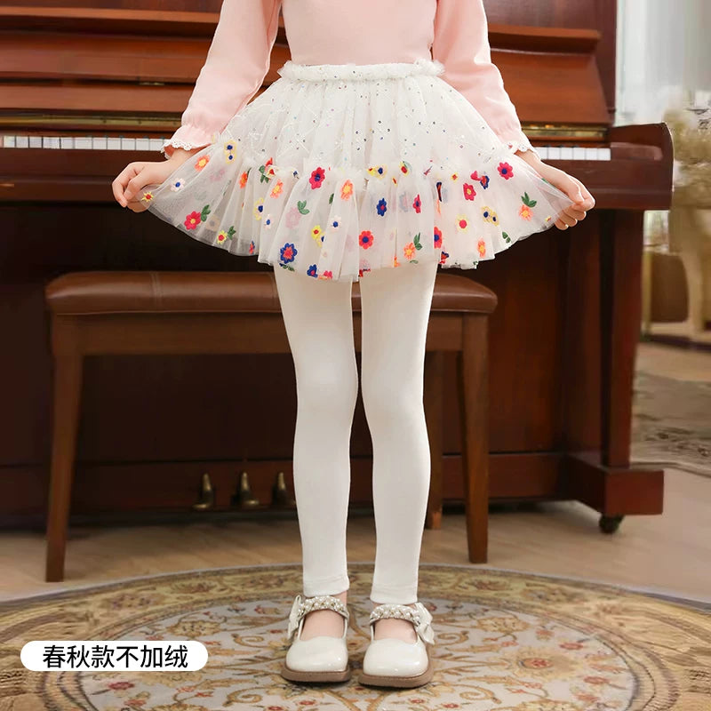 | Qızlar üçün bir hissəli ətək şalvarları, 2025-ci ilin yaz və payız mövsümü üçün yeni model uşaq qış geyimləri, flis astarlı, süni iki hissəli leqinslər, ağ, çöldə geyinmək üçün.