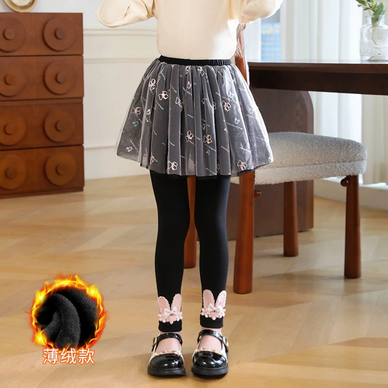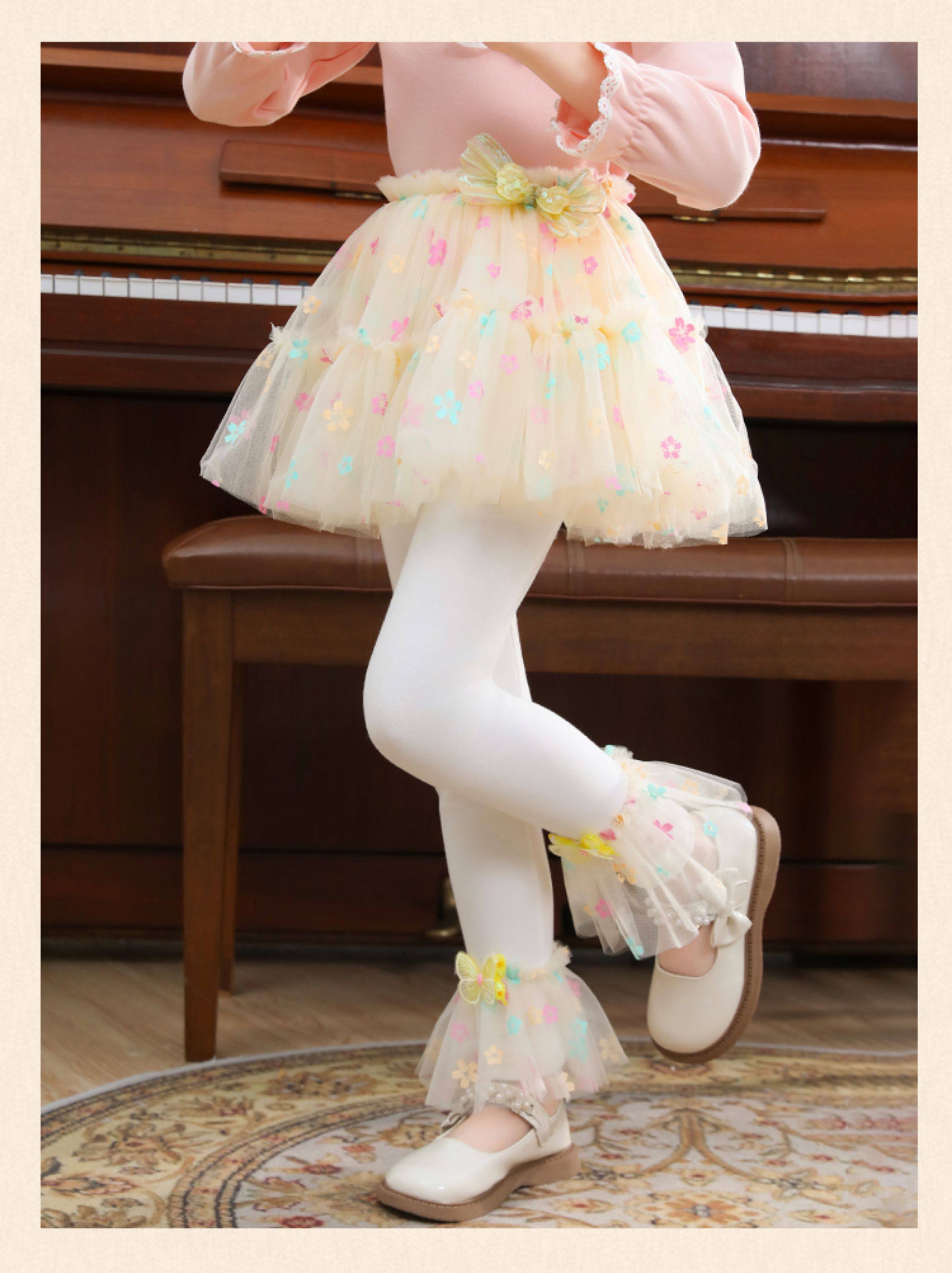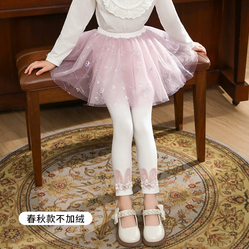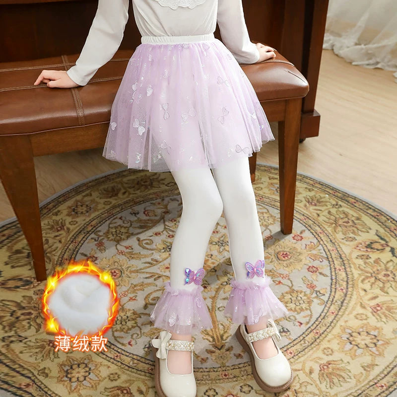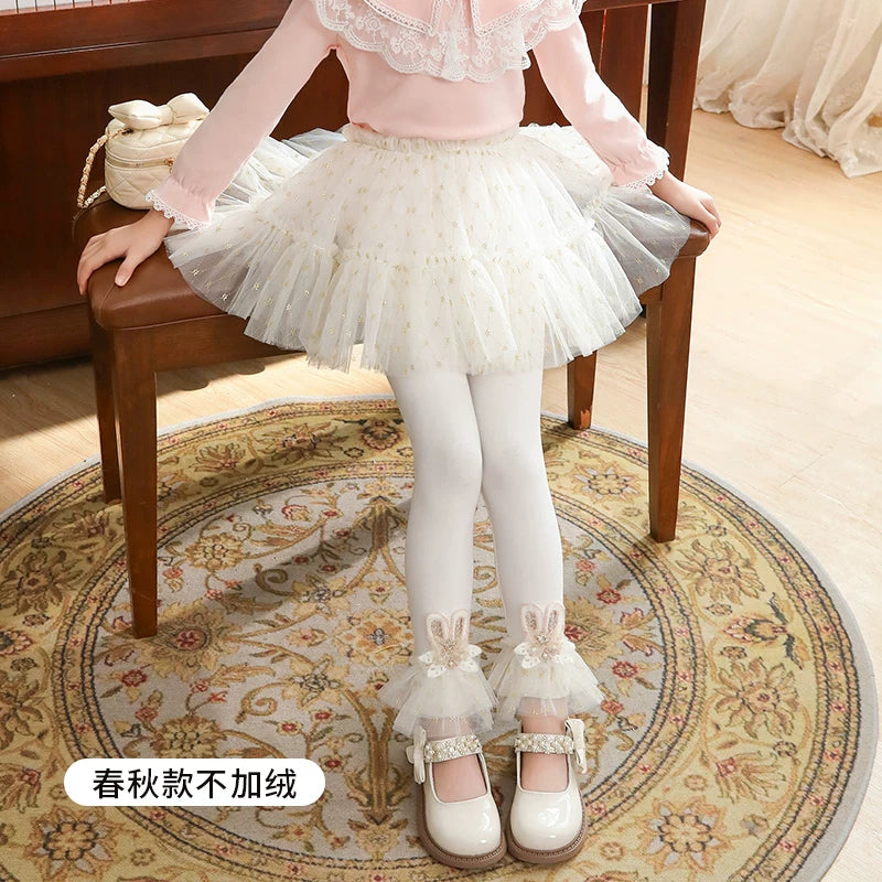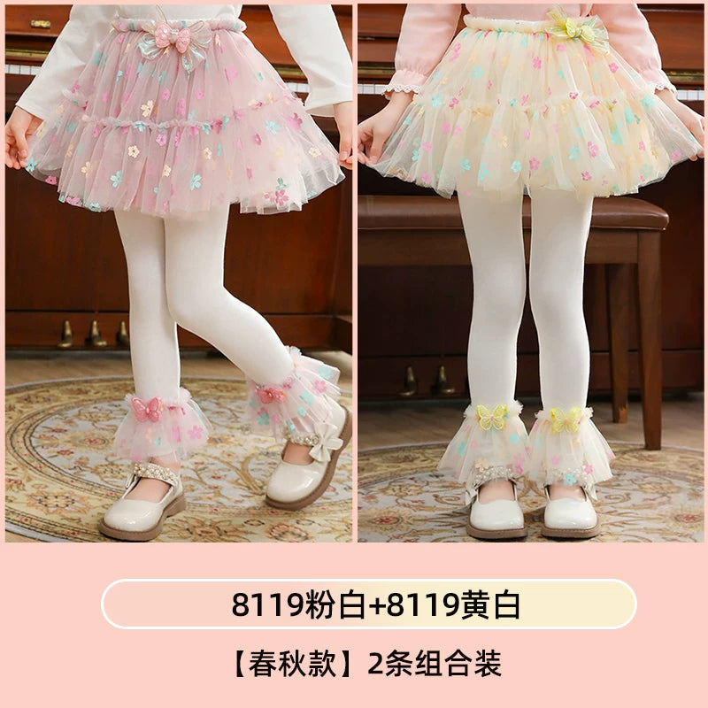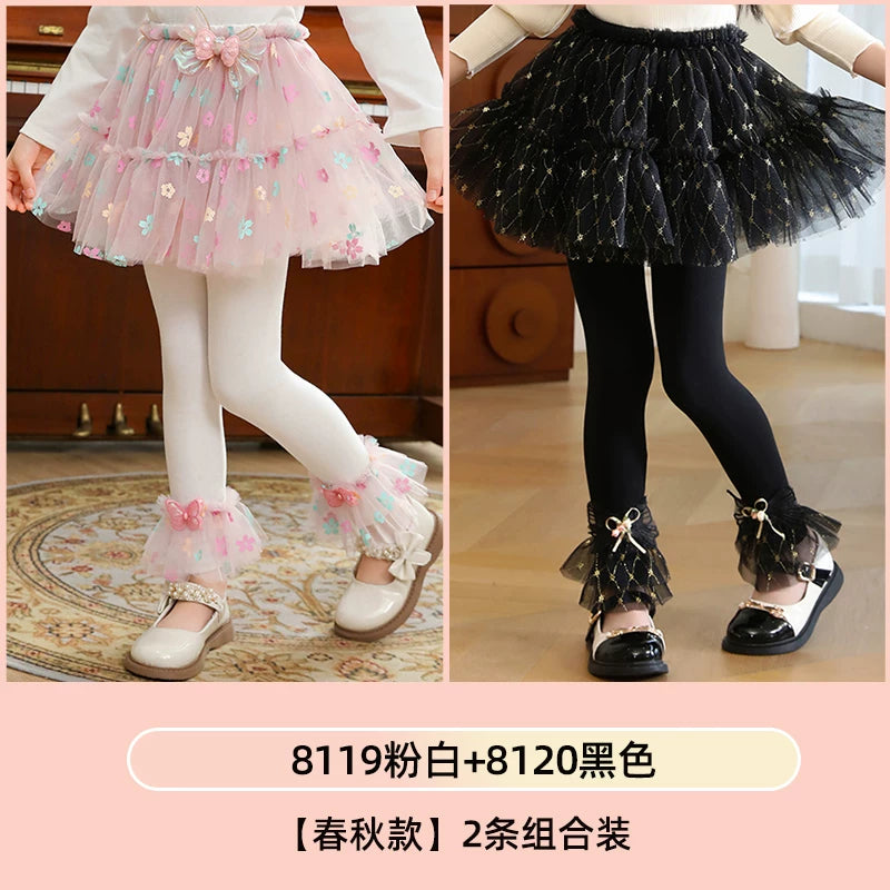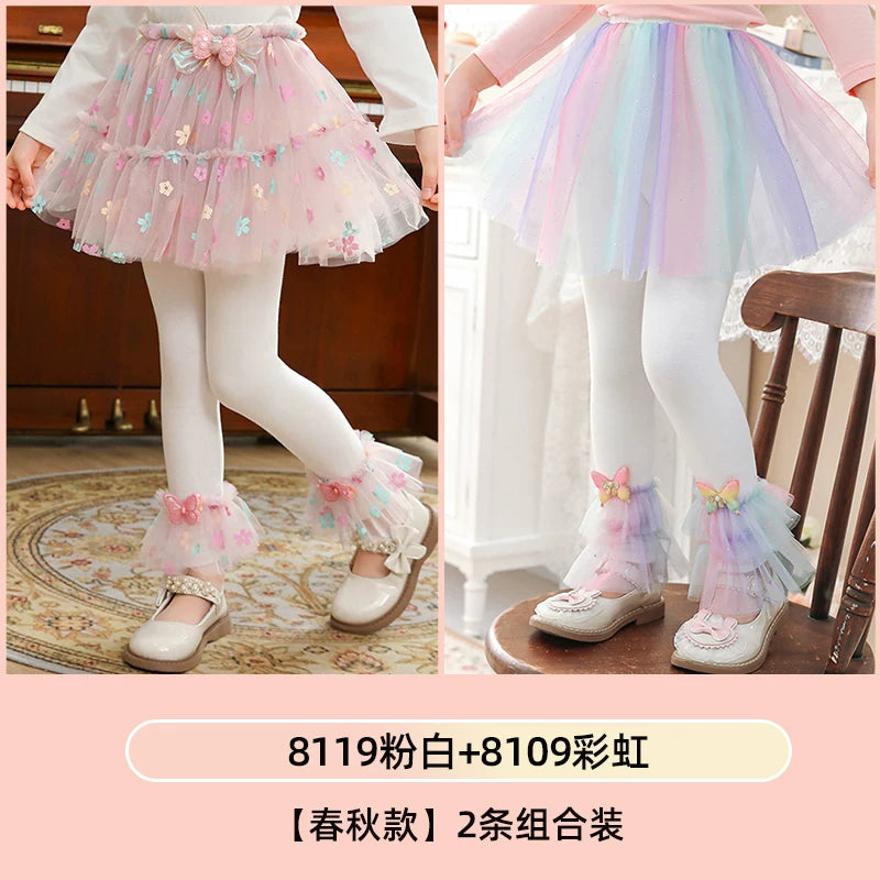 | Qızlar üçün bir hissəli ətək şalvarları, 2025-ci ilin yaz və payız mövsümü üçün yeni model uşaq qış geyimləri, flis astarlı, süni iki hissəli leqinslər, ağ, çöldə geyinmək üçün.