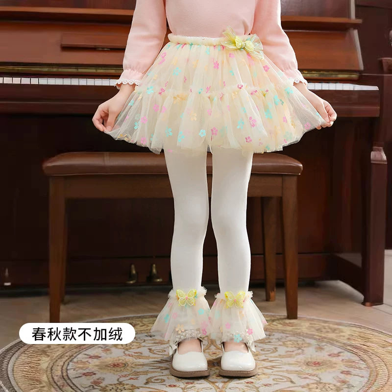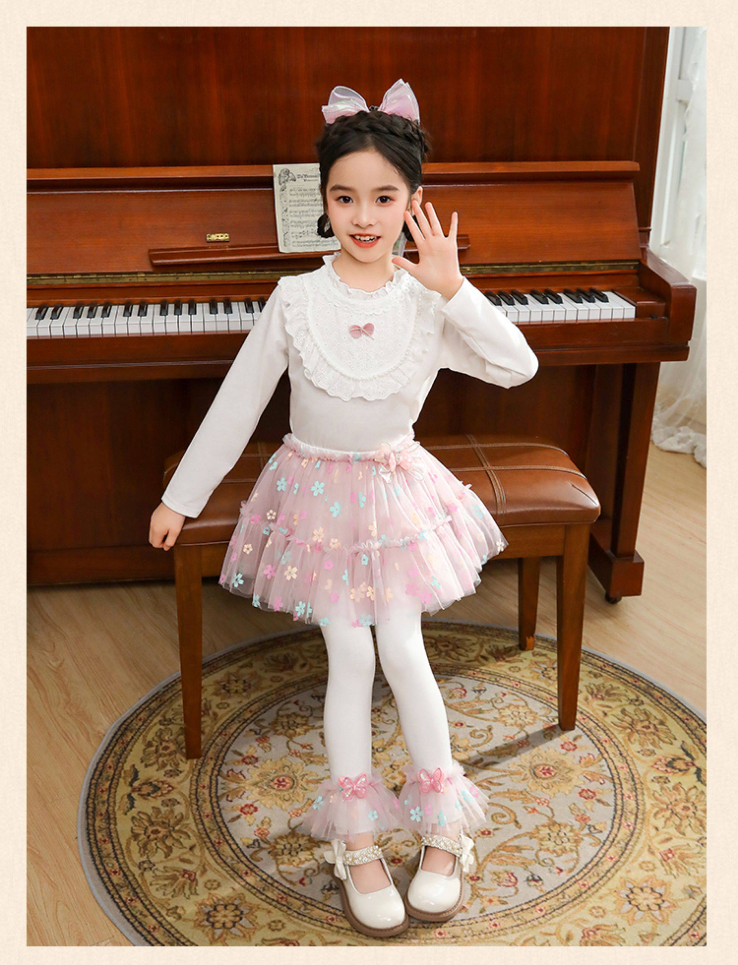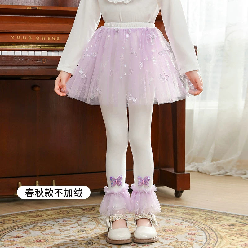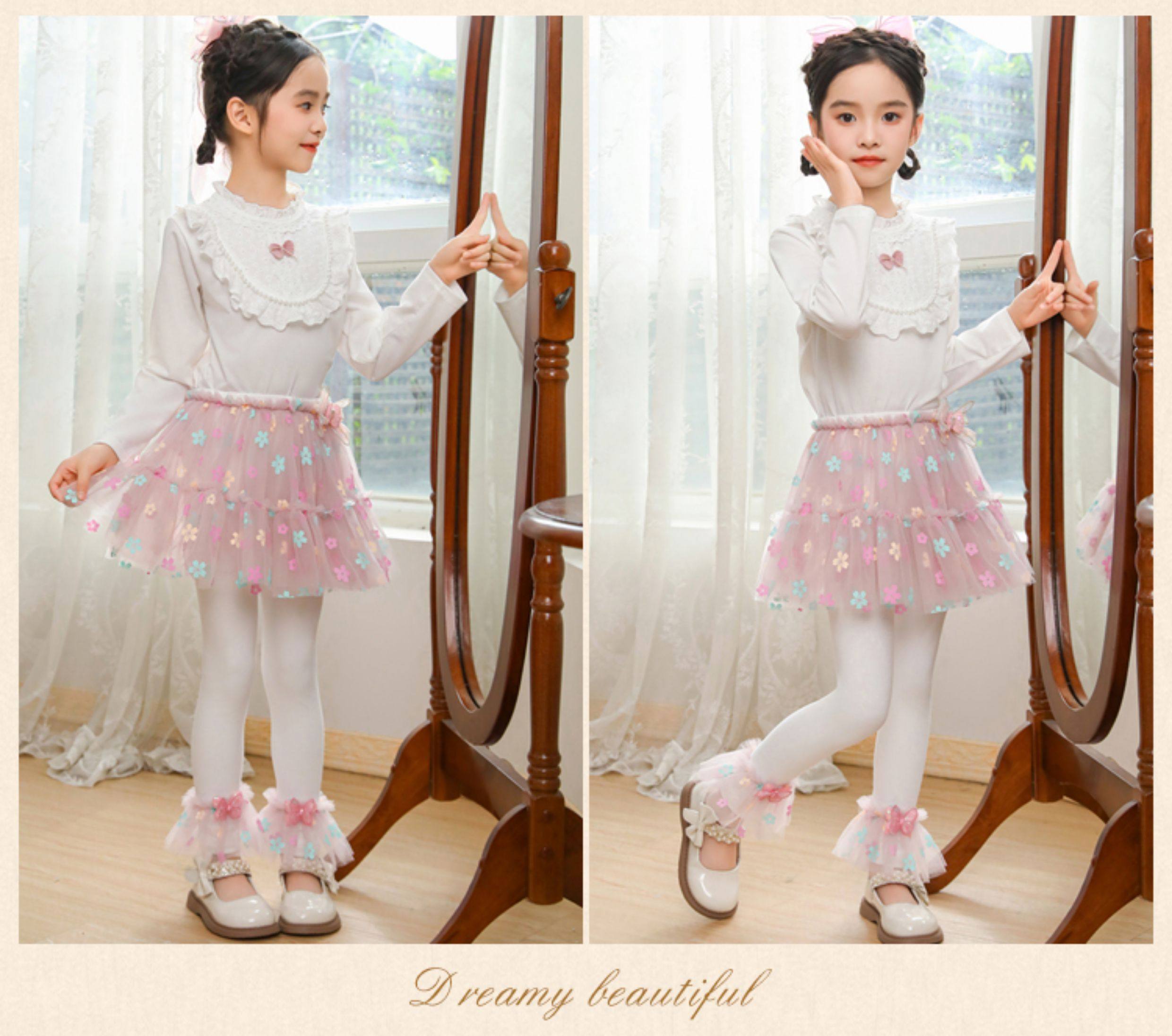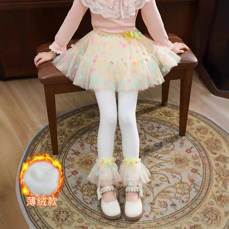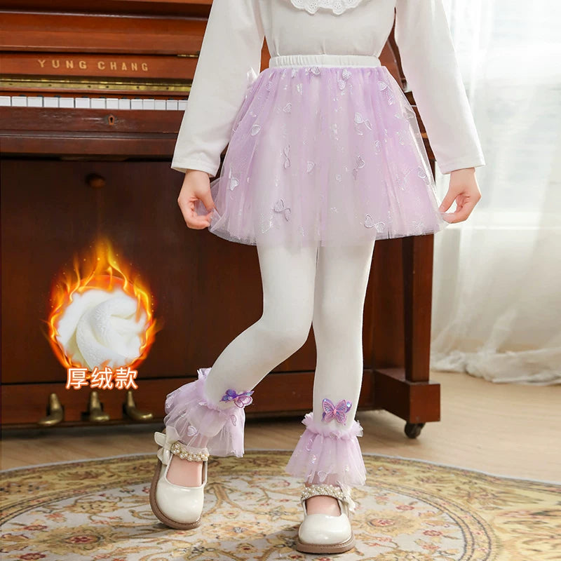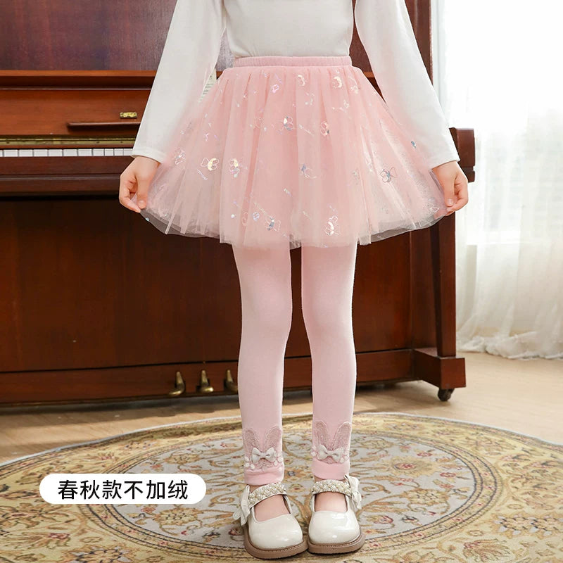 | Qızlar üçün bir hissəli ətək şalvarları, 2025-ci ilin yaz və payız mövsümü üçün yeni model uşaq qış geyimləri, flis astarlı, süni iki hissəli leqinslər, ağ, çöldə geyinmək üçün.