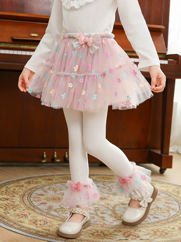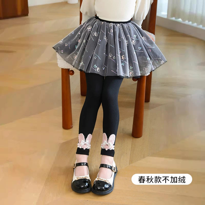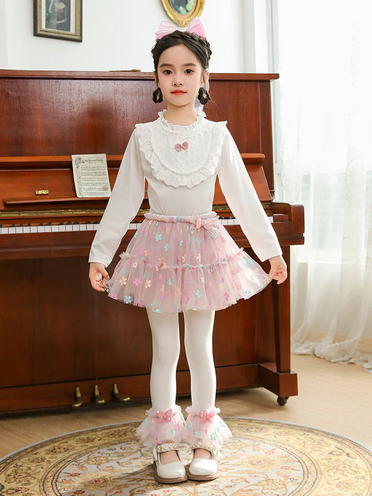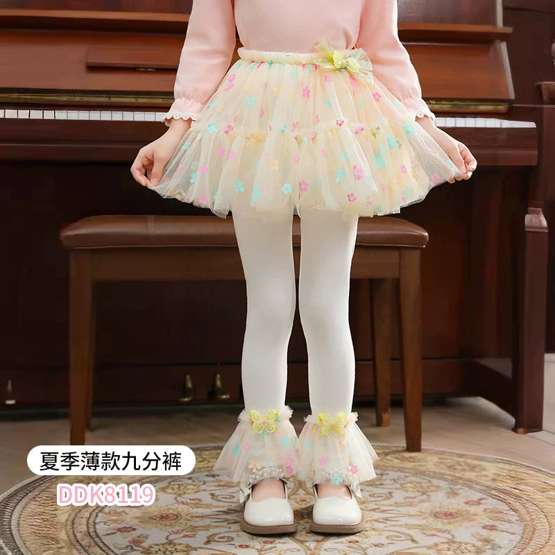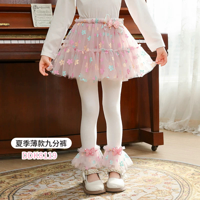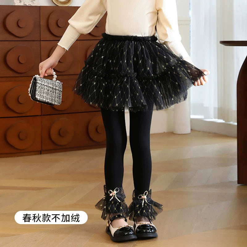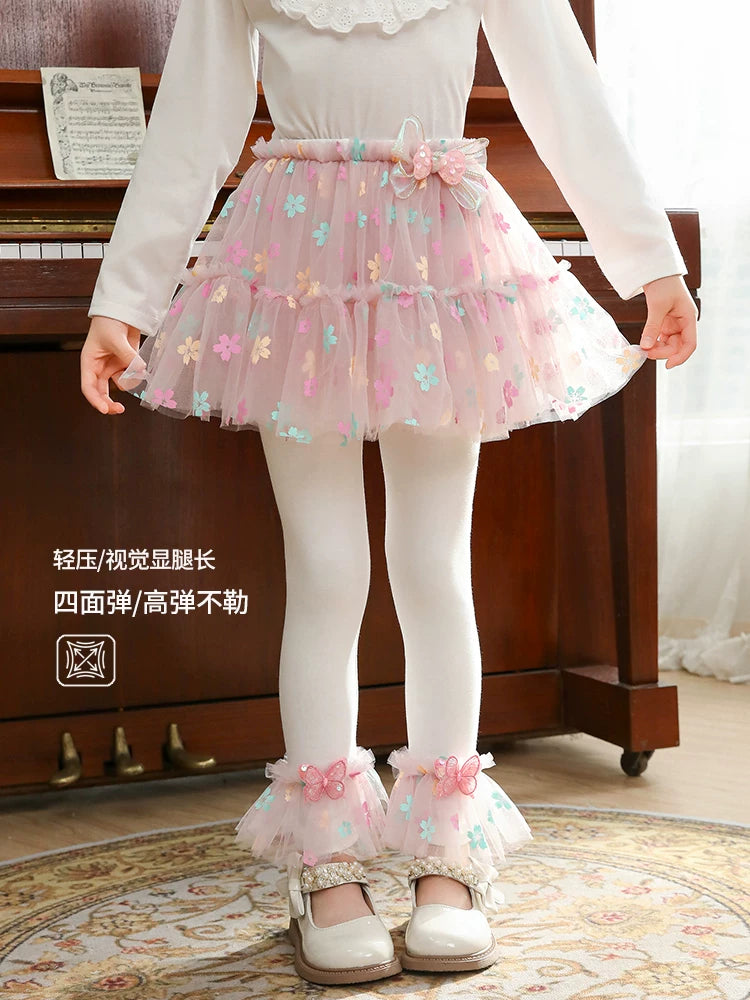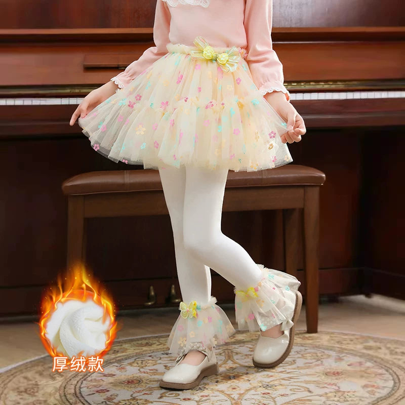 | Qızlar üçün bir hissəli ətək şalvarları, 2025-ci ilin yaz və payız mövsümü üçün yeni model uşaq qış geyimləri, flis astarlı, süni iki hissəli leqinslər, ağ, çöldə geyinmək üçün.