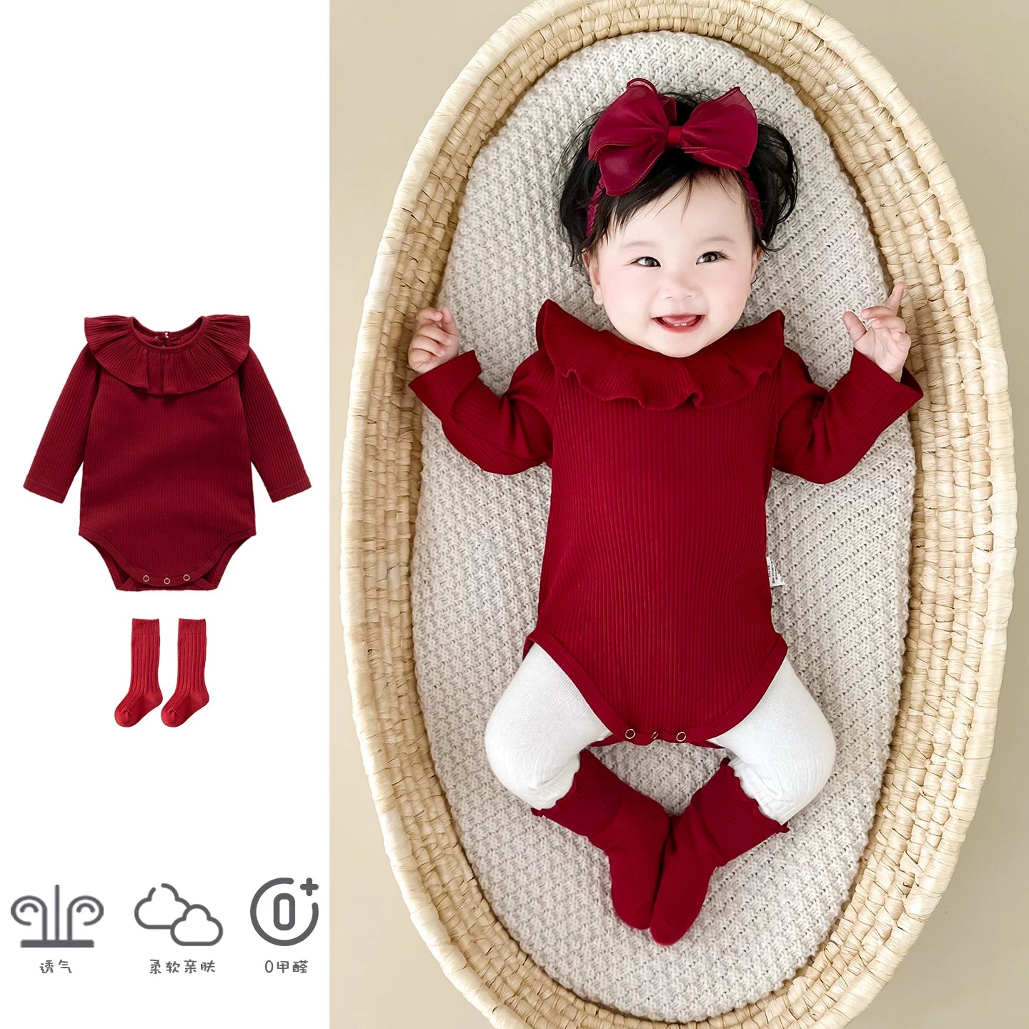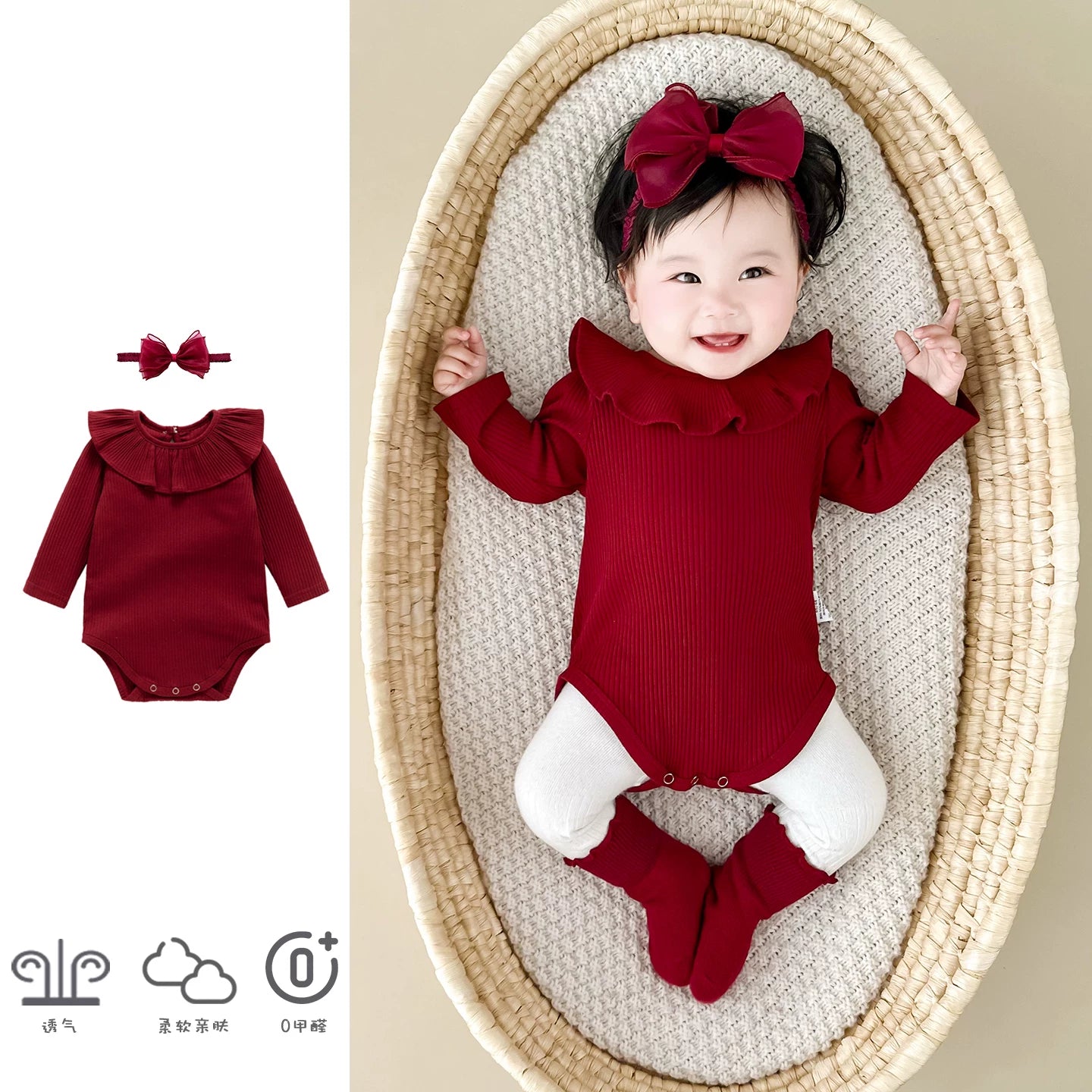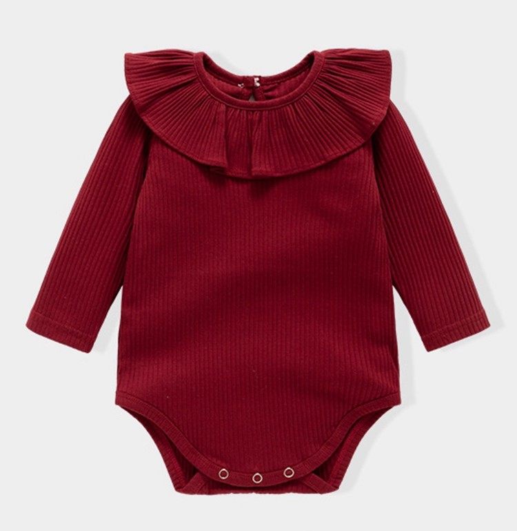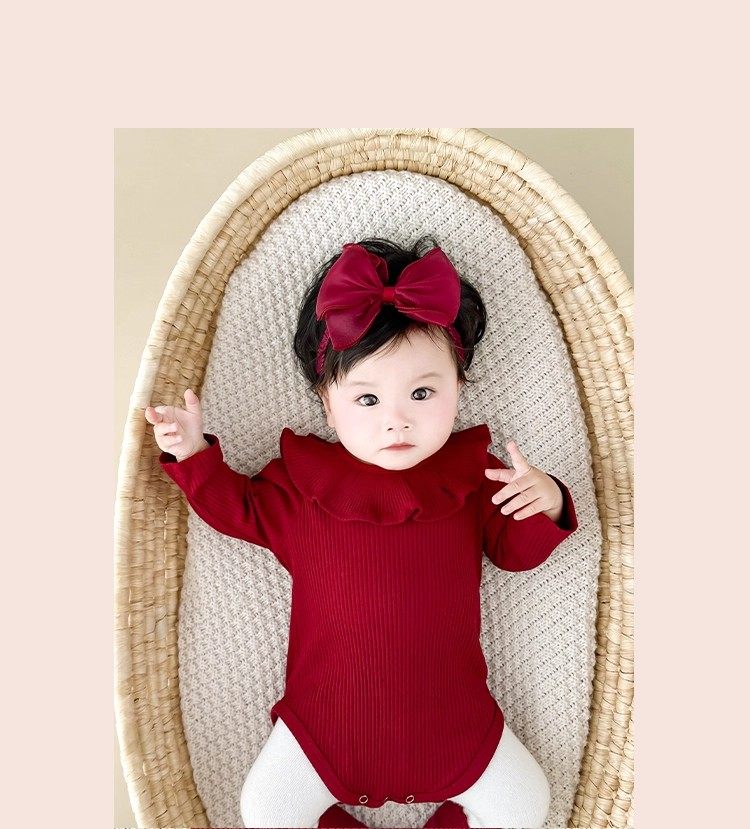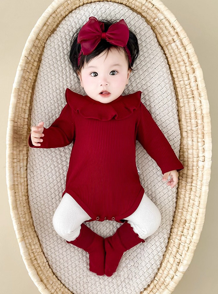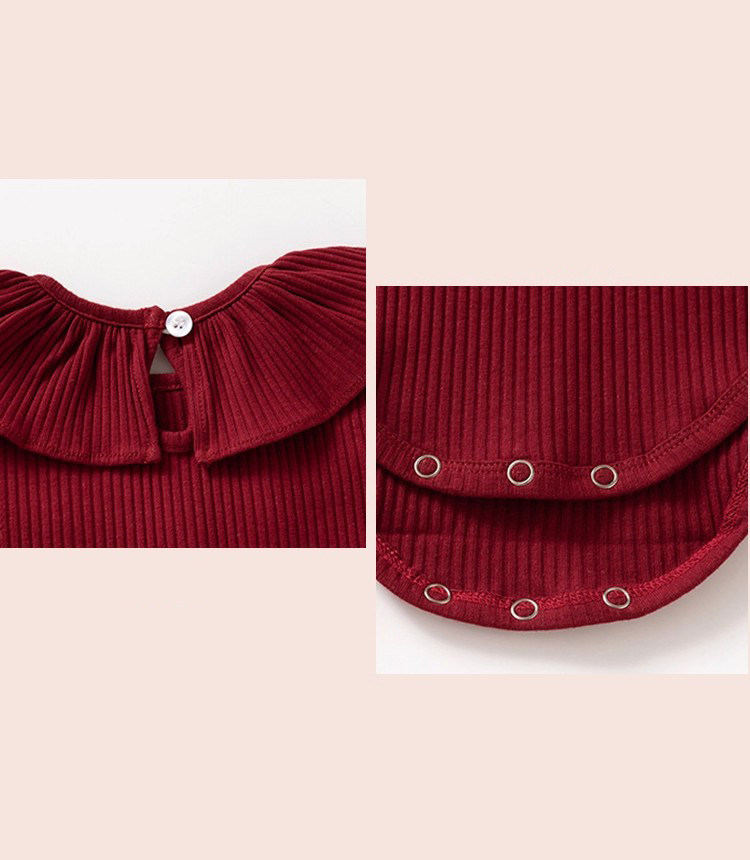 Qızlar üçün Fransız Uamtor Payız Körpə Onesi, Tam Ay/100 Günlük Şahzadə Romperi, Qırmızı Bəzəkli Kostyum