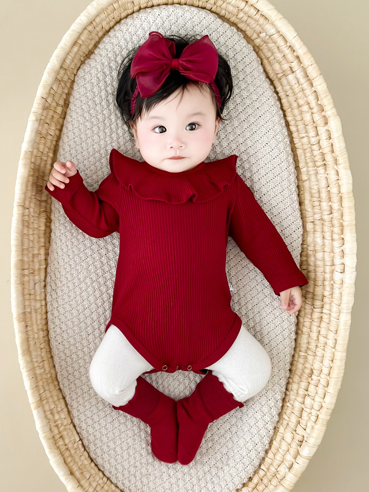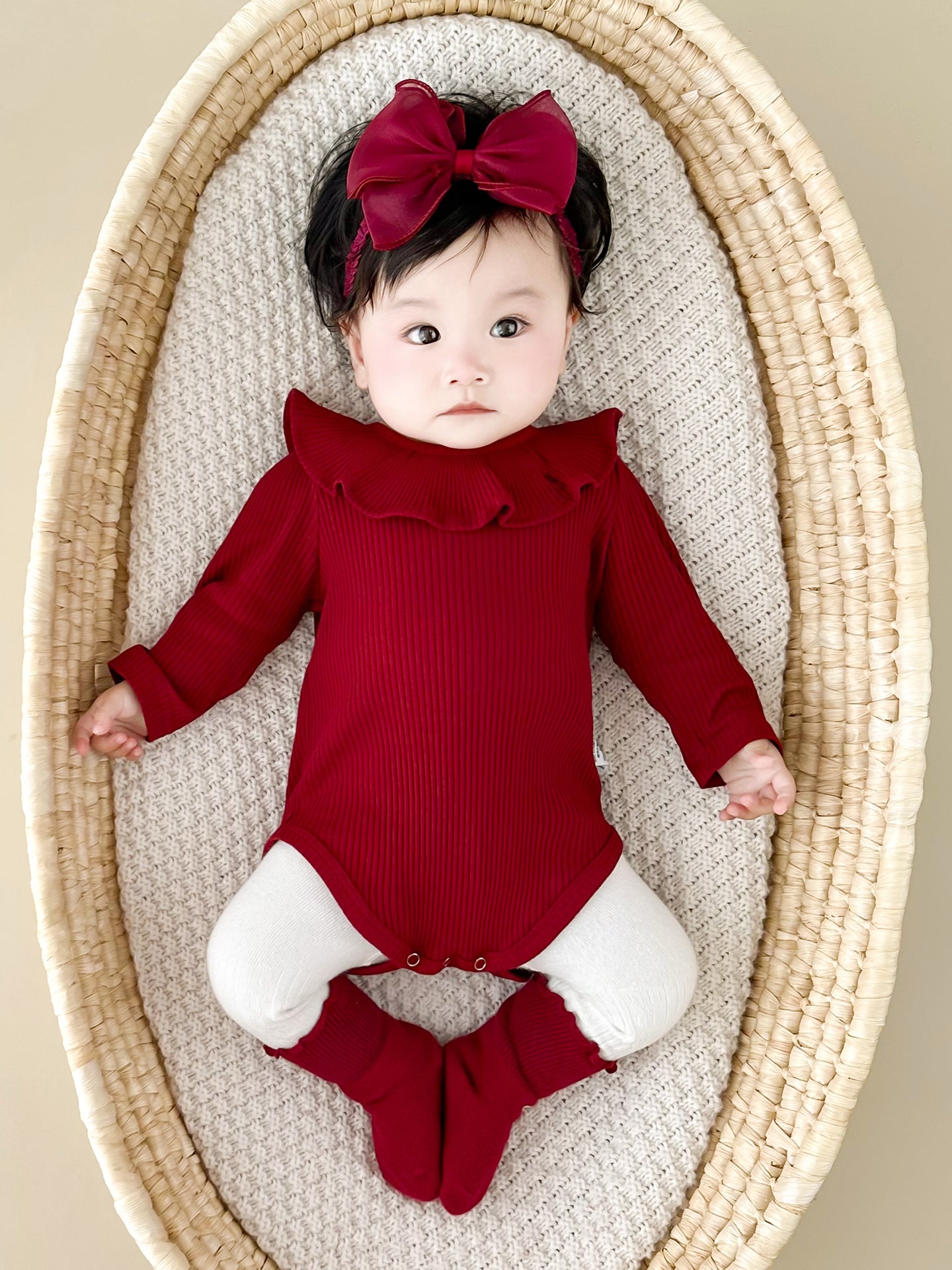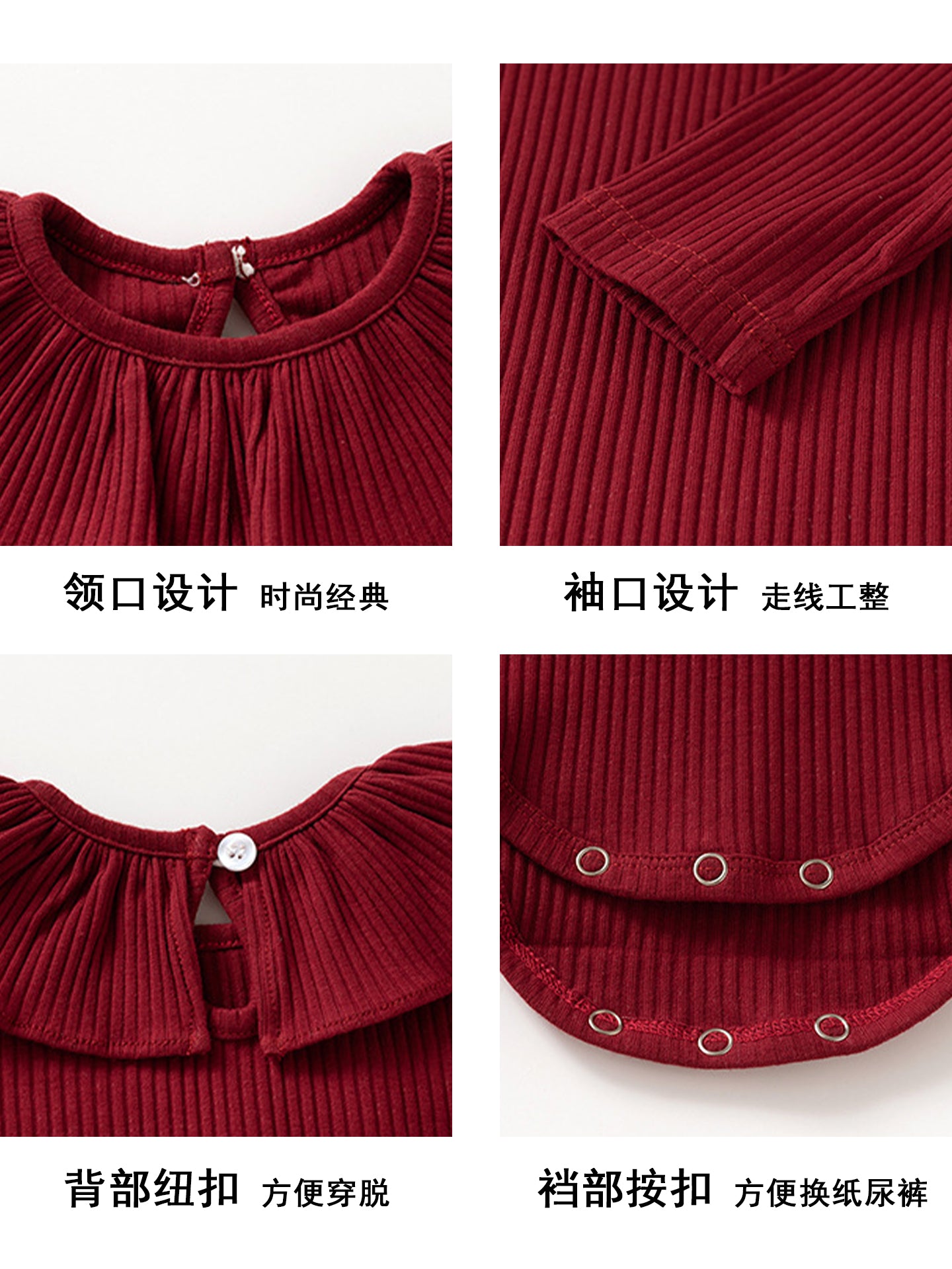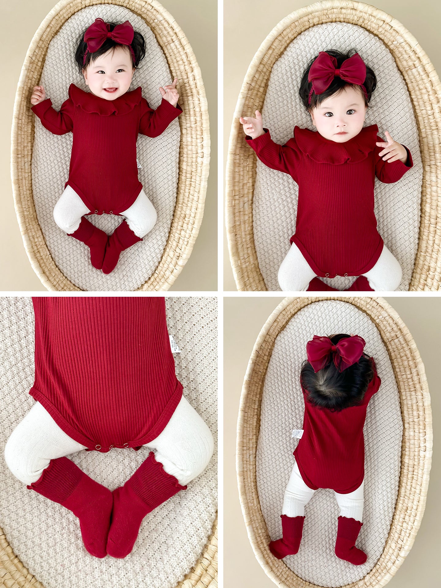 Qızlar üçün Fransız Uamtor Payız Körpə Onesi, Tam Ay/100 Günlük Şahzadə Romperi, Qırmızı Bəzəkli Kostyum