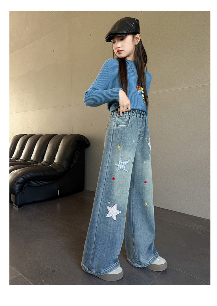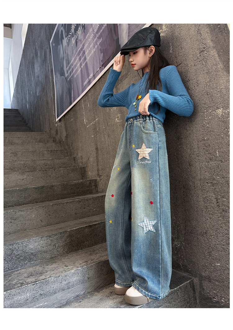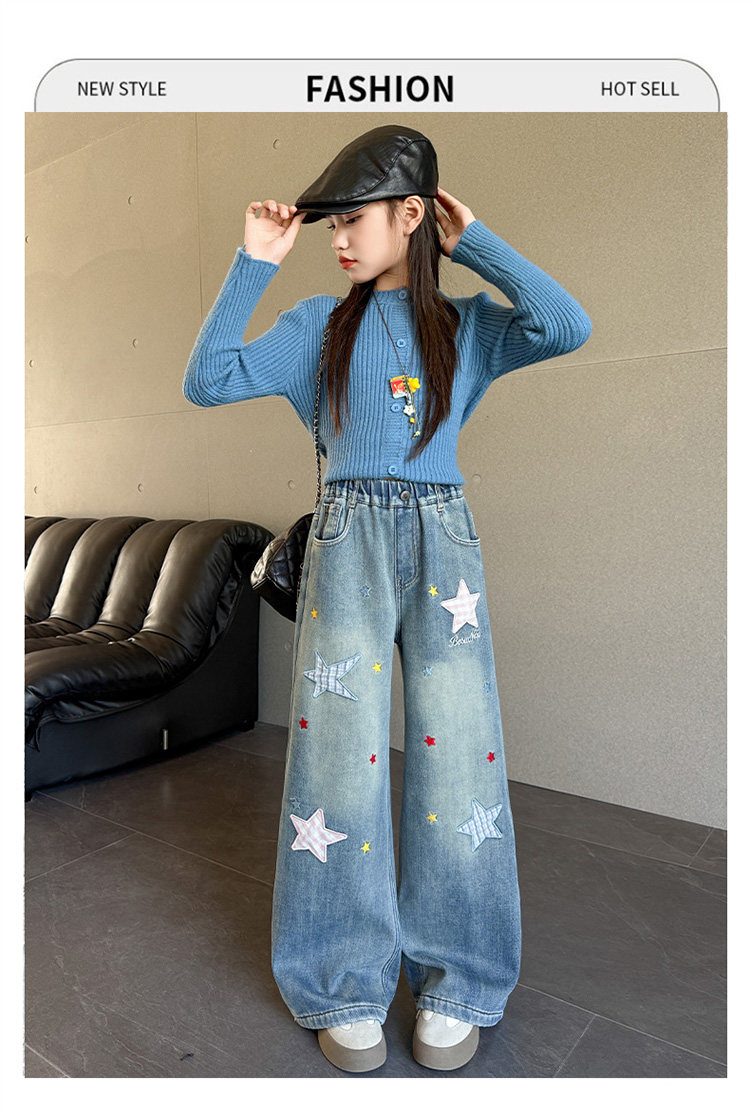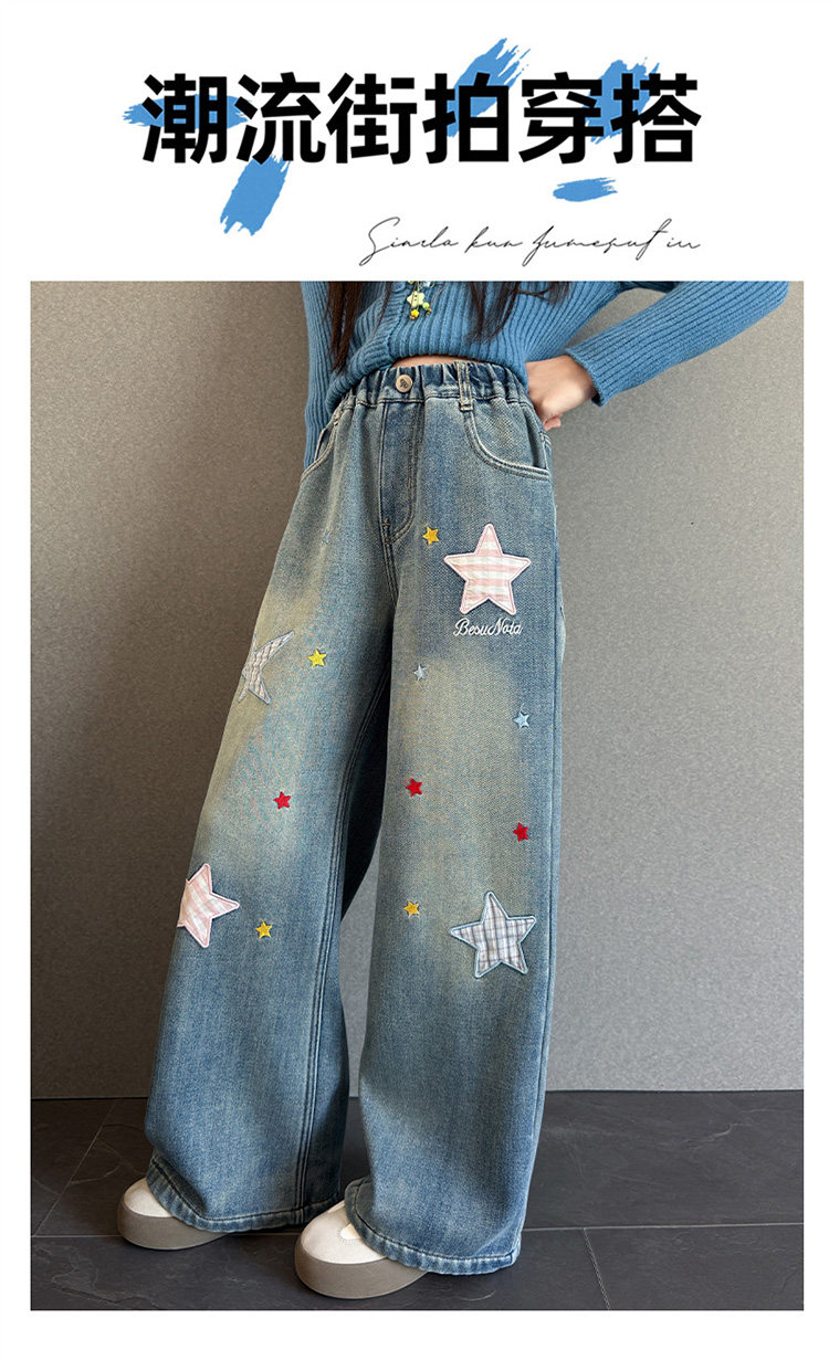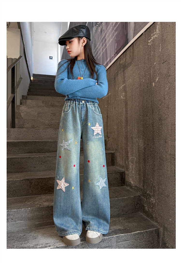 Qızlar üçün yun astarlı şalvar, payız/qış üslubunda, 2025 yeni üslubunda, böyük uşaqlar üçün enli ayaqlı şalvar, qış üçün qalınlaşdırılmış gündəlik cins şalvar.