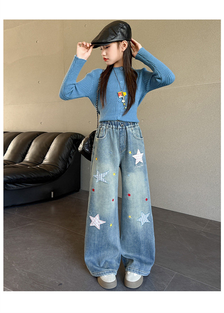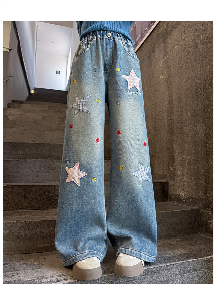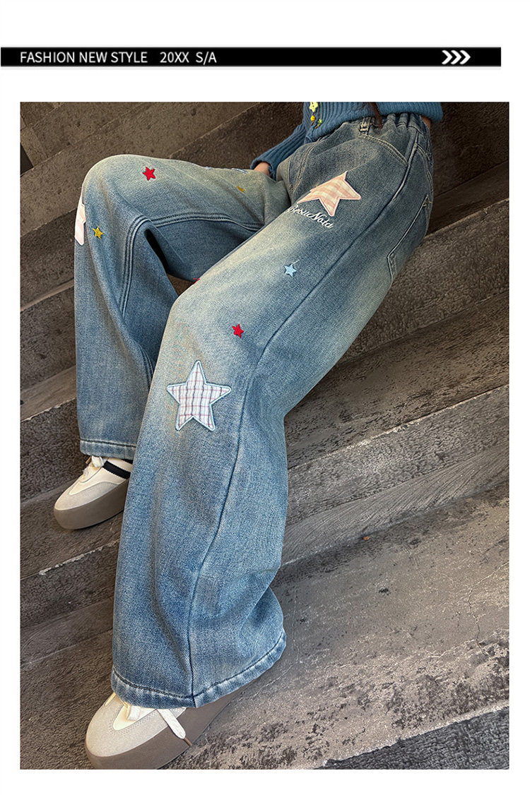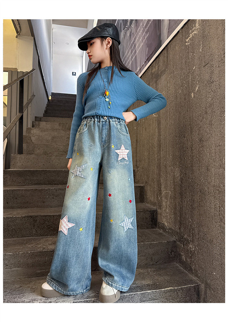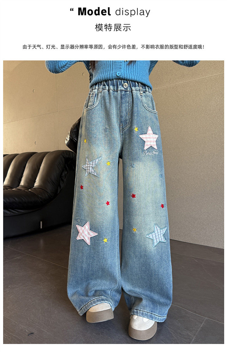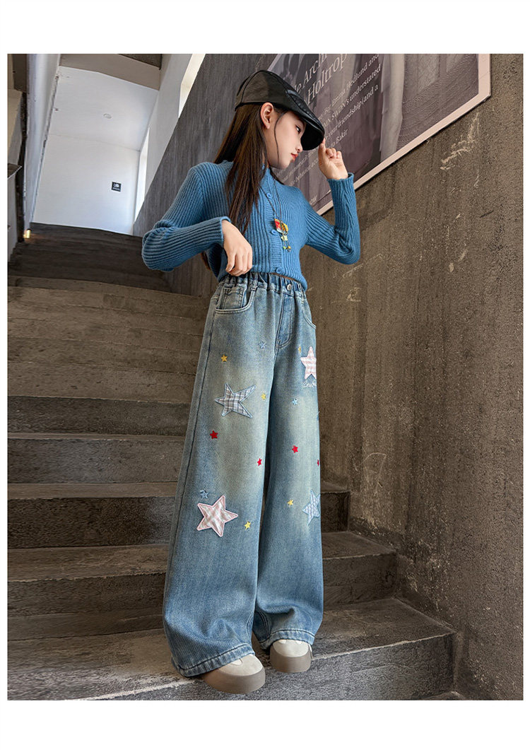 Qızlar üçün yun astarlı şalvar, payız/qış üslubunda, 2025 yeni üslubunda, böyük uşaqlar üçün enli ayaqlı şalvar, qış üçün qalınlaşdırılmış gündəlik cins şalvar.