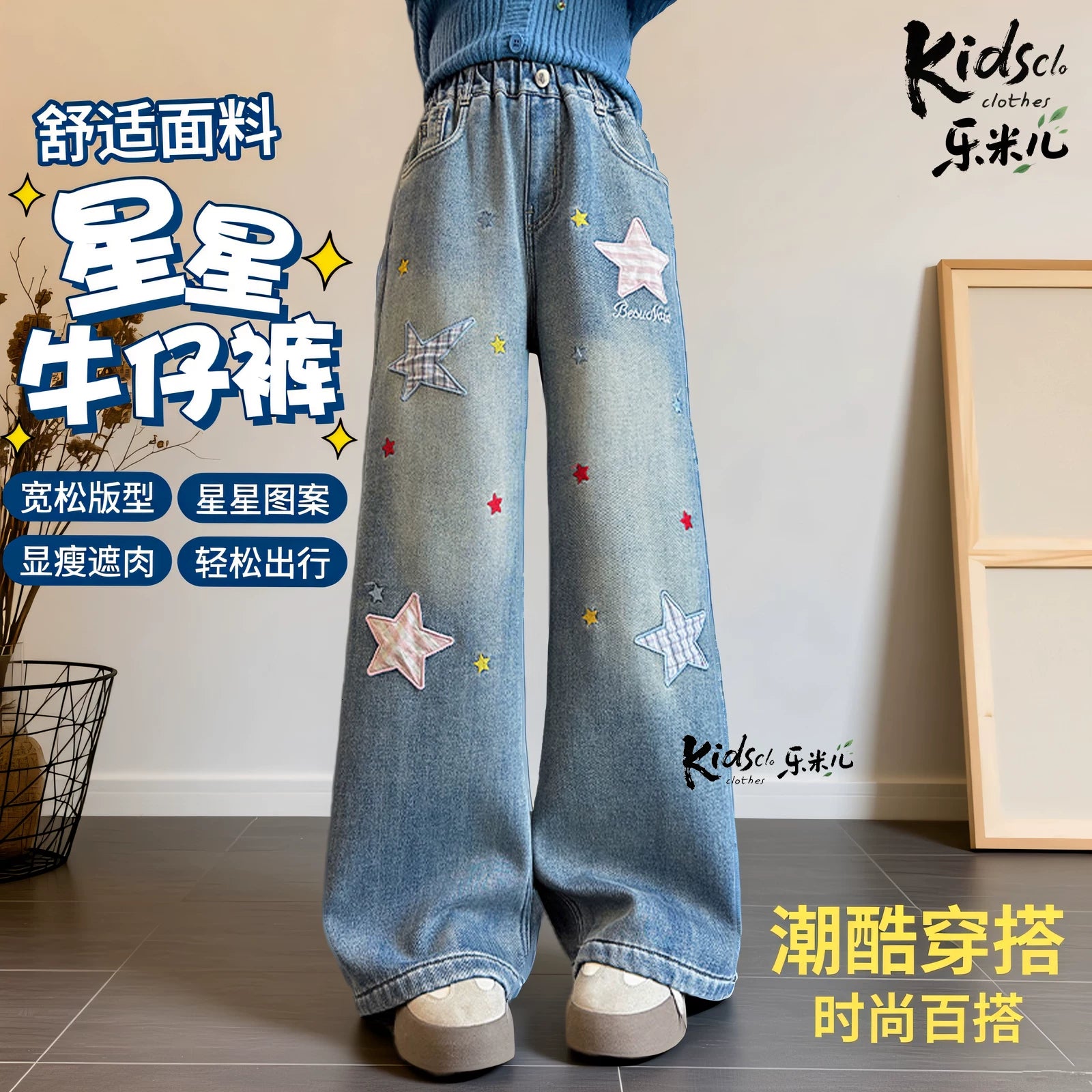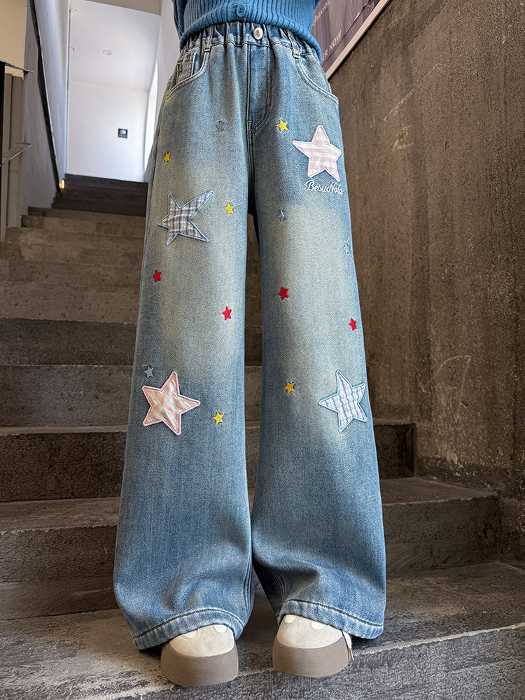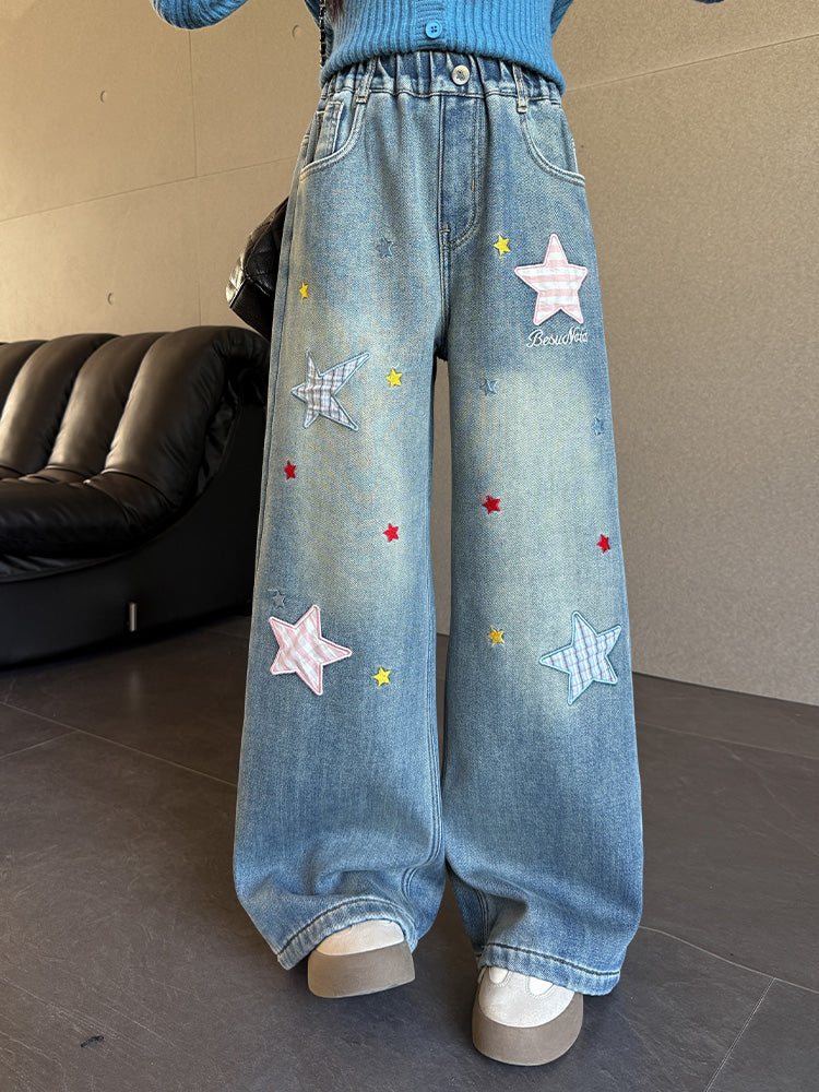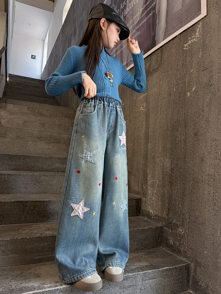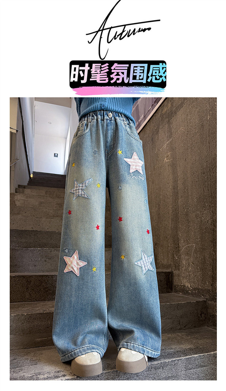 Qızlar üçün yun astarlı şalvar, payız/qış üslubunda, 2025 yeni üslubunda, böyük uşaqlar üçün enli ayaqlı şalvar, qış üçün qalınlaşdırılmış gündəlik cins şalvar.