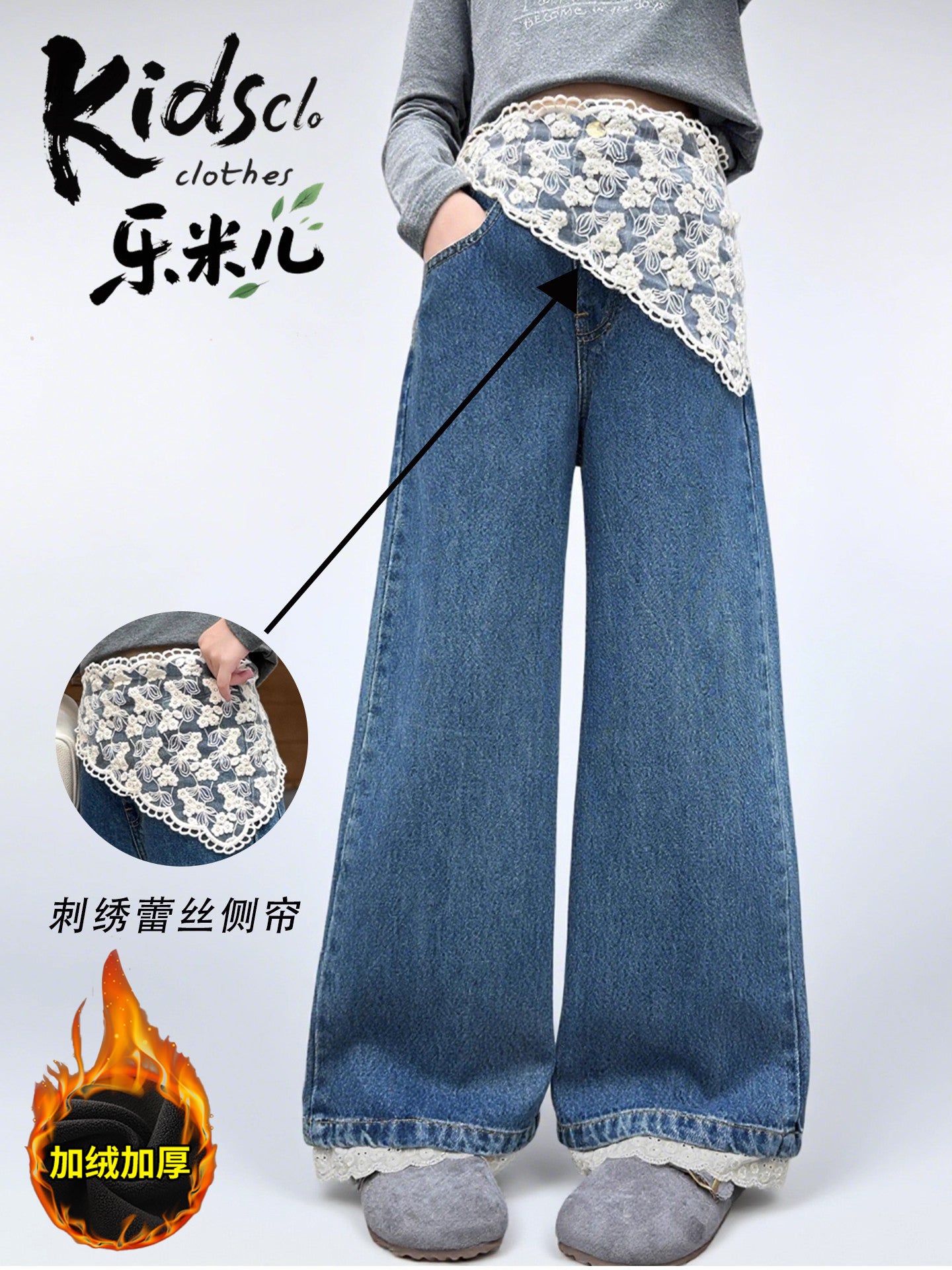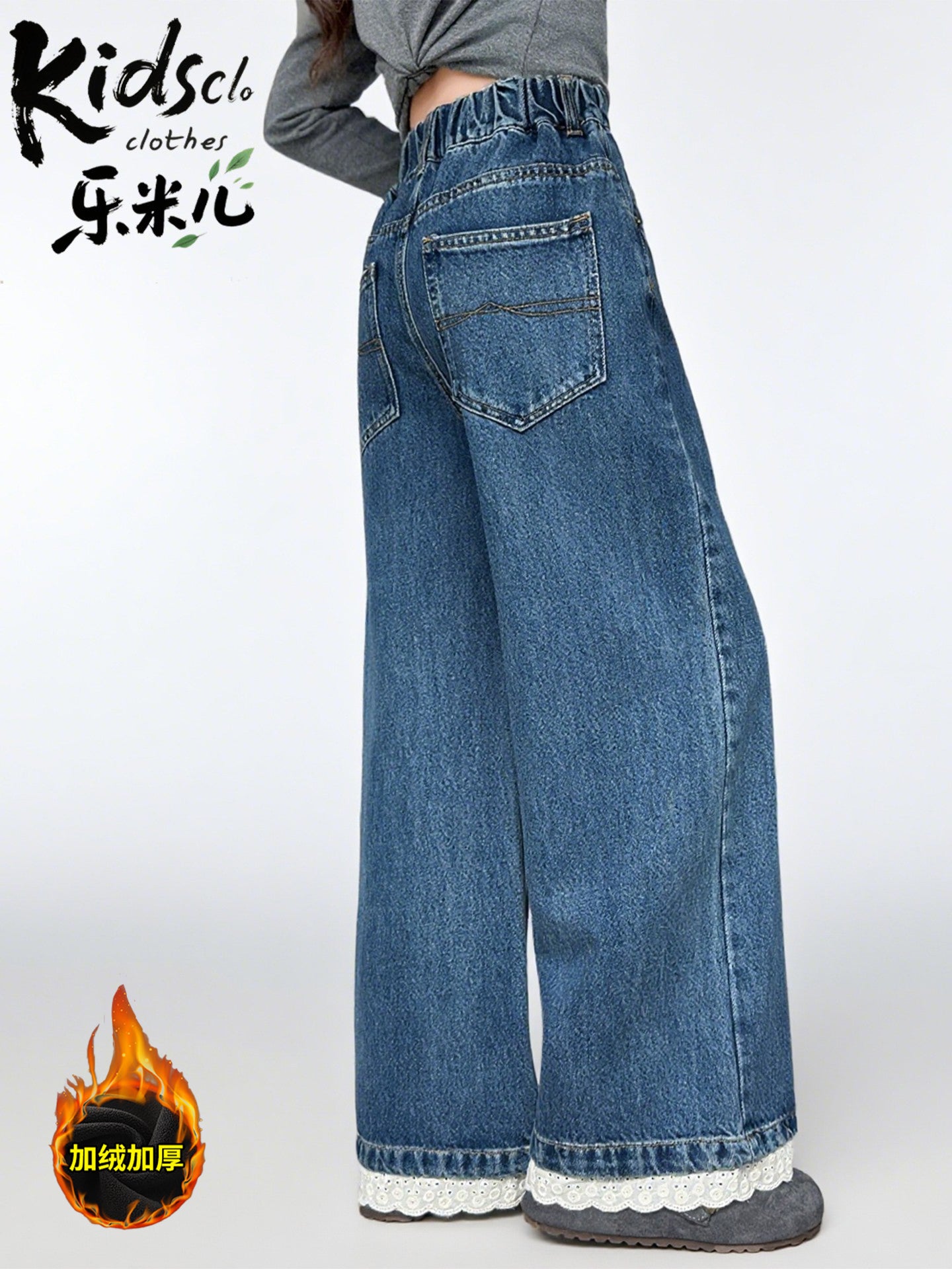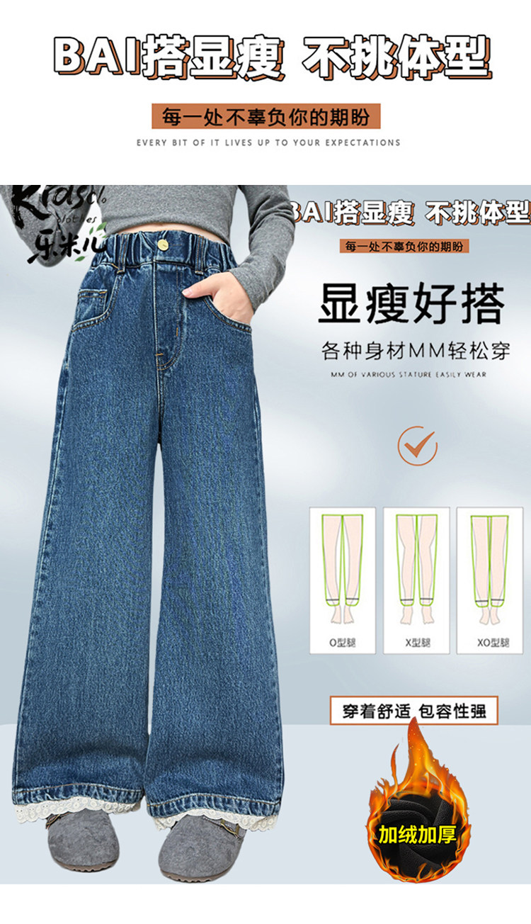 Qızlar üçün yun astarlı şalvarlar, yeni payız və qış modası, böyük uşaqlar üçün qalınlaşdırılmış enli cins şalvarlar, dəbli və gündəlik uzun şalvarlar.