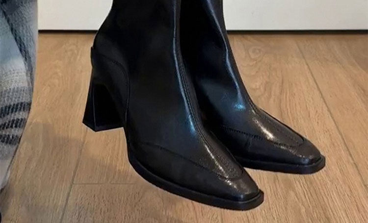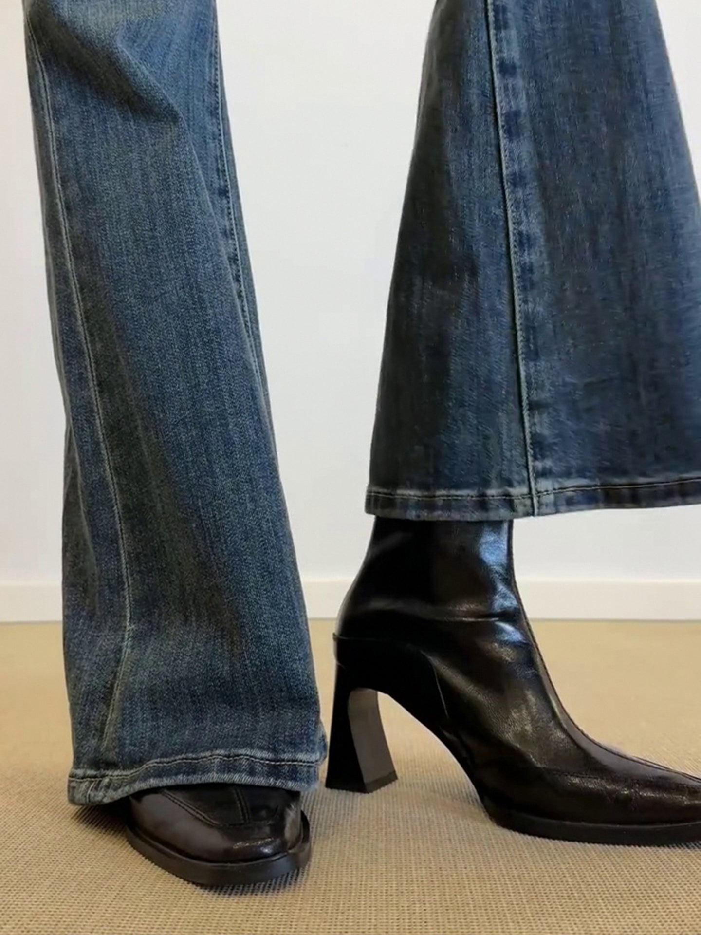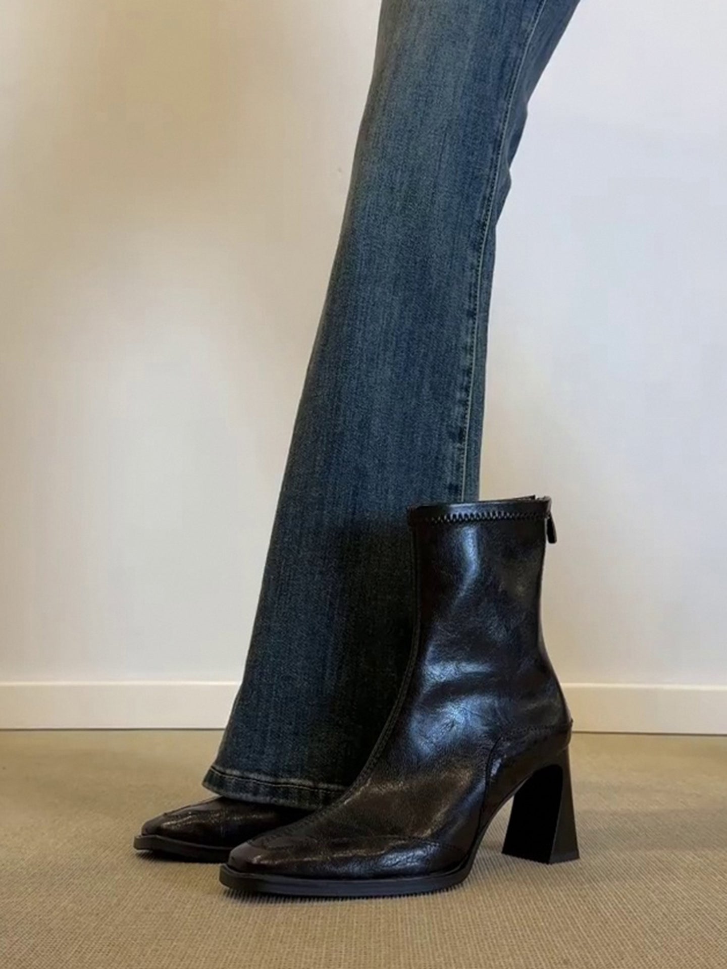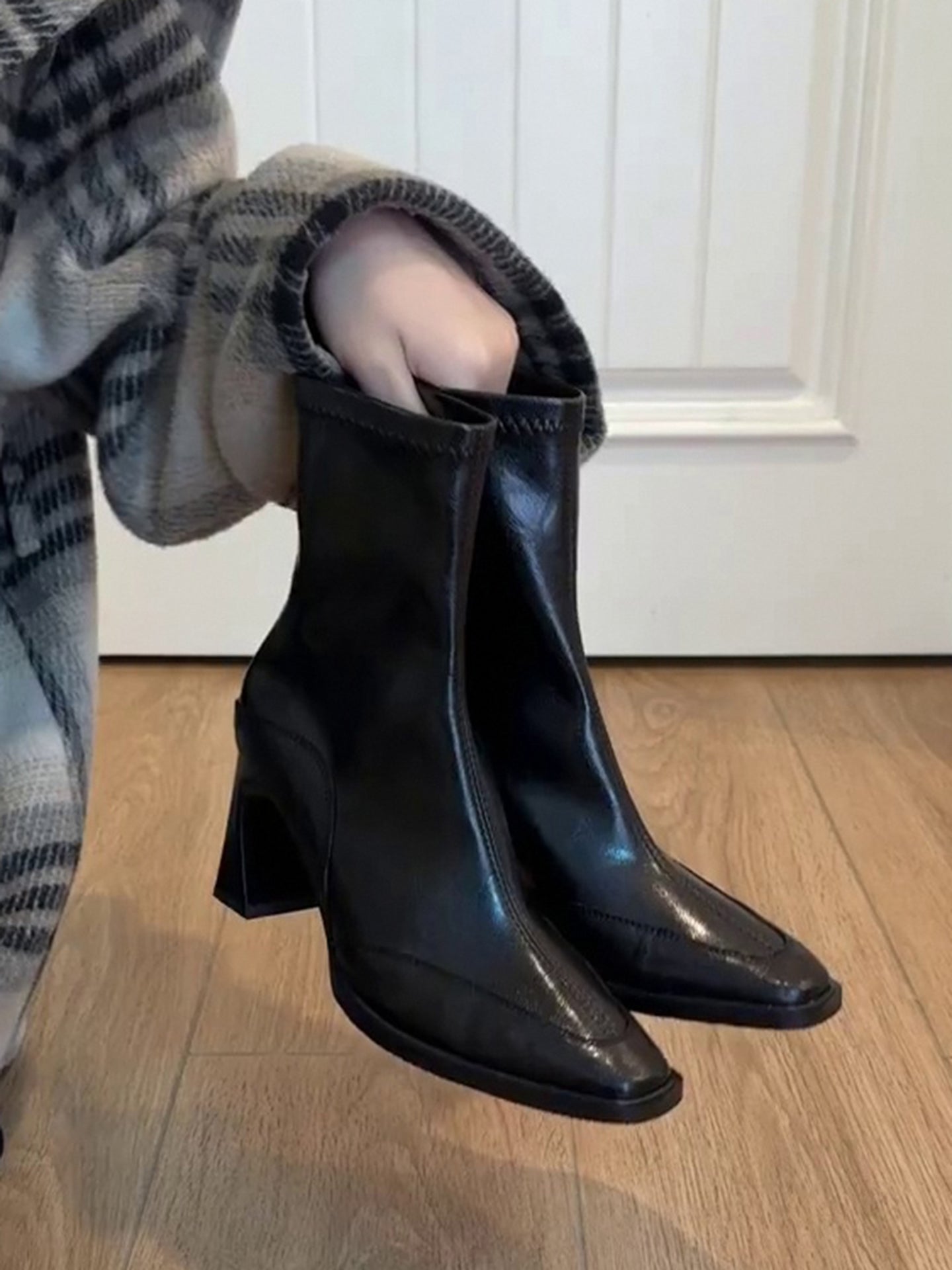 Qoyun dərisi versiyası ~ Qadınlar üçün orijinal dəri kvadrat burunlu fransız topuq çəkmələri, hündürdaban ayaqqabılar, 2025-ci ilin yeni modeli, qalın dabanlı ayaqqabılar, Martin çəkmələri, elastik və nazik çəkmələr.