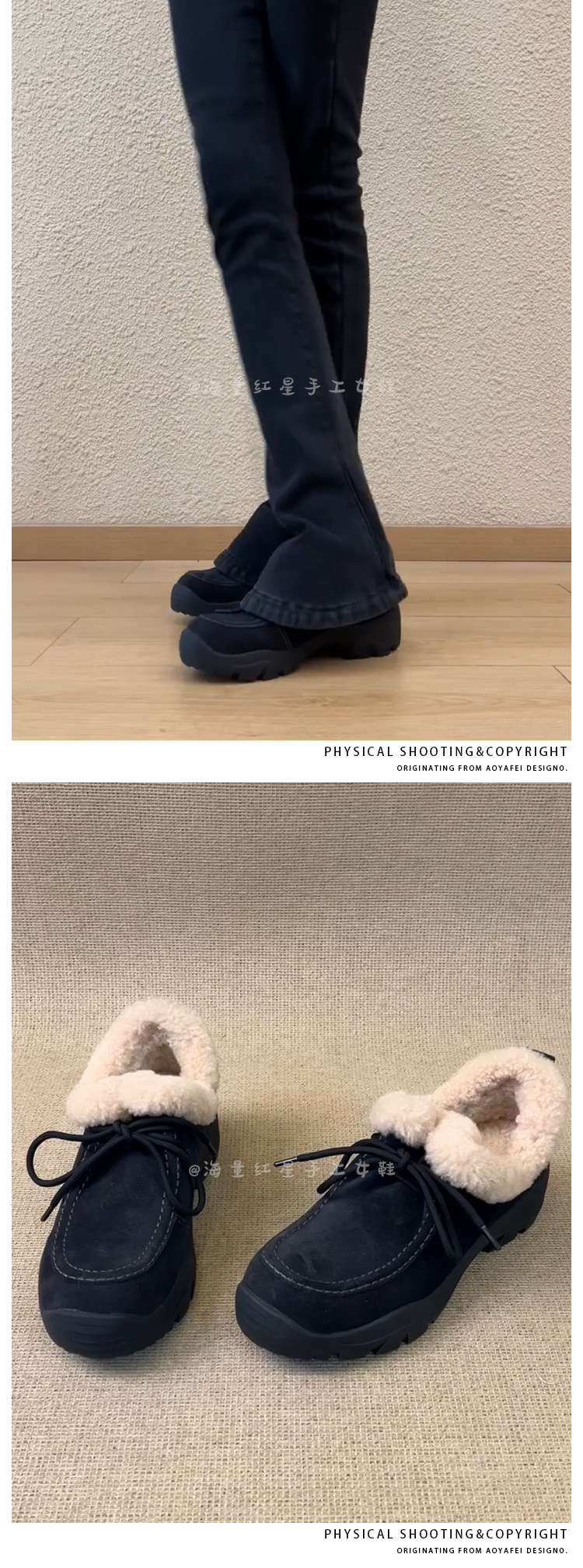 Qoyun dərisi versiyası ~ Qadınlar üçün qalın dabanlı yun astarlı mokasinlər, yeni qış üslubunda, bağcıqlı, isti, çoxfunksiyalı, tüklü tək ayaqqabılar, pambıq ayaqqabılar, qar çəkmələri