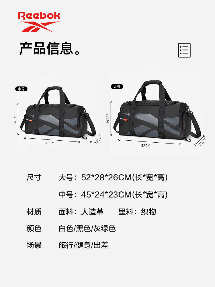 Reebok Böyük Tutumlu İşgüzar Səfər Çantası, Çiyin Çantası, Əl Çantası, Çarpaz Bədən Çantası, İdman Suya Davamlı İdman Zalı Çantası