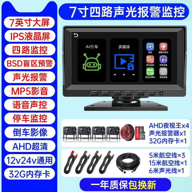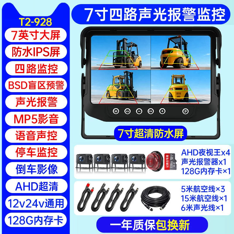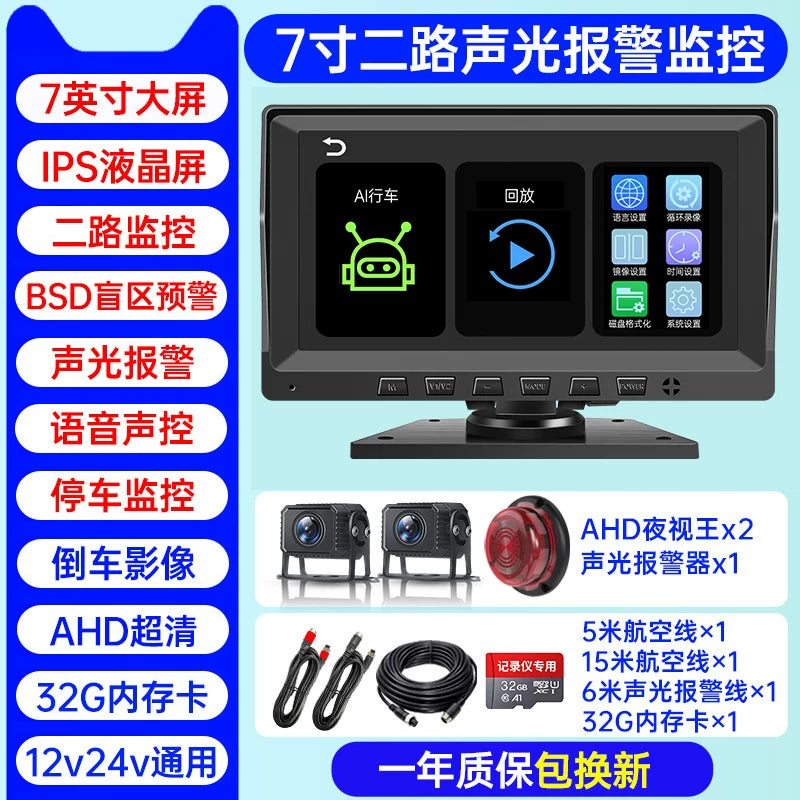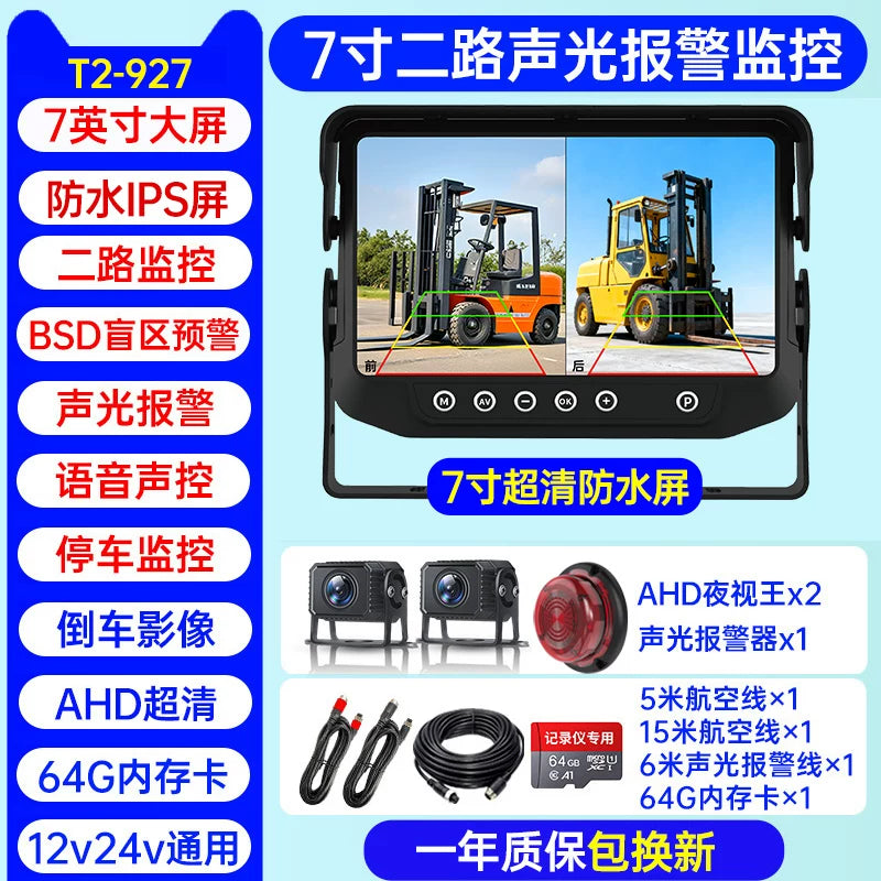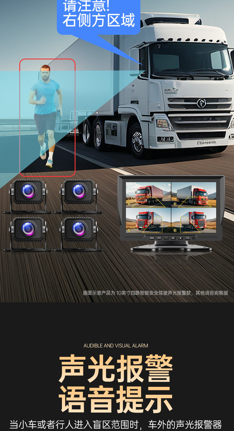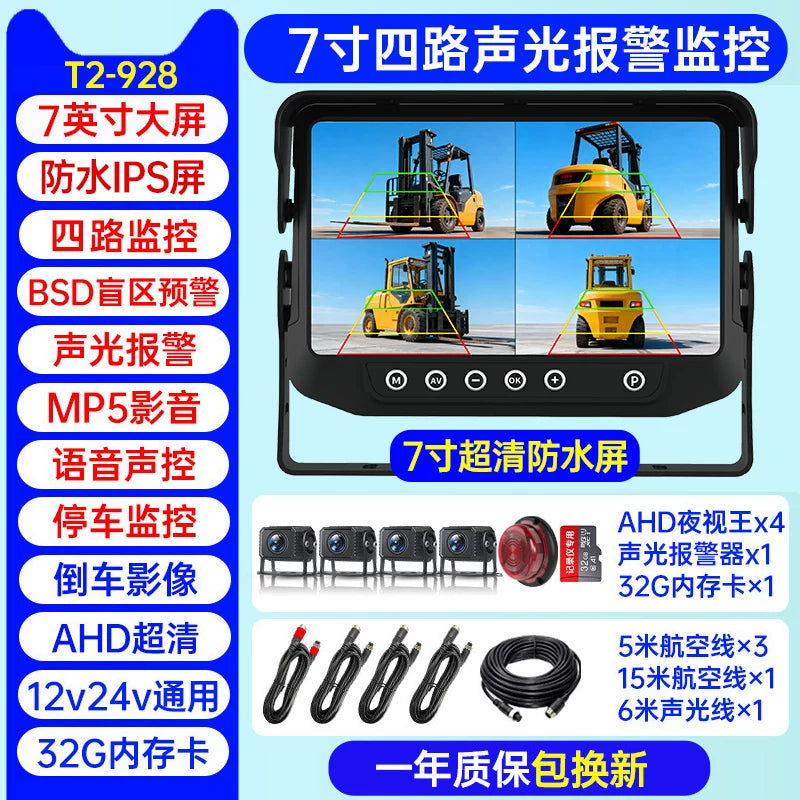 Səs və işıq siqnalizasiyaları, süni intellekt kor zona radar xəbərdarlıq sistemi, dörd kanallı monitorinq və geriyə çəkilmə kamerası ilə təchiz olunmuş yük maşını tablosuna.