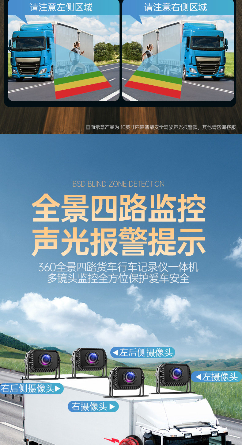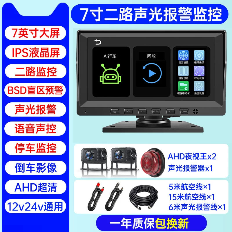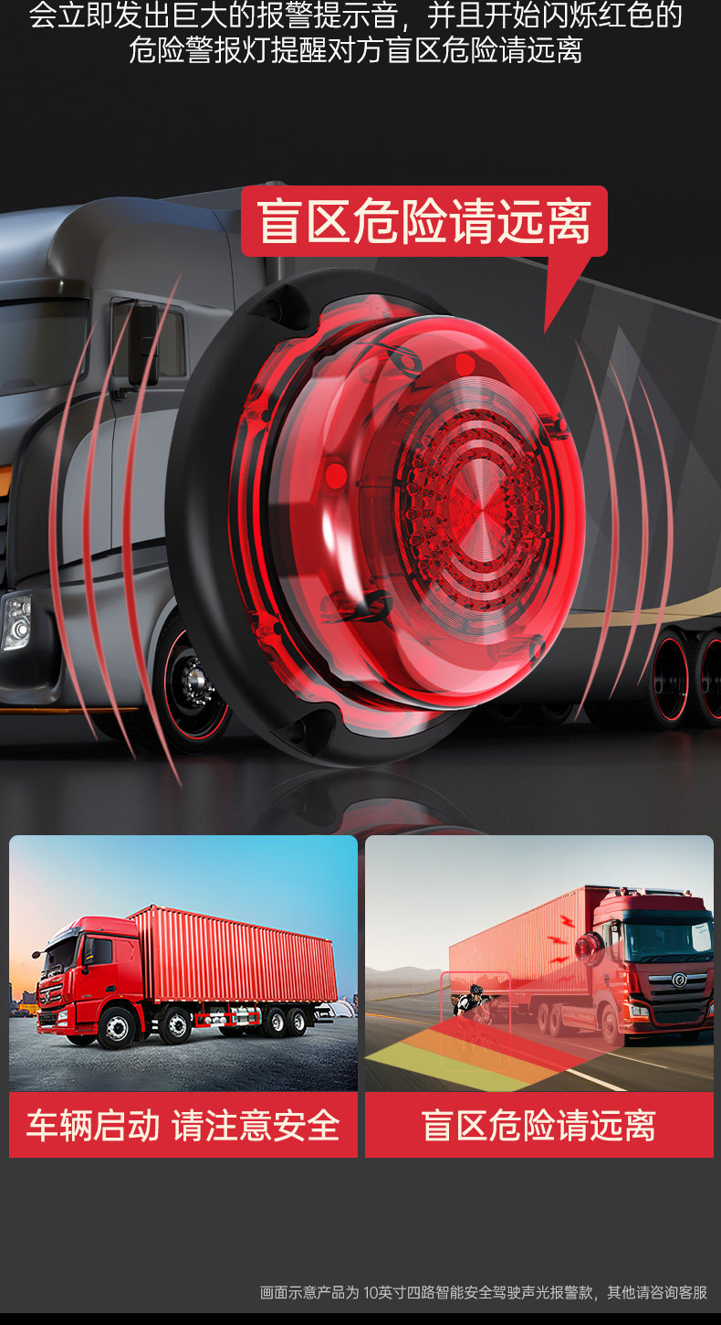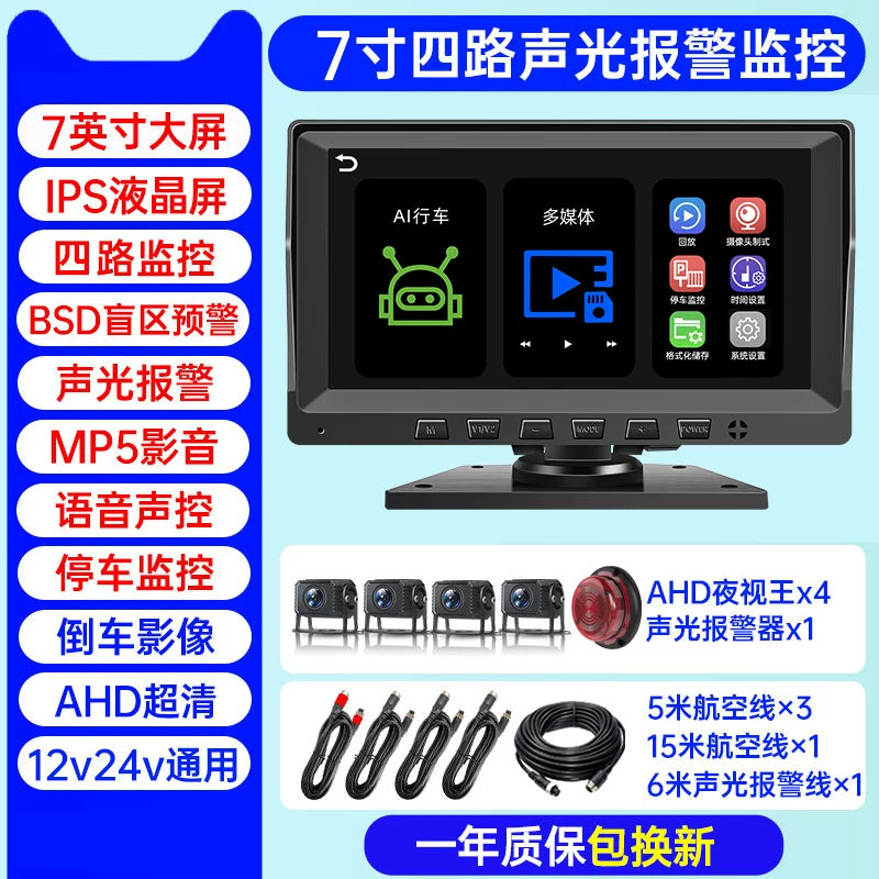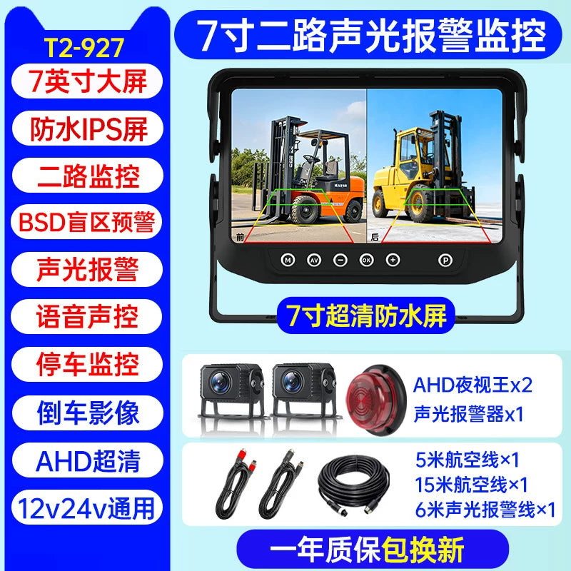 Səs və işıq siqnalizasiyaları, süni intellekt kor zona radar xəbərdarlıq sistemi, dörd kanallı monitorinq və geriyə çəkilmə kamerası ilə təchiz olunmuş yük maşını tablosuna.