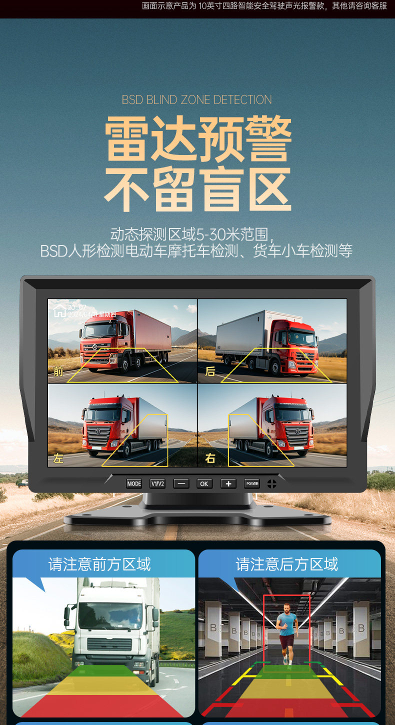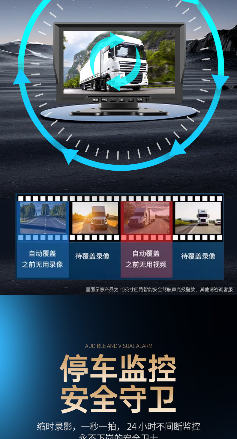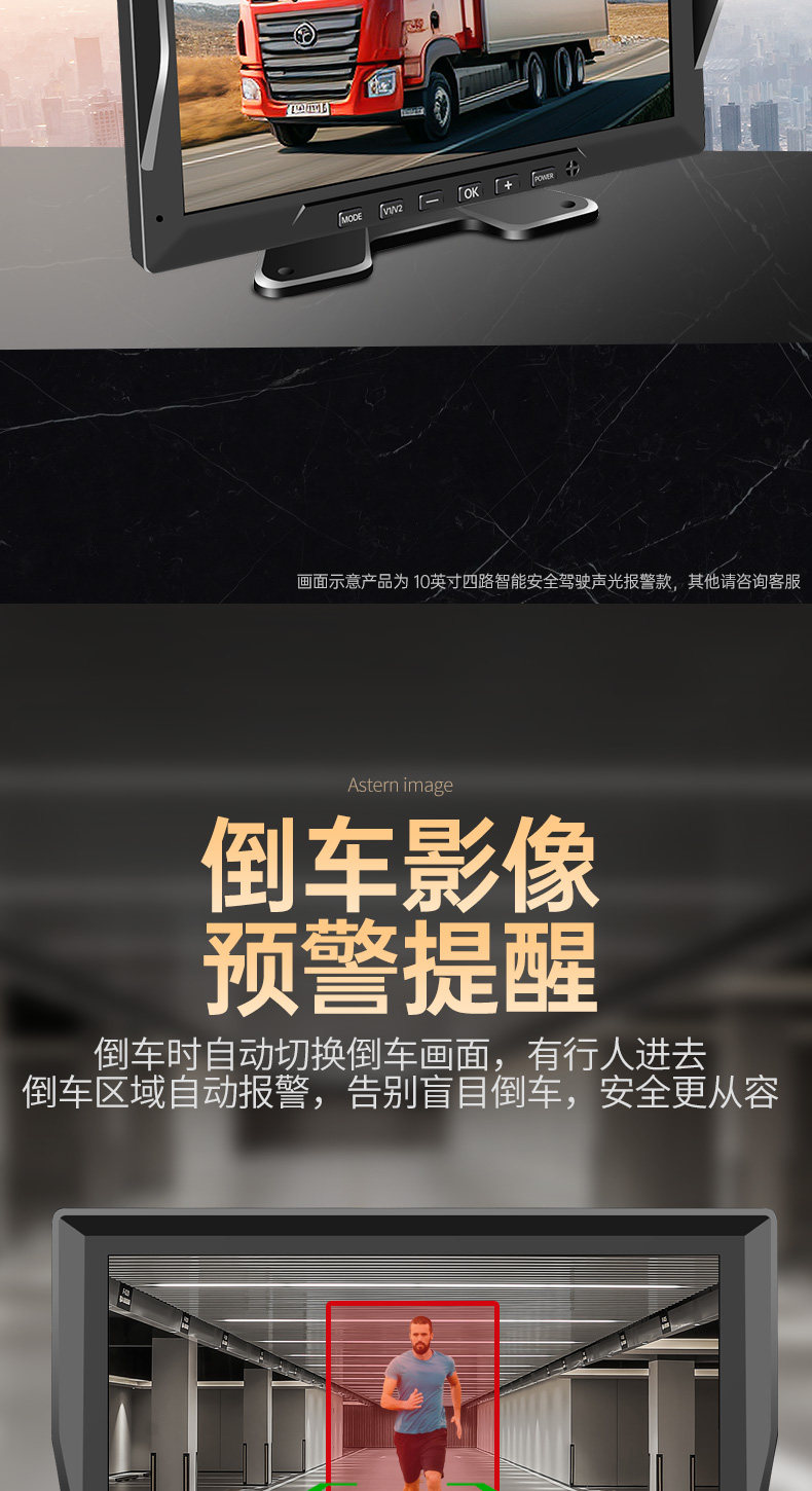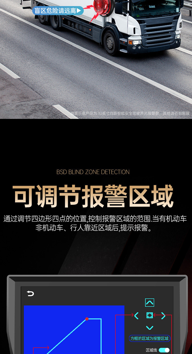 Səs və işıq siqnalizasiyaları, süni intellekt kor zona radar xəbərdarlıq sistemi, dörd kanallı monitorinq və geriyə çəkilmə kamerası ilə təchiz olunmuş yük maşını tablosuna.