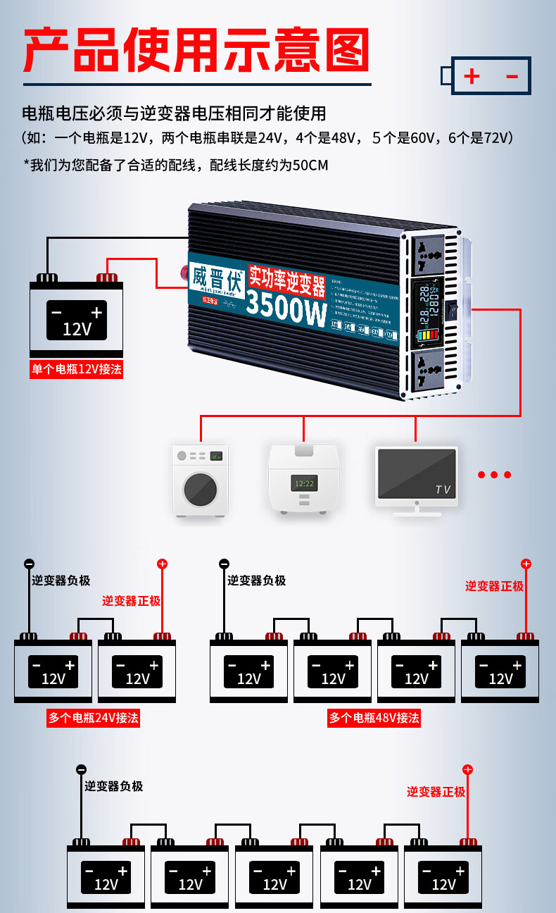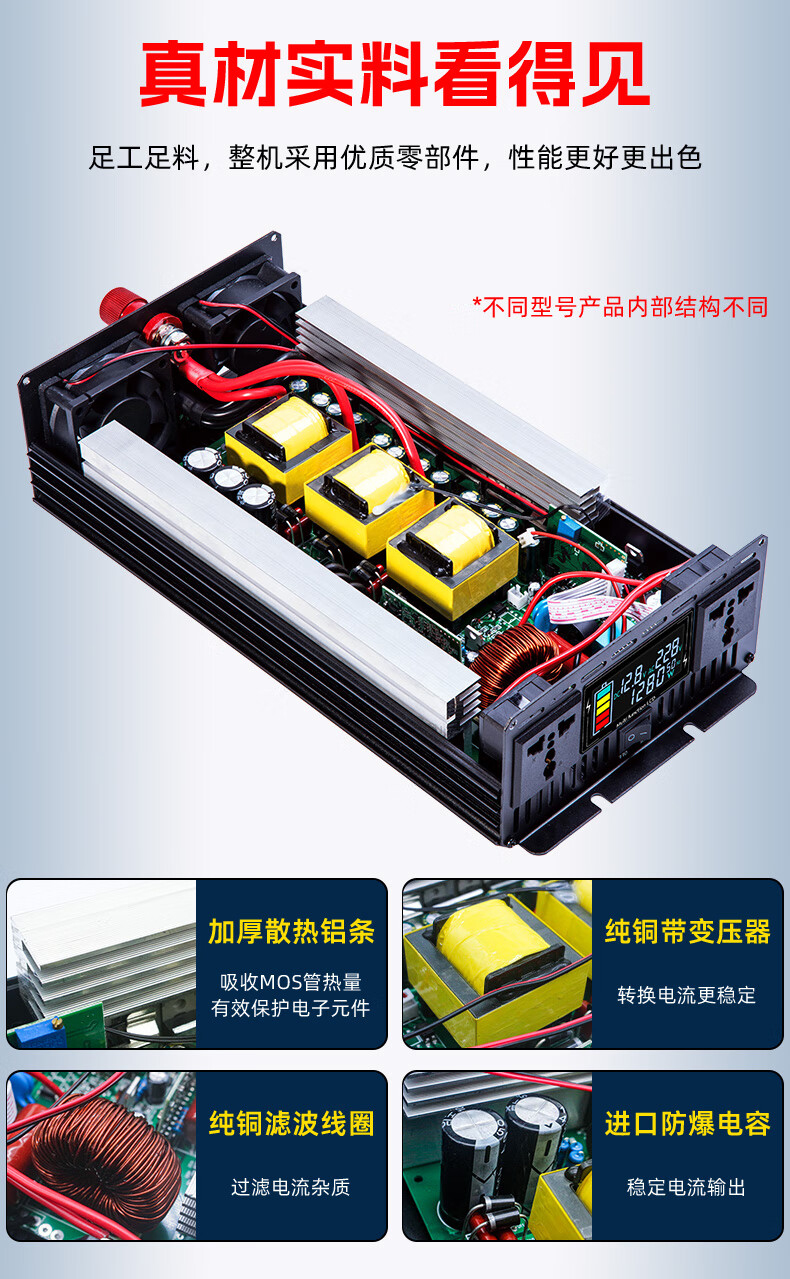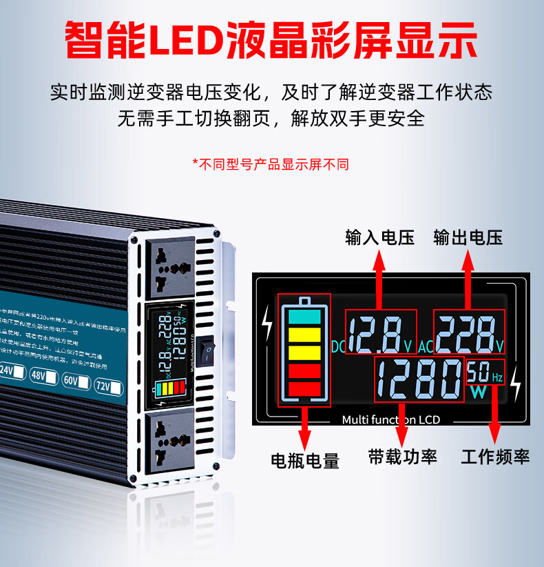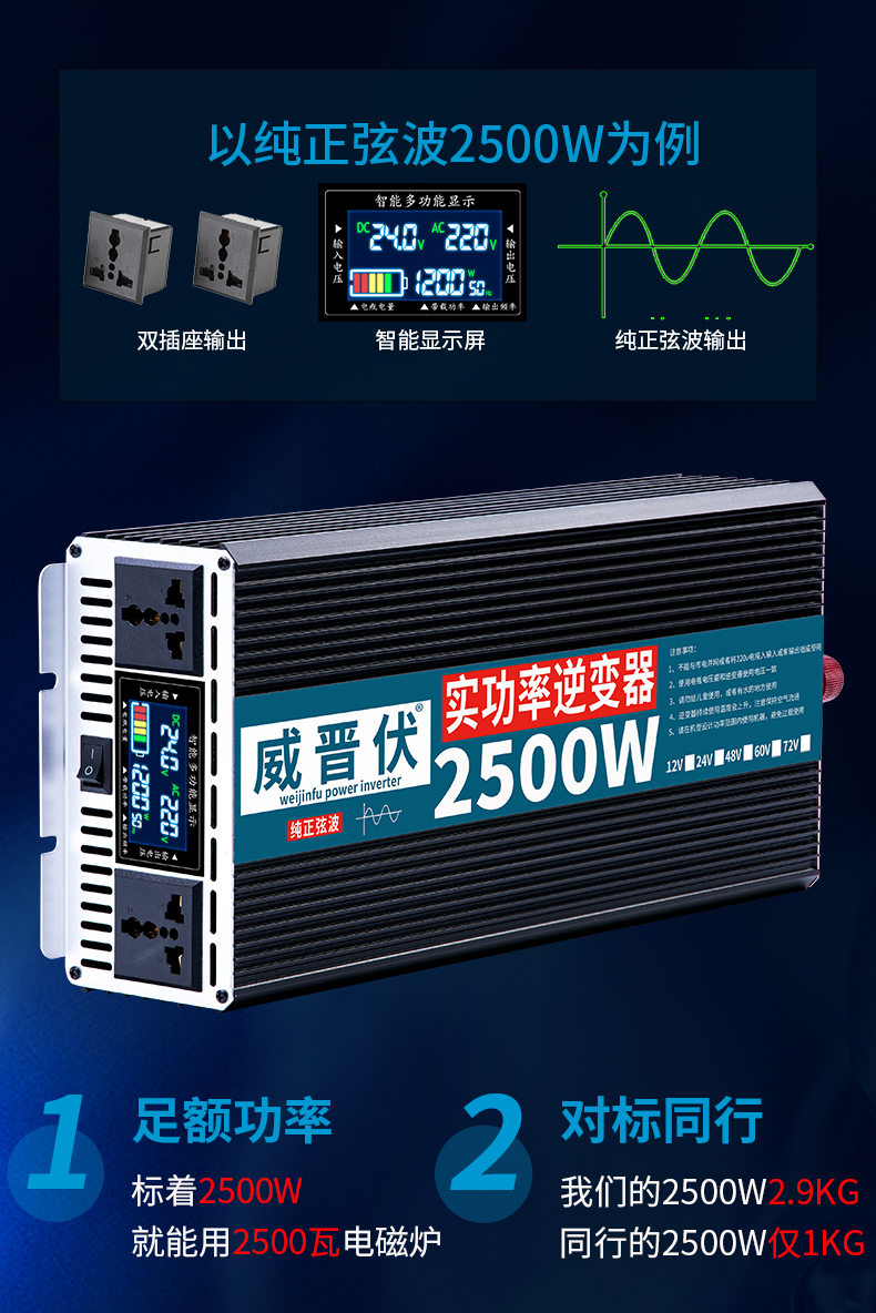 Saf Sinus Dalğası İnverteri 12v24v-dən 220V-ə qədər Avtomobilə quraşdırılmış Yüksək Güclü 48 V60v72 Neytral Əks Gərginlik