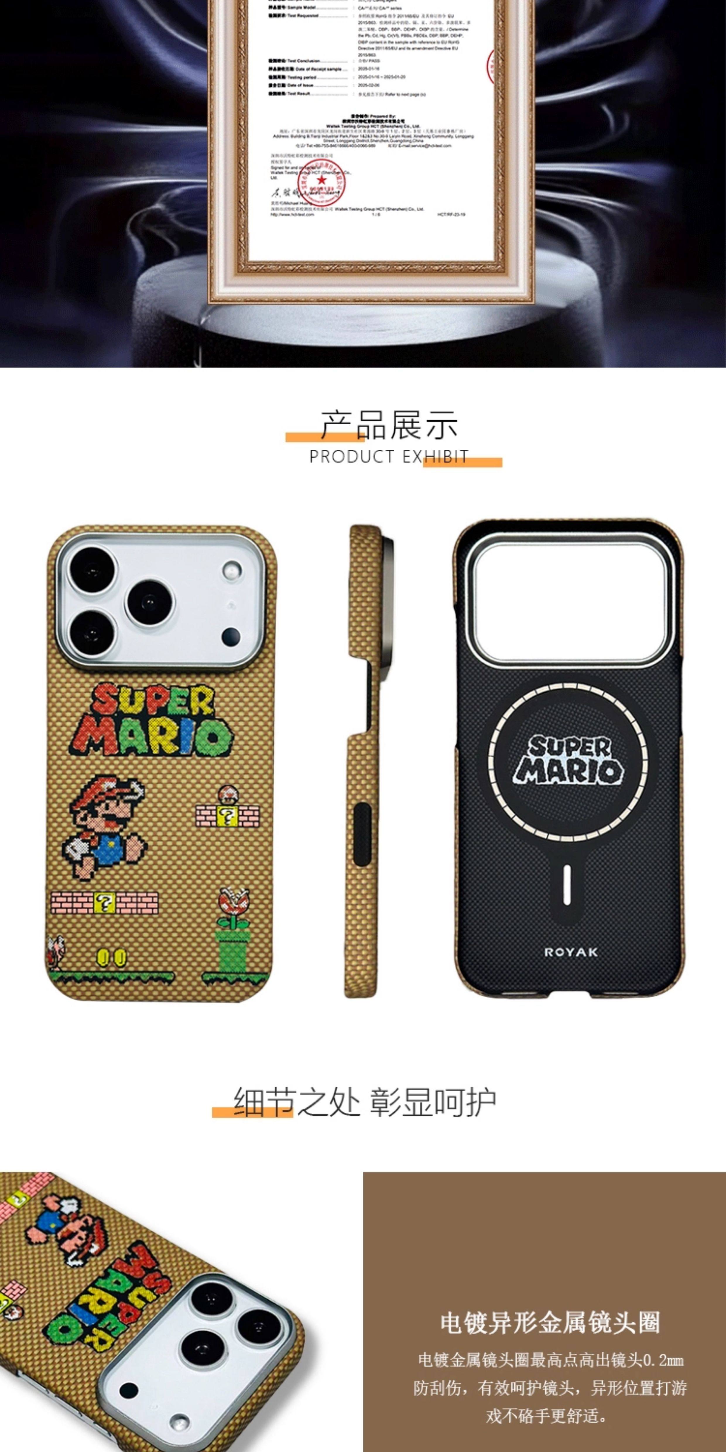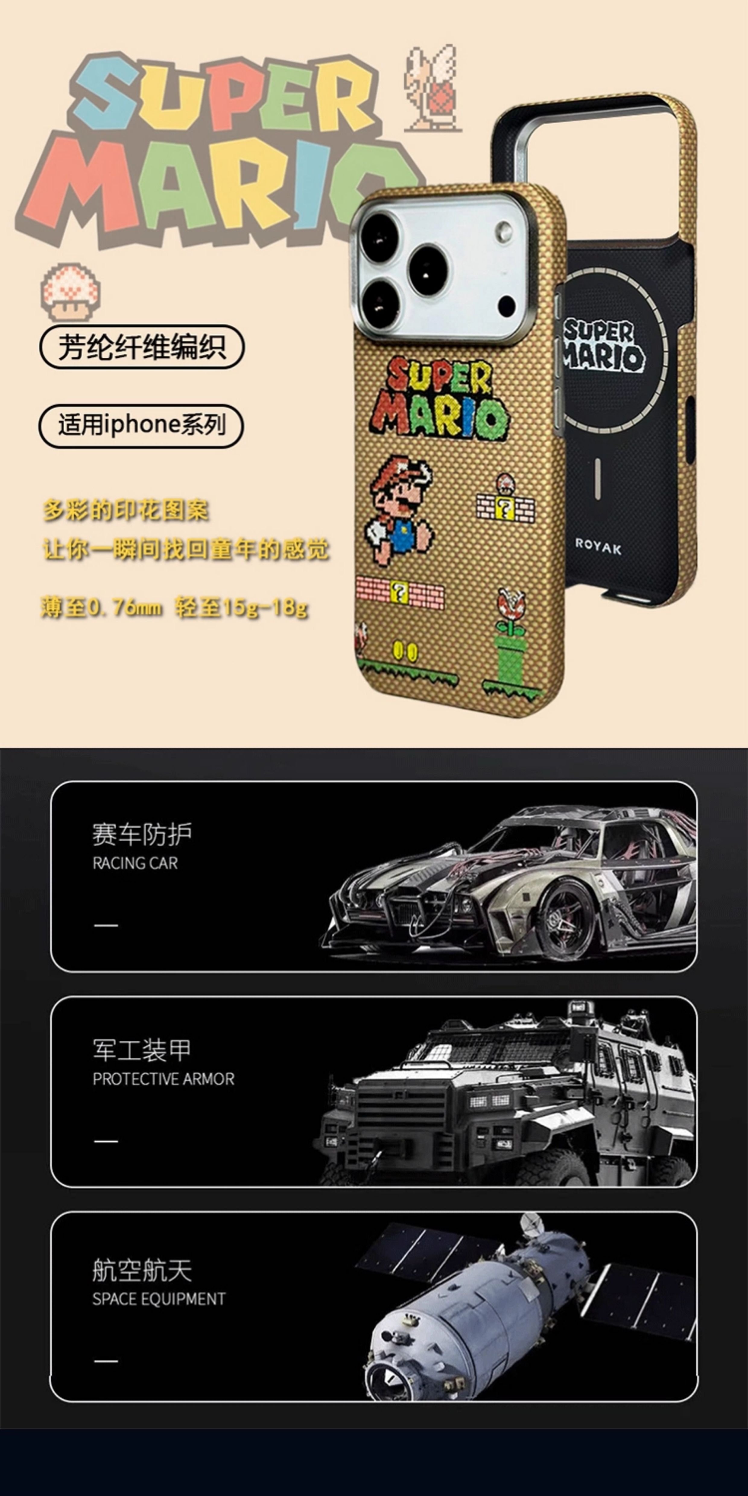 Sail Wings Mario iPhone 17 Pro Max Kevlar Telefon Qutusu Oyun Stilində Super Mario Daxili MagSafe Maqnit Düz Toxunuşlu Aramid Lifli Apple 16 Pro Max