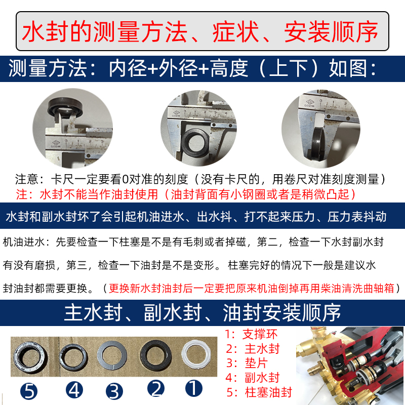 Ümumi təyinatlı rezin əsas və köməkçi su möhürü 1812 ultra yüksək təzyiqli təmizləyici maşın avtomobil paltaryuyan maşınının nasos başlığı Əsas su möhürünün yağ sızdırmazlığının təmir dəsti