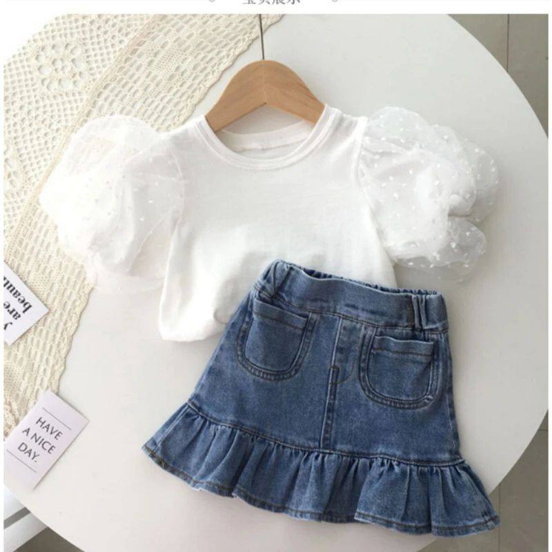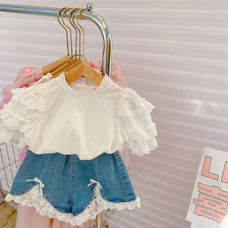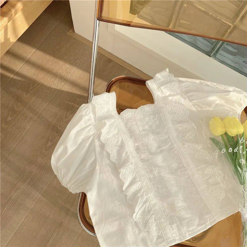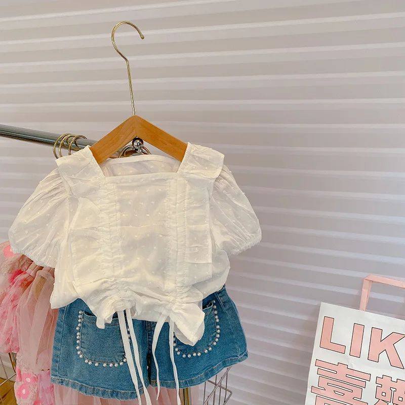 Uşaq Geyimləri Dəsti Yeni Yay Qızlar üçün Moda Krujeva Bluz Top &