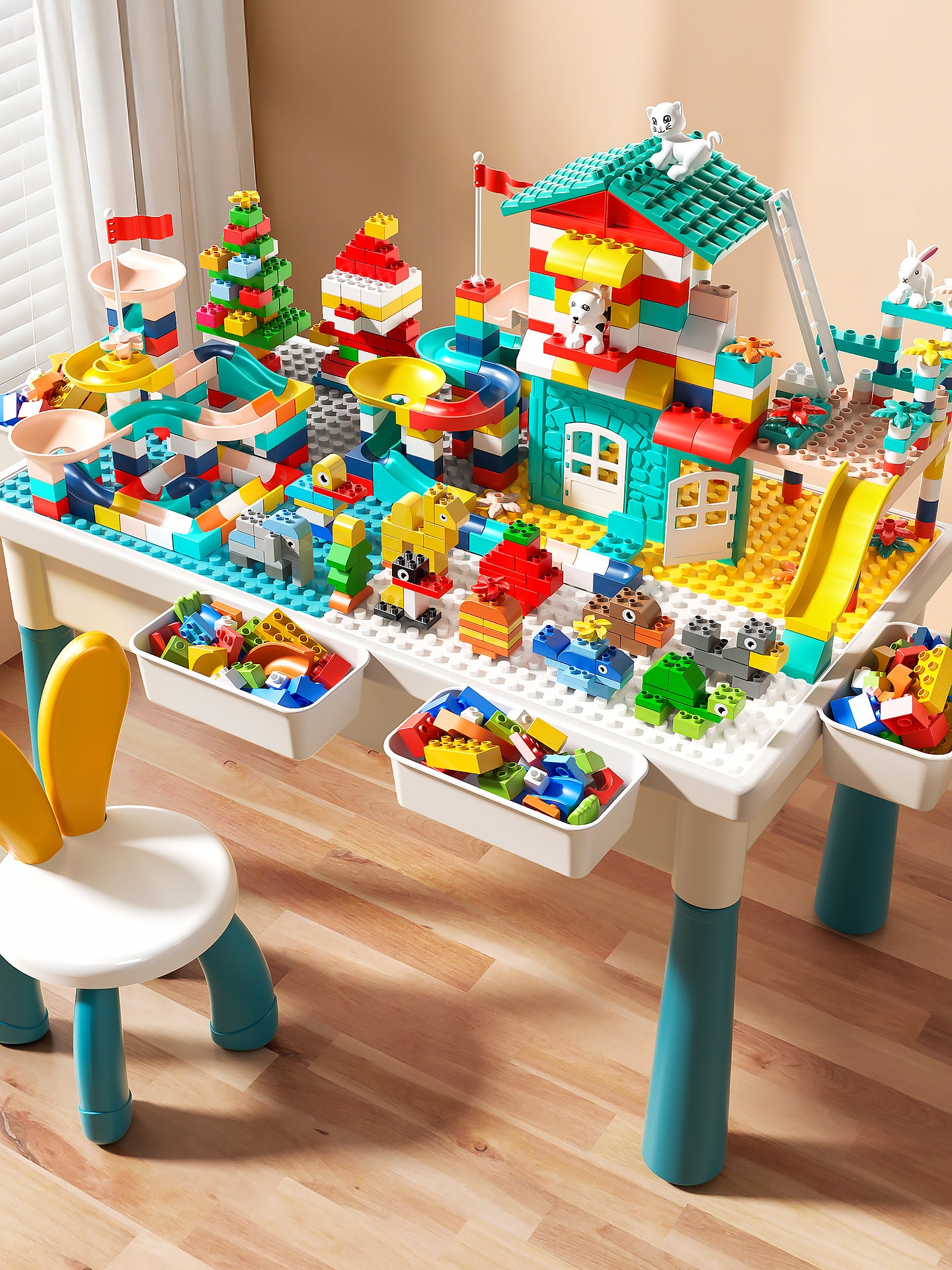 | Uşaq tikinti bloklarından ibarət masa, oğlanlar, qızlar, körpələr və körpələr üçün, təhsil, 6 yaşlı uşaqlar üçün çoxfunksiyalı, böyük hissəciklərdən ibarət, yığma dəsti.