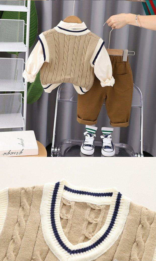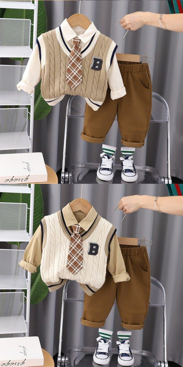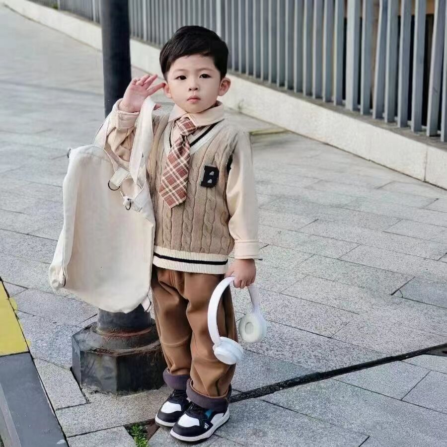Uşaq yaz və payız geyim dəsti, uşaq qalstuku, preppy stili, uzunqol körpə toxunma jileti, centlmen kostyumu üç hissəli dəst