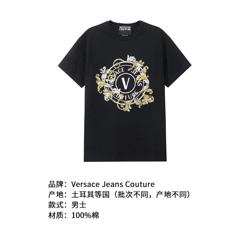 VJC Versace Yeni Kişilər üçün Pambıqdan Qısa Qollu T-Shirt 78GAHC01 CJ01C