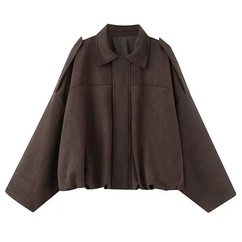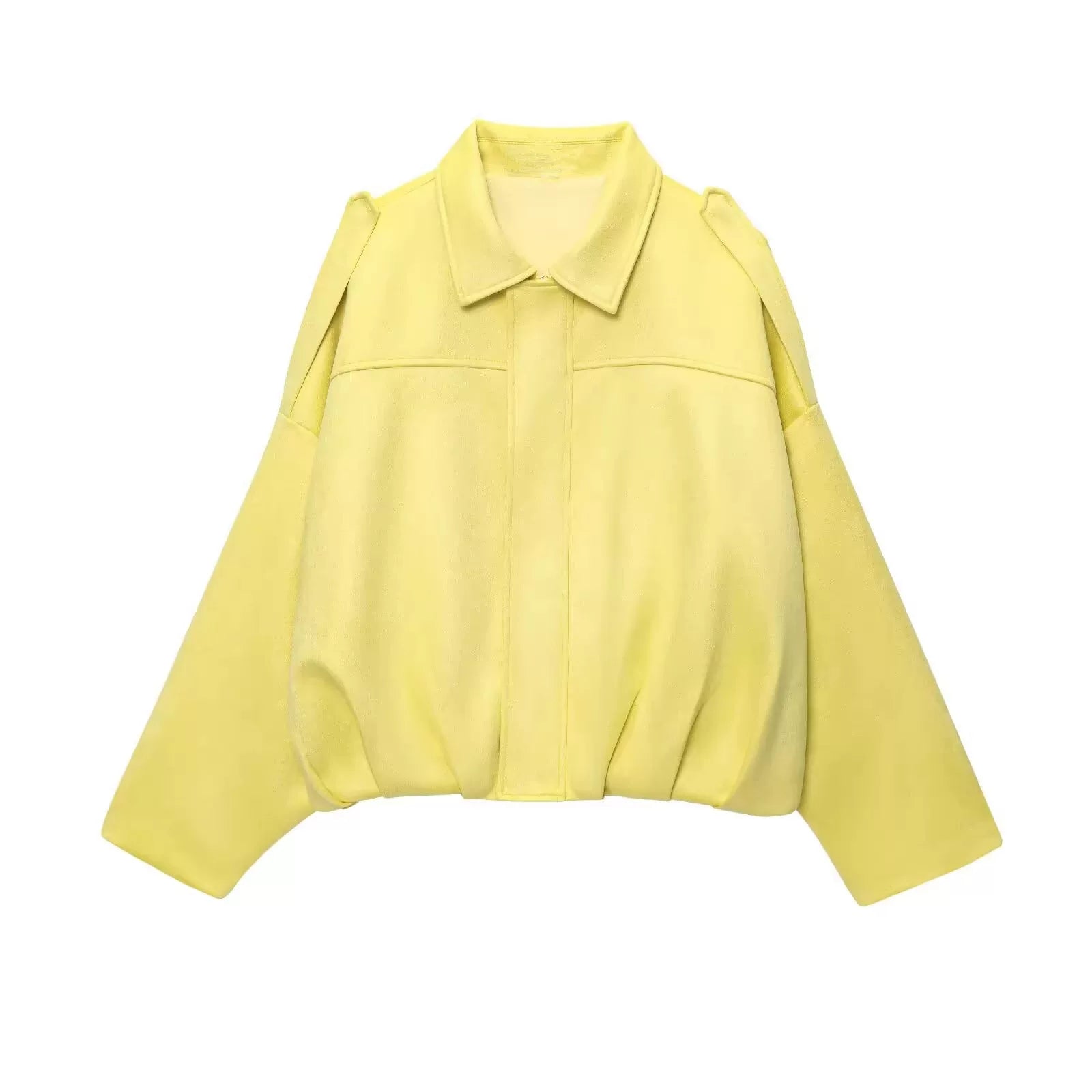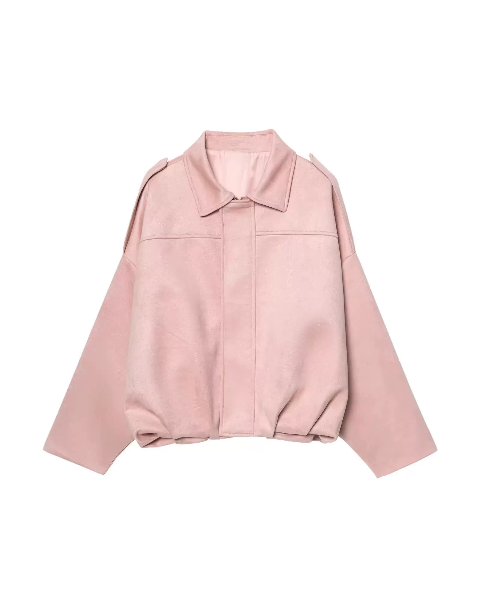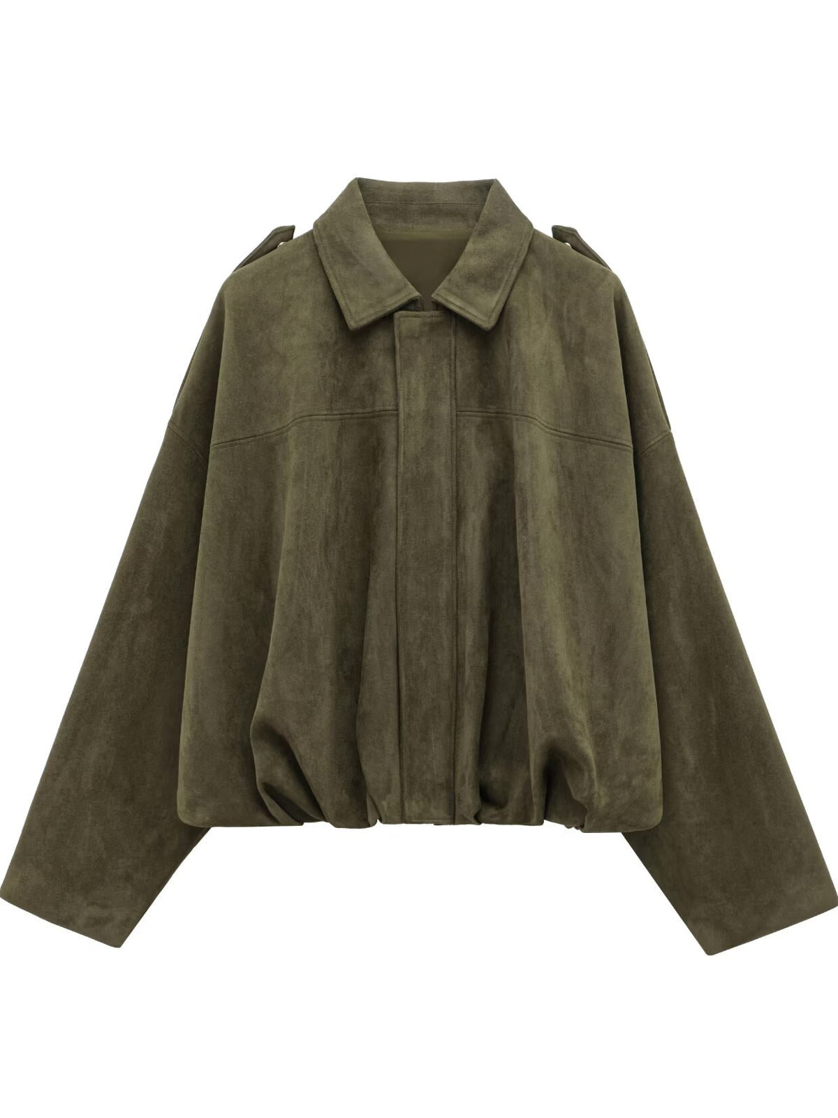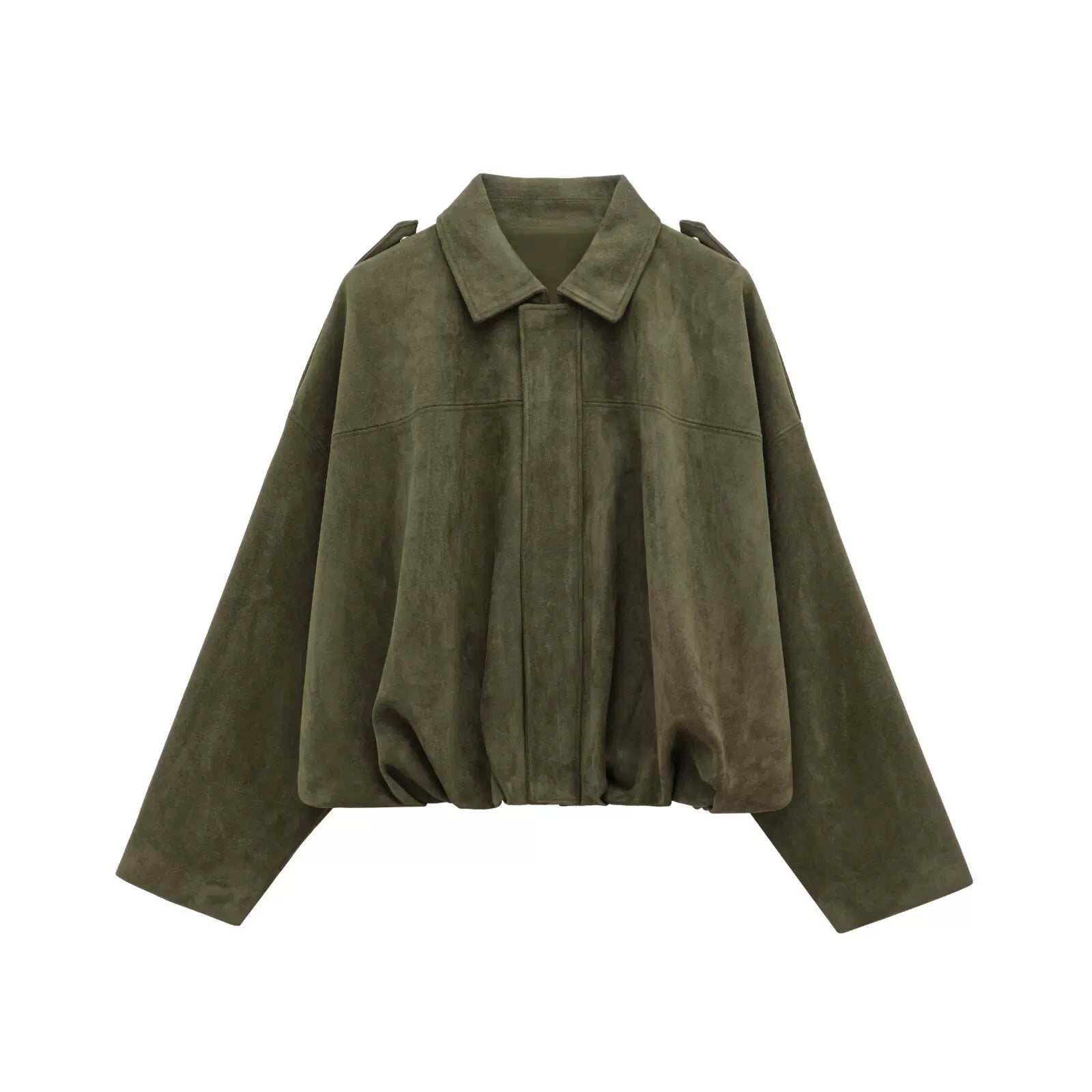 WMXZ Yaz Yeni Gəlişi Qadınlar üçün Batwing Qollu Yaxalı Zamşa Teksturalı Bomber Gödəkçə 4344155