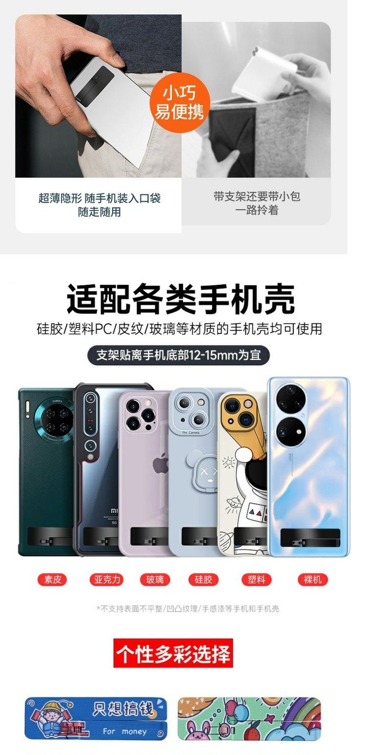 Yapışqanlı arxalığı, görünməz metalı olan yaradıcı masaüstü telefon dayağı, möhkəm, ultra nazik, çoxfunksiyalı, qatlanan, portativ, istifadəsi asan, yeni stil, şirin cizgi filmi cütlük dayağı, kişilər və qadınlar üçün mini üzük tutacağı.