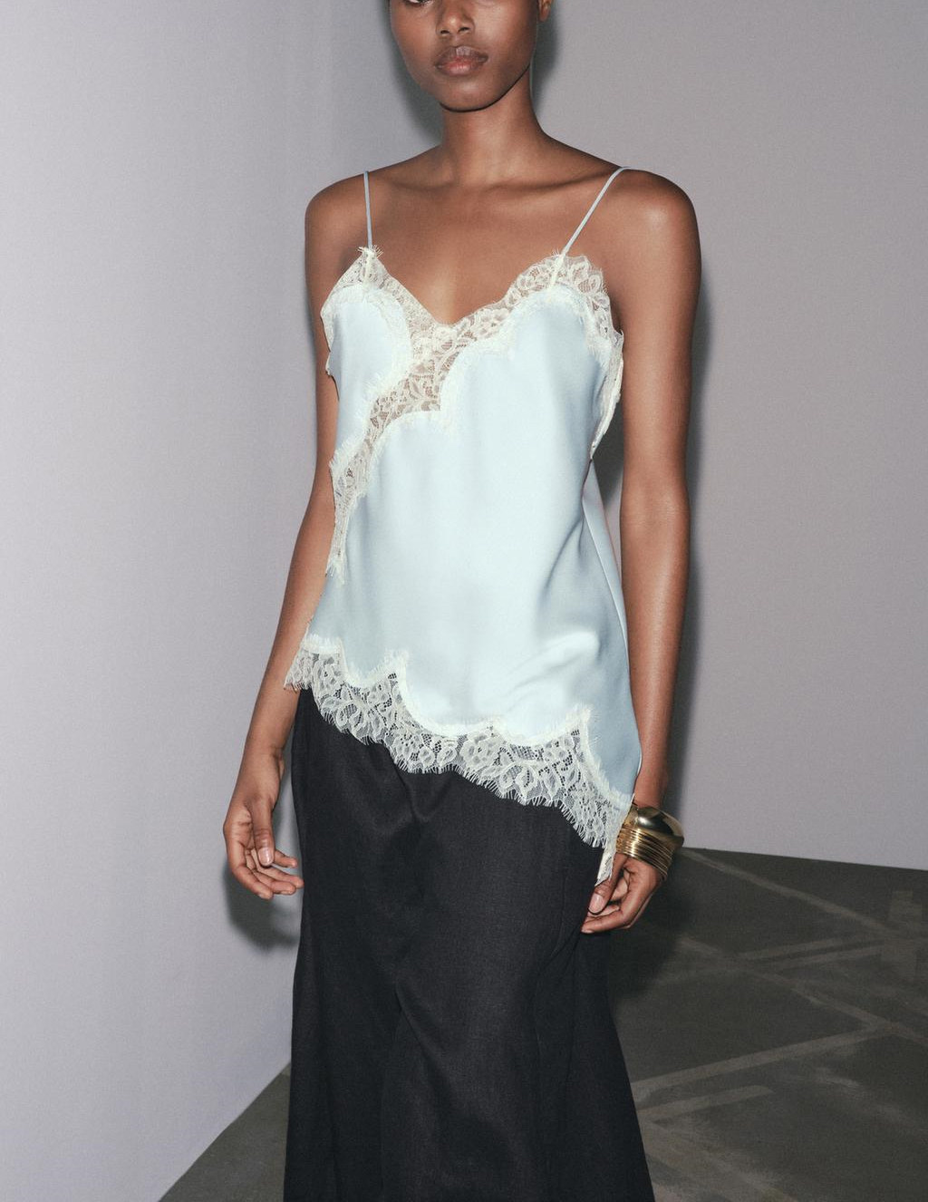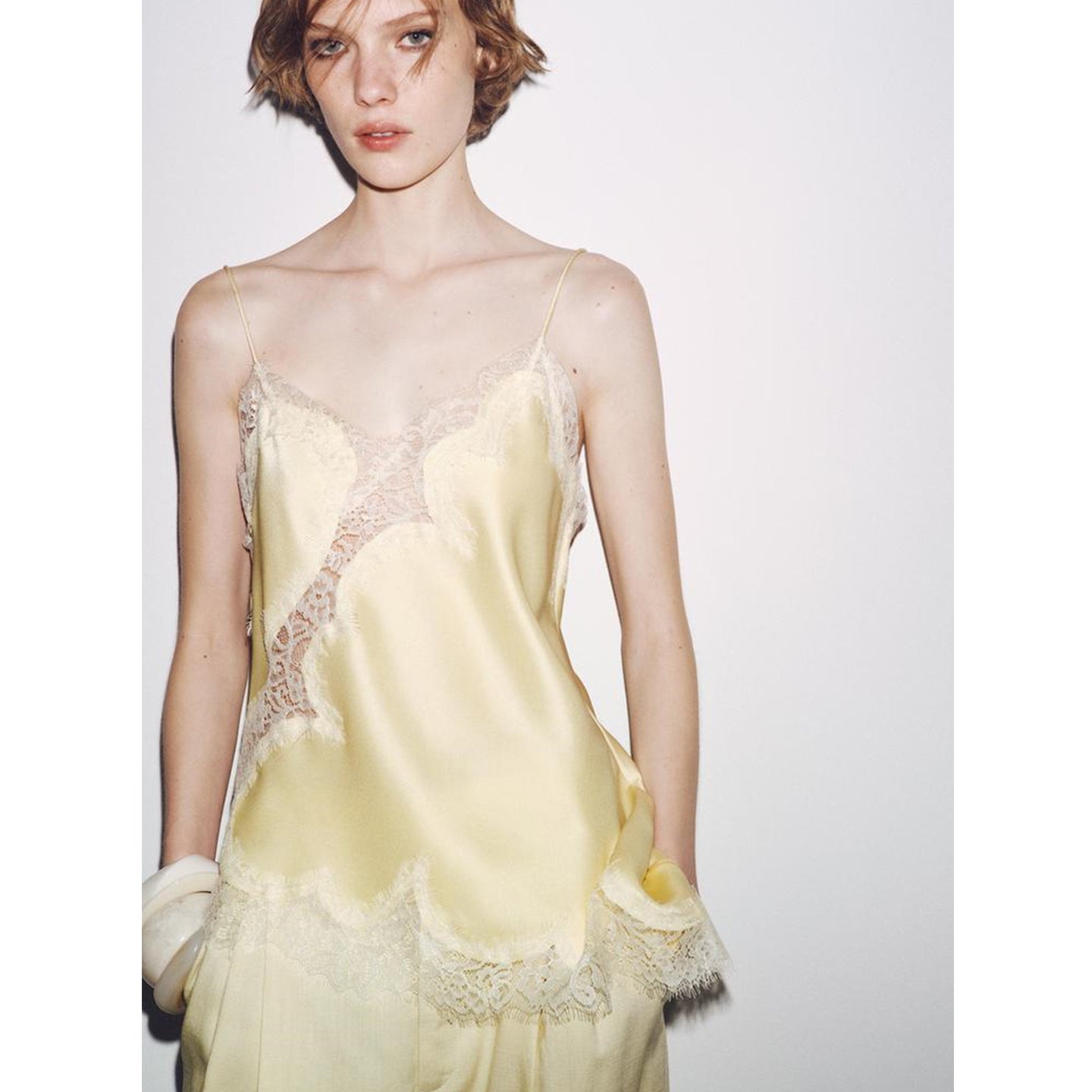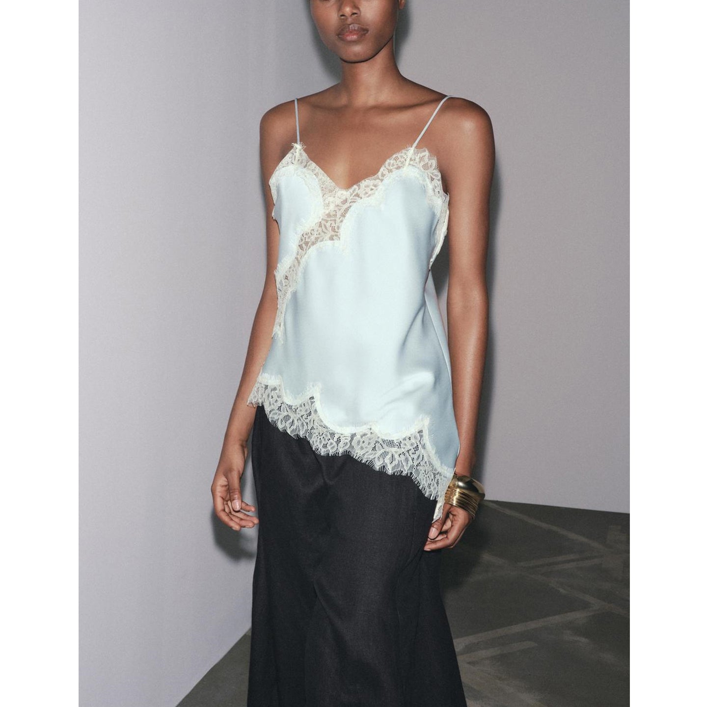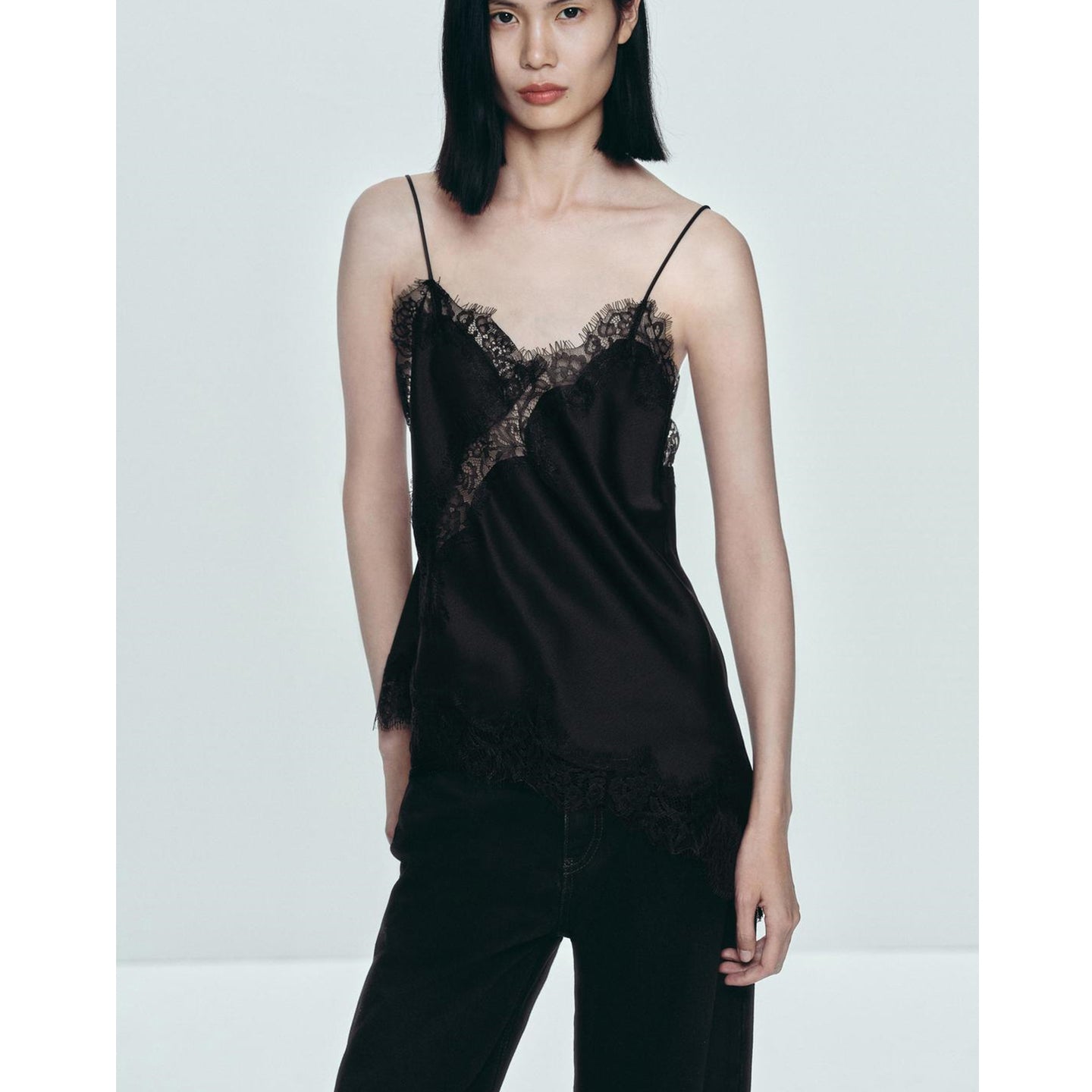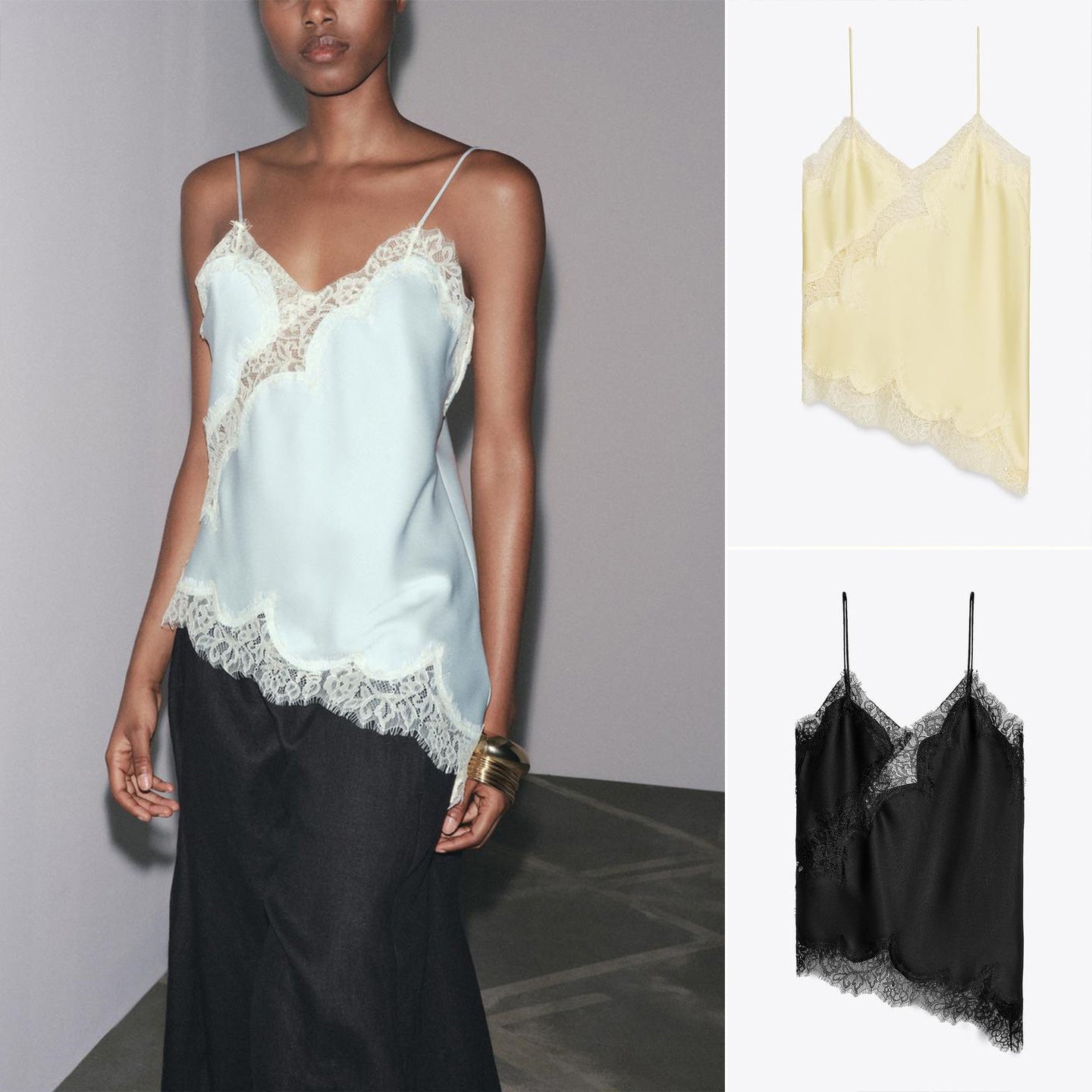 Yay Yeni Gəlişi Qadınlar üçün Gündəlik V-Yaxalı Asimmetrik Kənarlı Krujeva ilə Bəzədilmiş Alt Paltar Topu 5919105