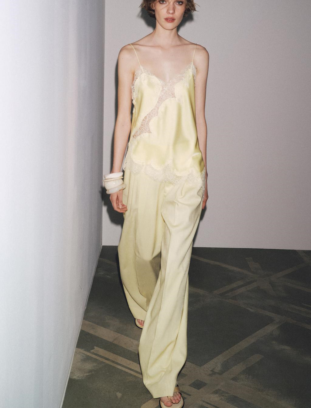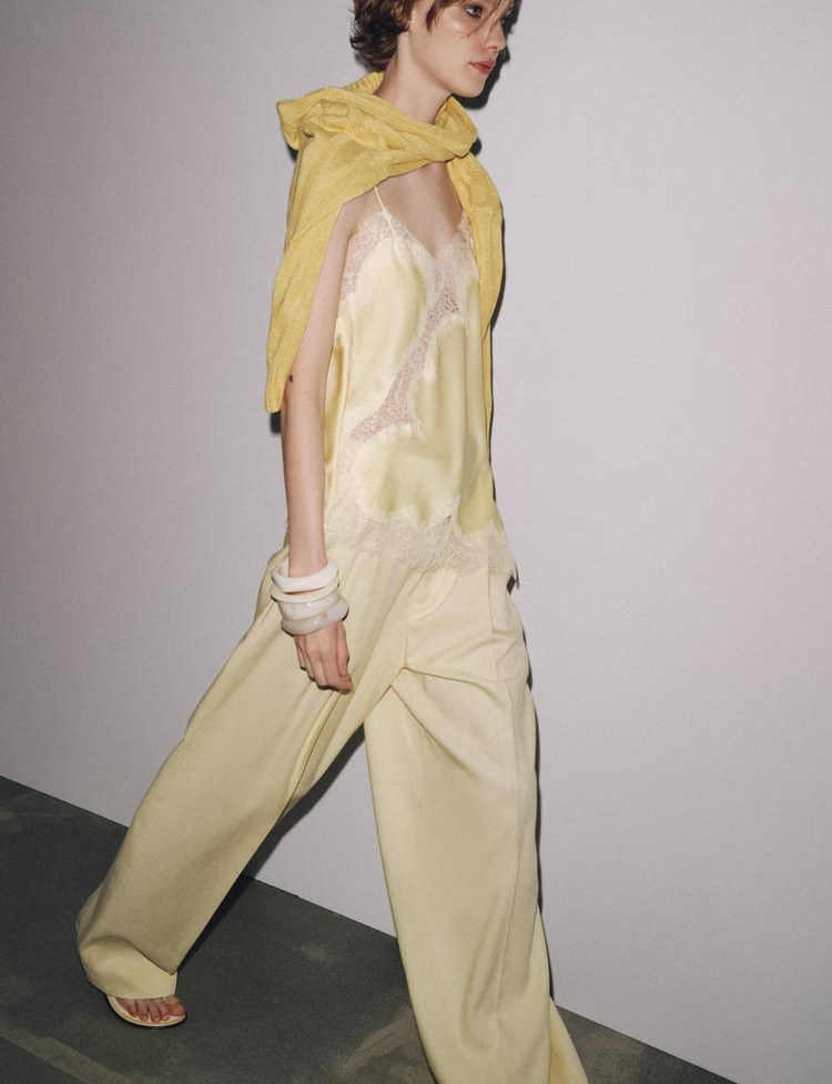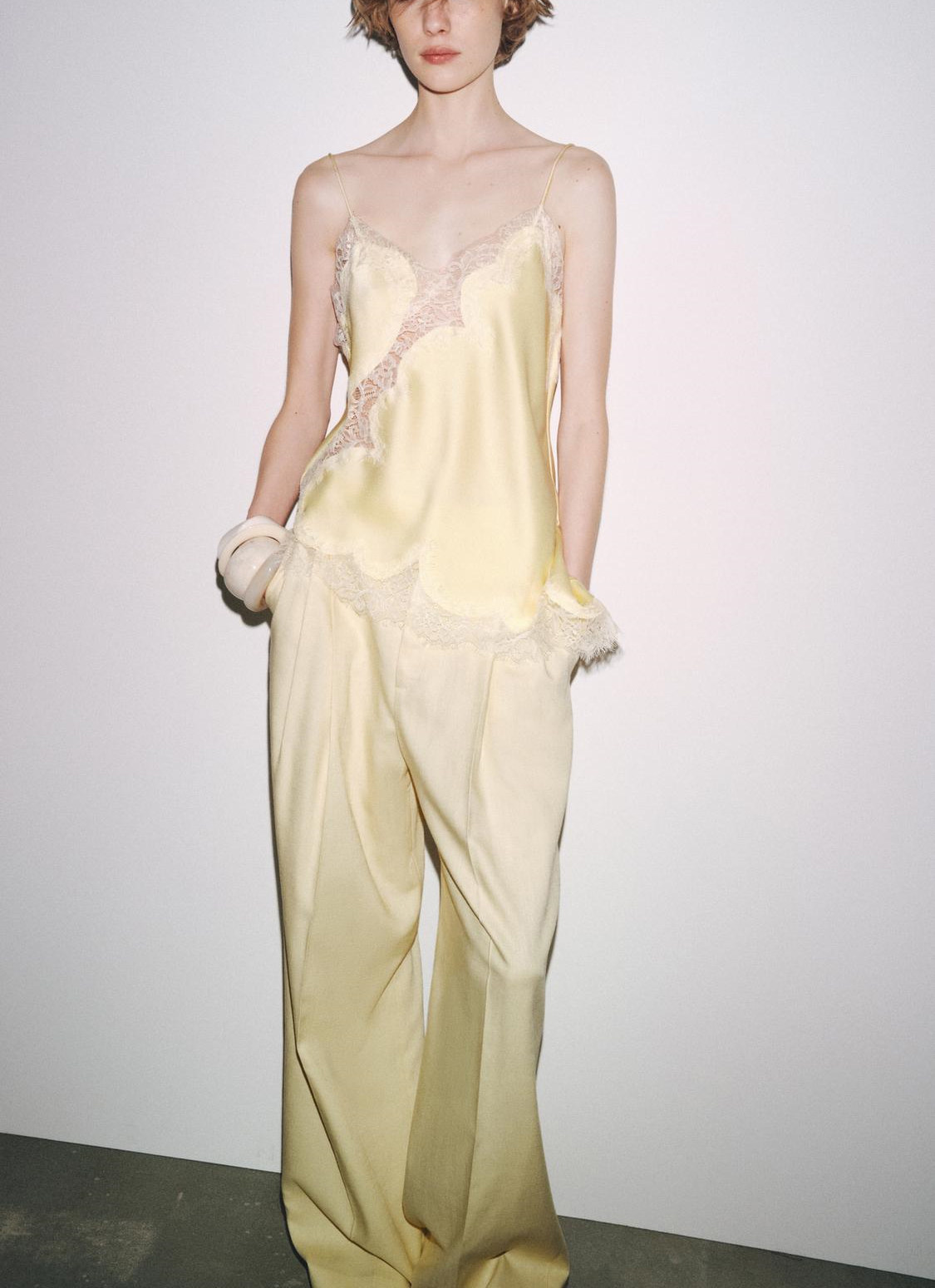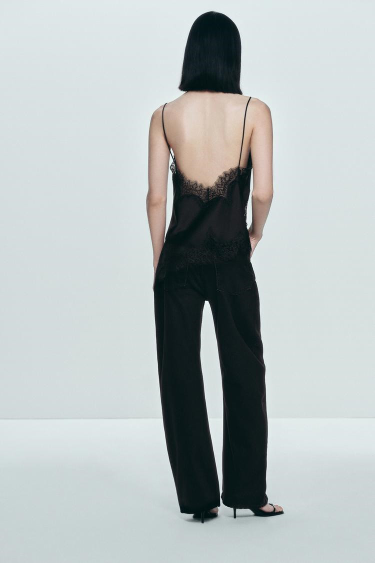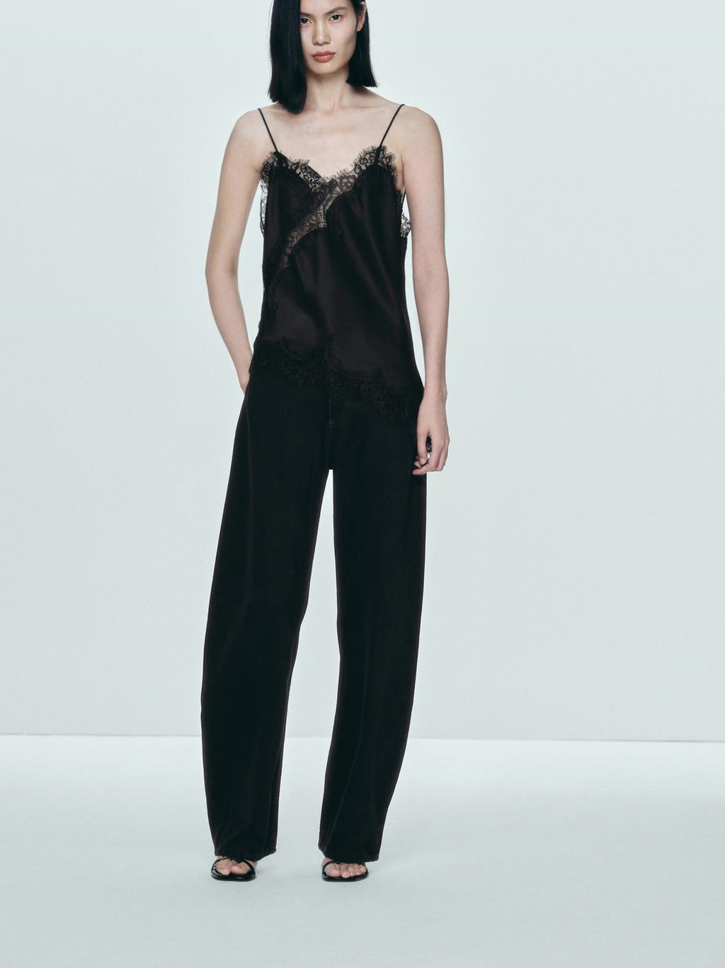 Yay Yeni Gəlişi Qadınlar üçün Gündəlik V-Yaxalı Asimmetrik Kənarlı Krujeva ilə Bəzədilmiş Alt Paltar Topu 5919105