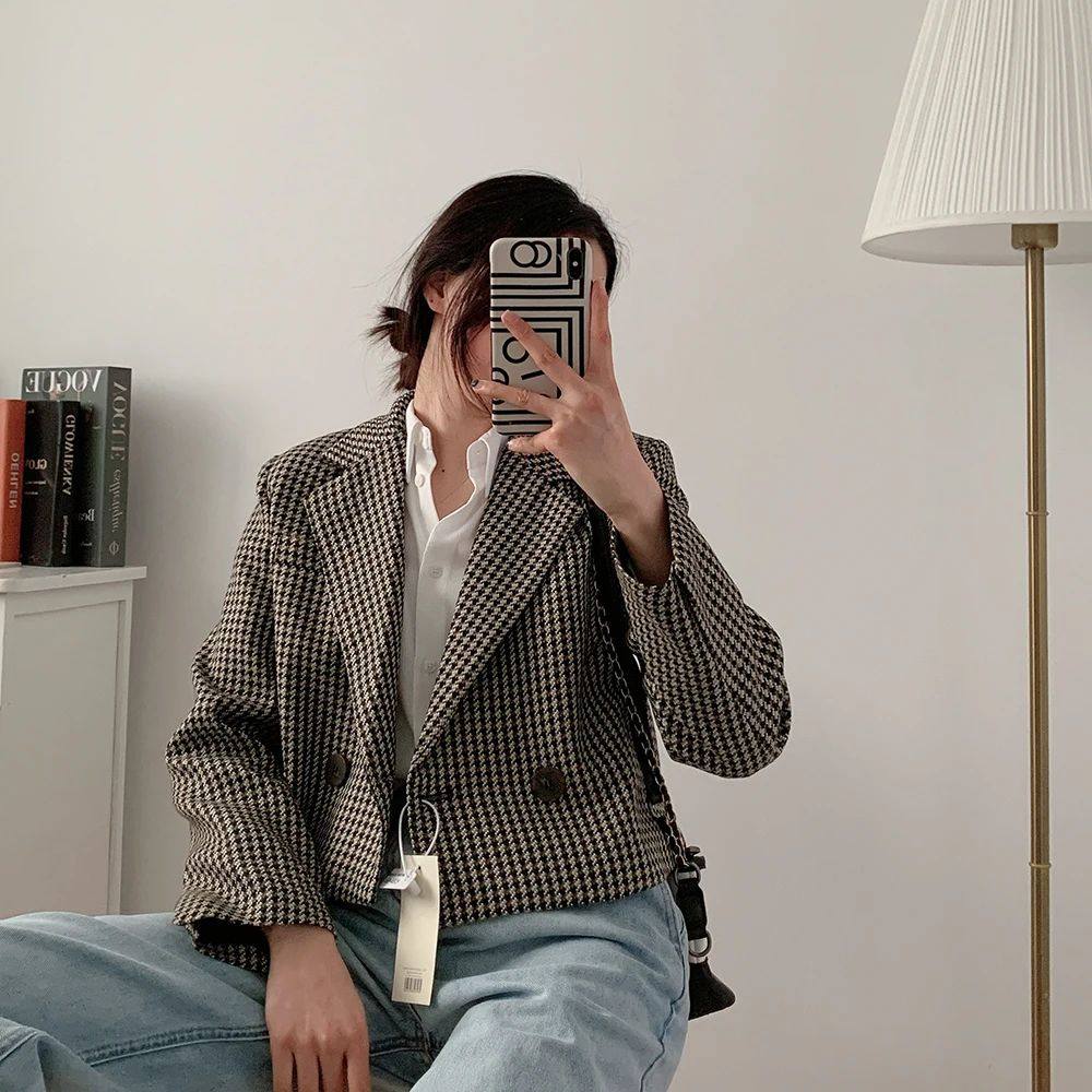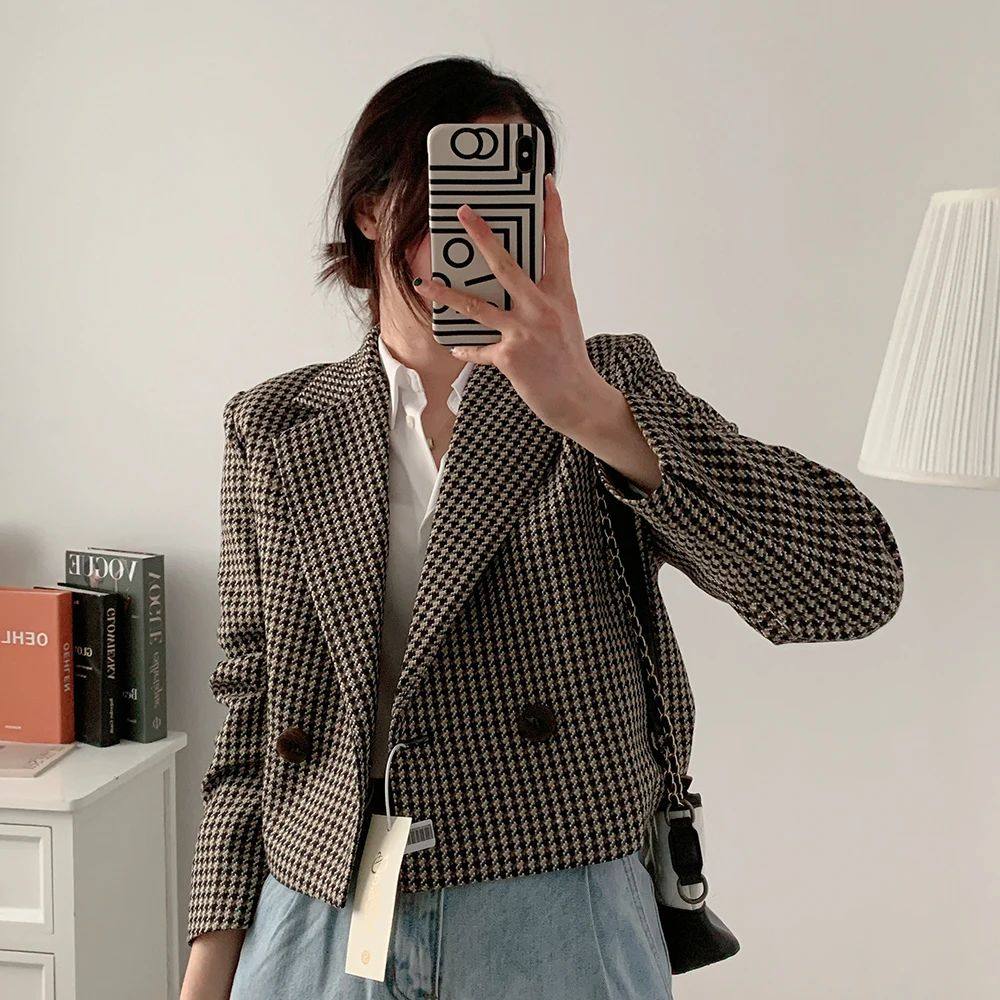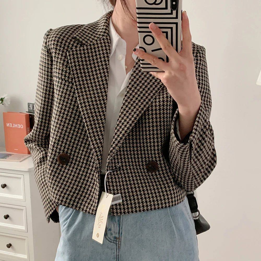Yaz-Payız Qadınlar üçün Vintage Damaged Blazer Top Chic Ele