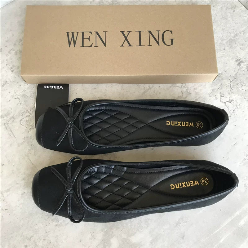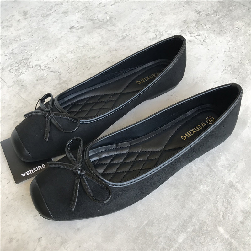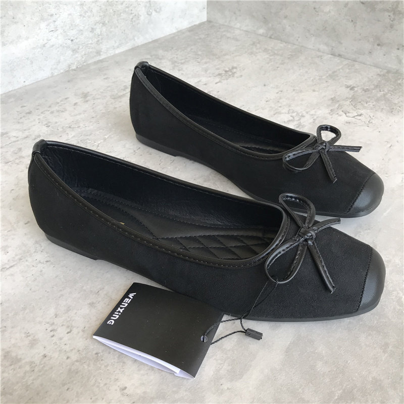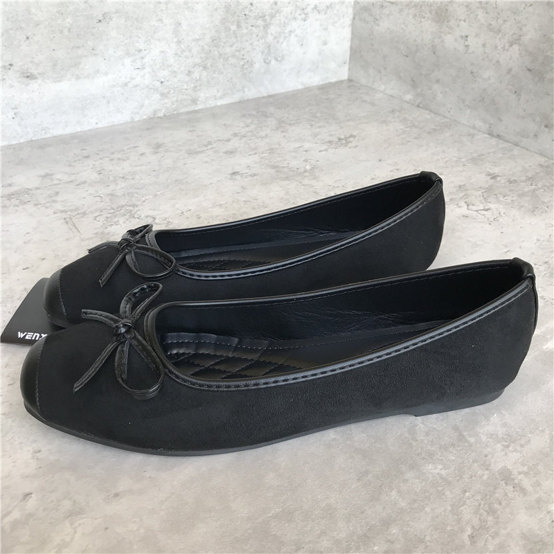 欧洲外贸新款四季鞋子女士方头瓢鞋软底平底孕妇鞋蝴蝶结猪嘴单鞋