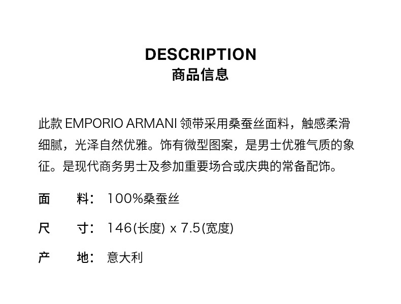 [Yeni il hədiyyəsi] EMPORIO ARMANI Kişi İpək Rəsmi Qalstuk (Payız/Qış Yeni Gəlişi)
