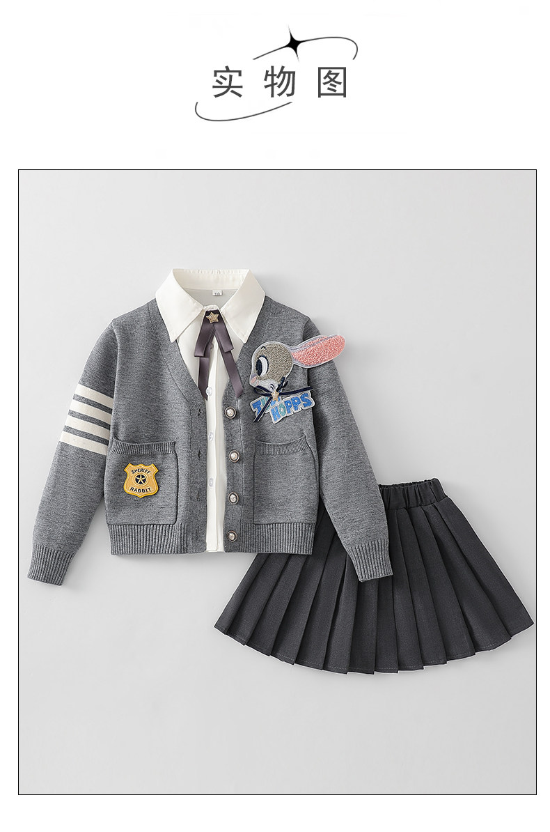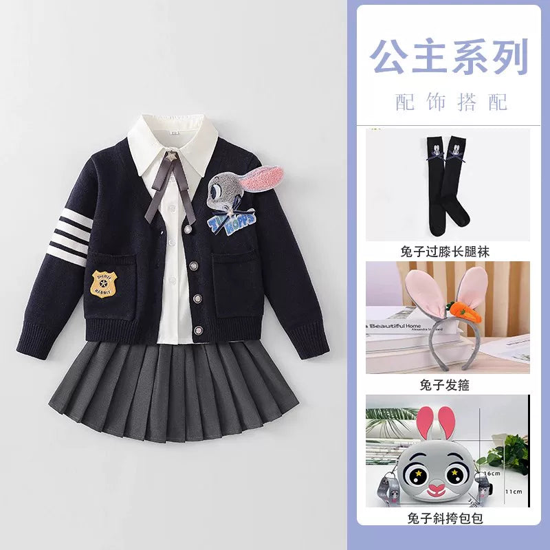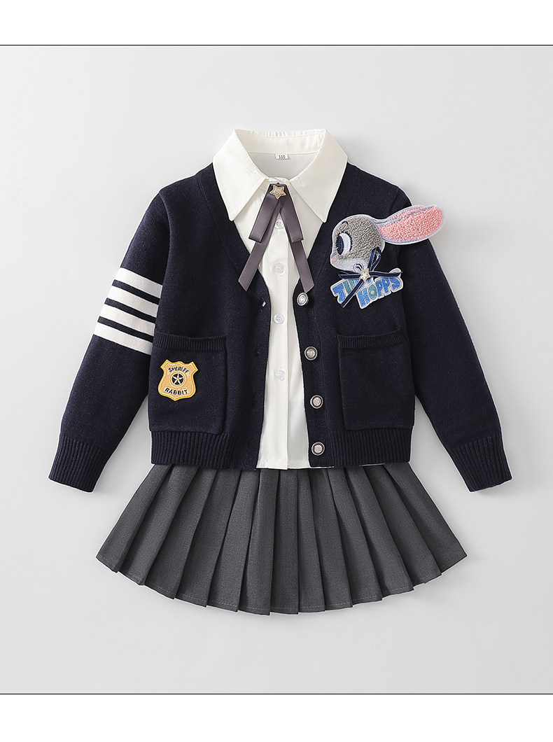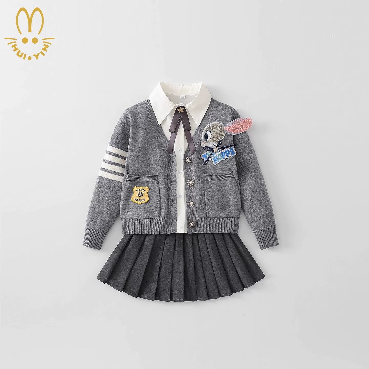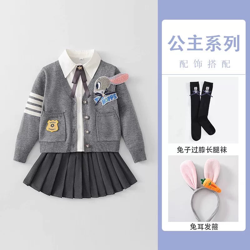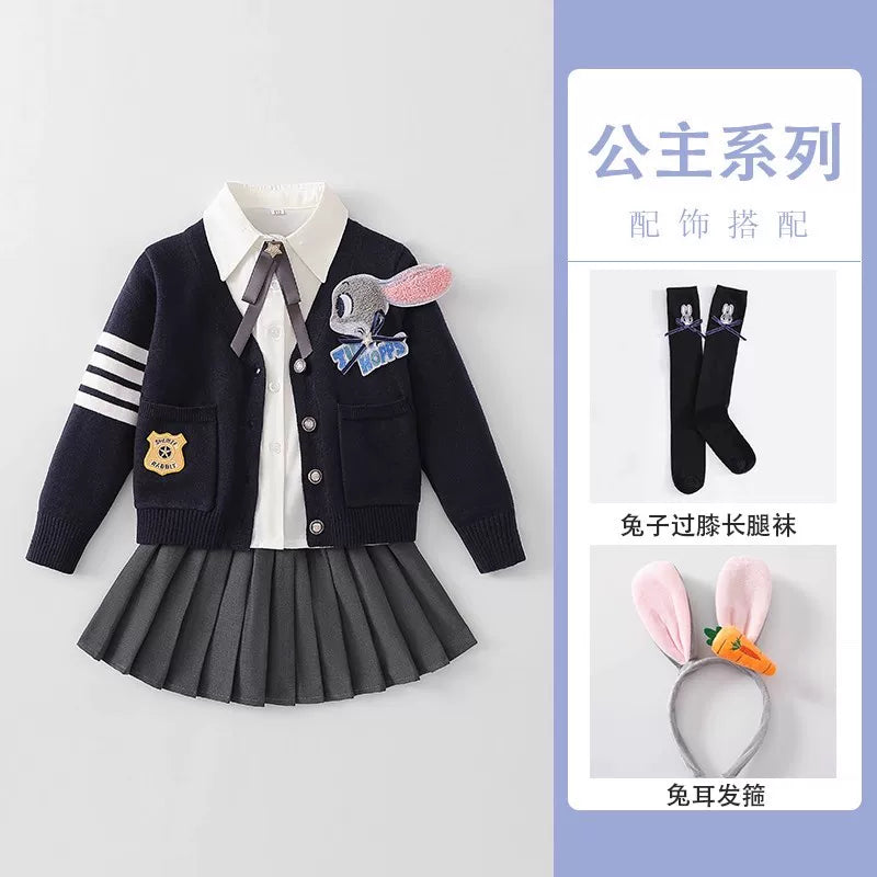 Yeni payız üslubunda qızlar üçün dovşan polis məmuru sviteri üç hissəli dəst, JK ətəyi, dəbli payız və qış uşaq ad günü geyimləri