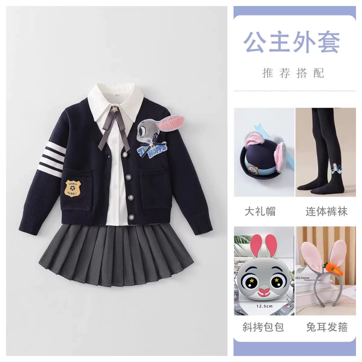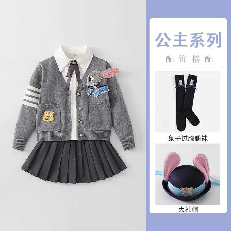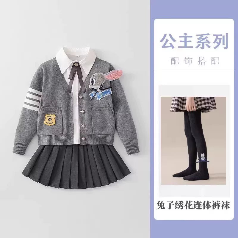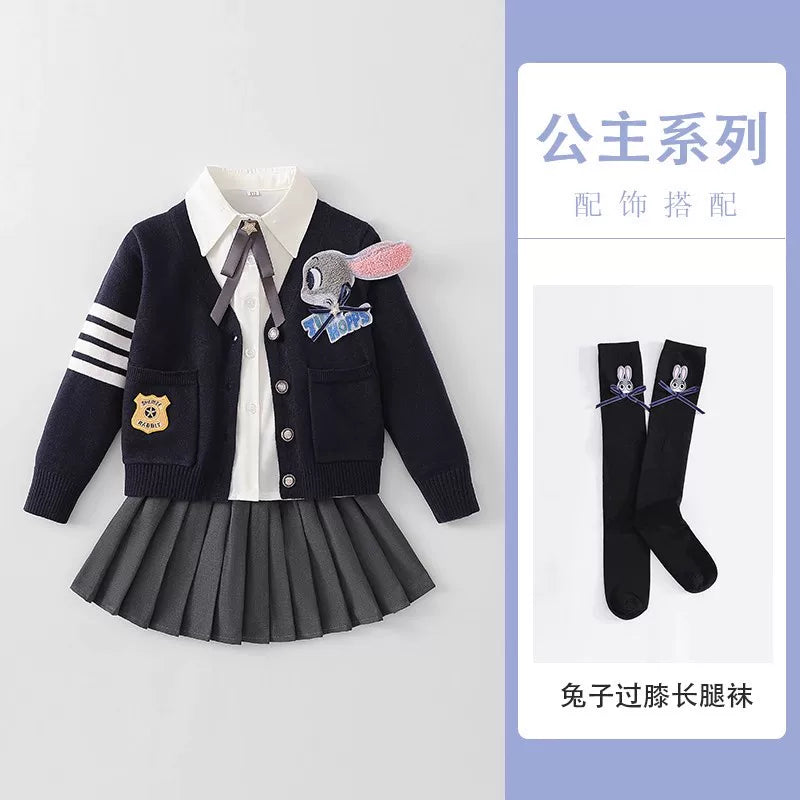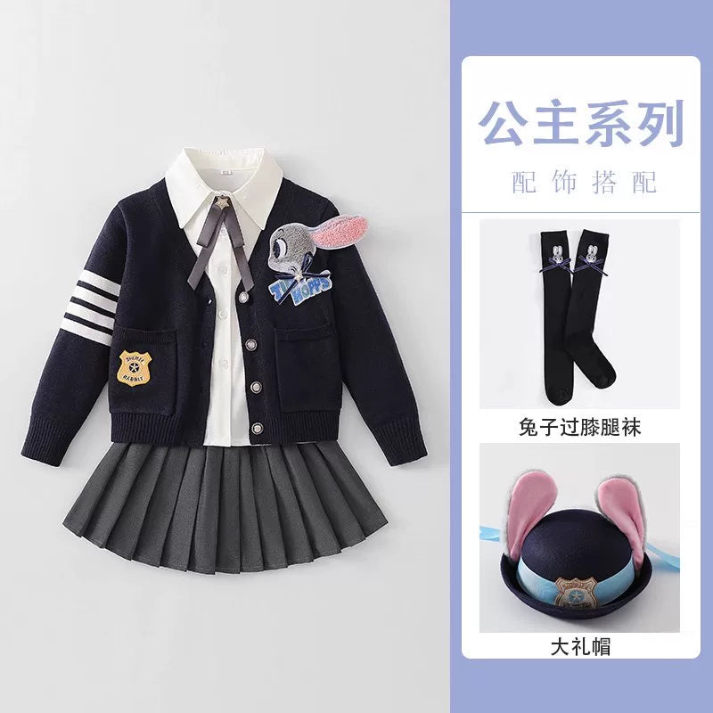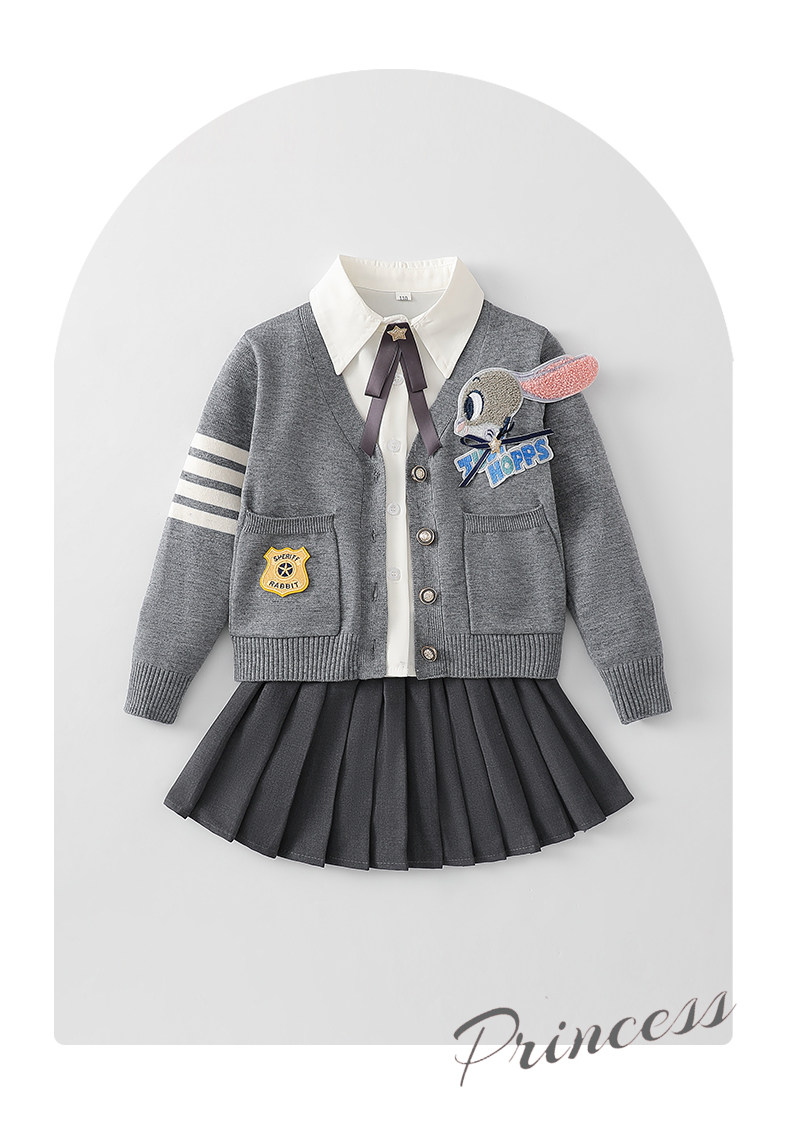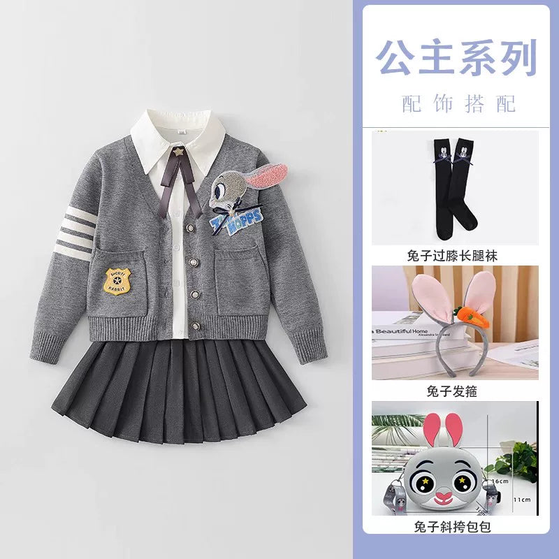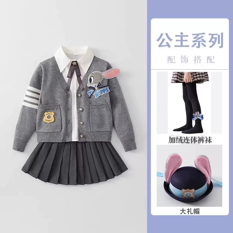 Yeni payız üslubunda qızlar üçün dovşan polis məmuru sviteri üç hissəli dəst, JK ətəyi, dəbli payız və qış uşaq ad günü geyimləri