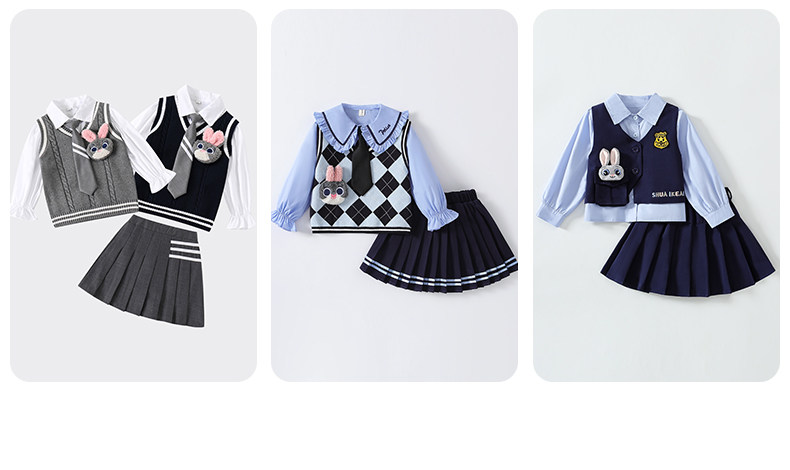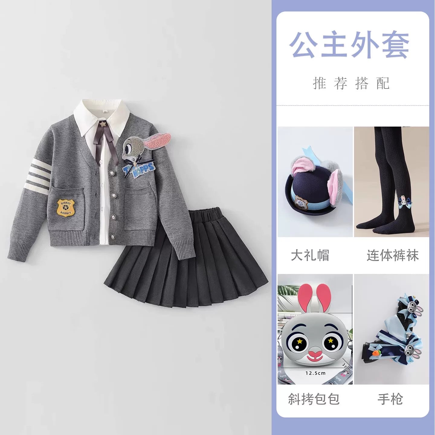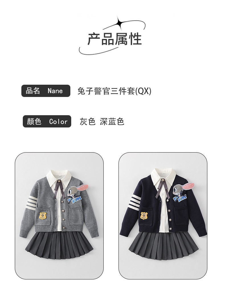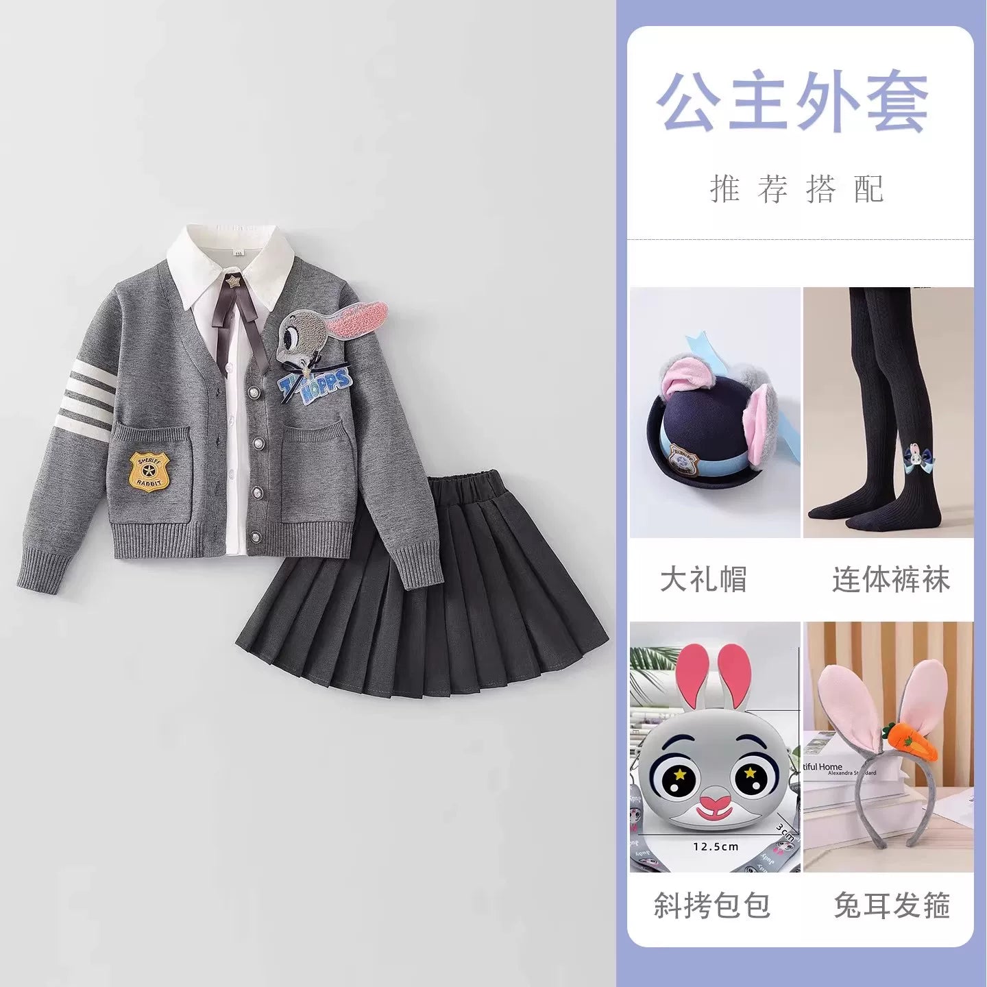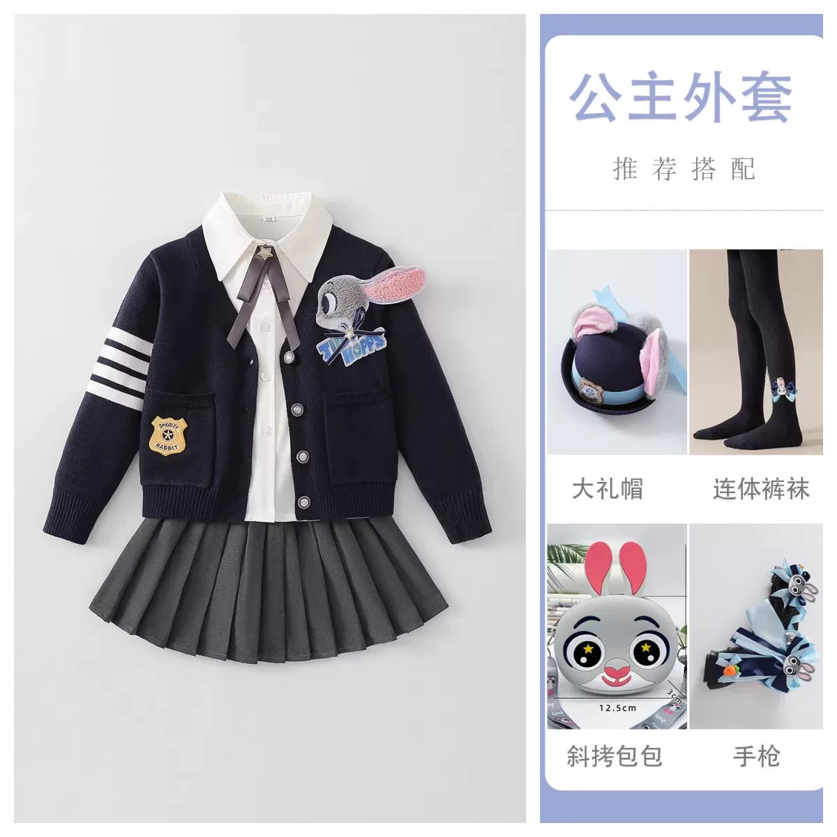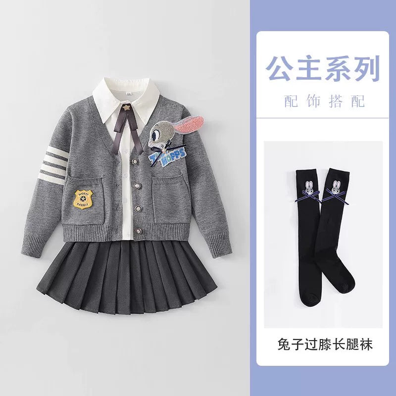 Yeni payız üslubunda qızlar üçün dovşan polis məmuru sviteri üç hissəli dəst, JK ətəyi, dəbli payız və qış uşaq ad günü geyimləri
