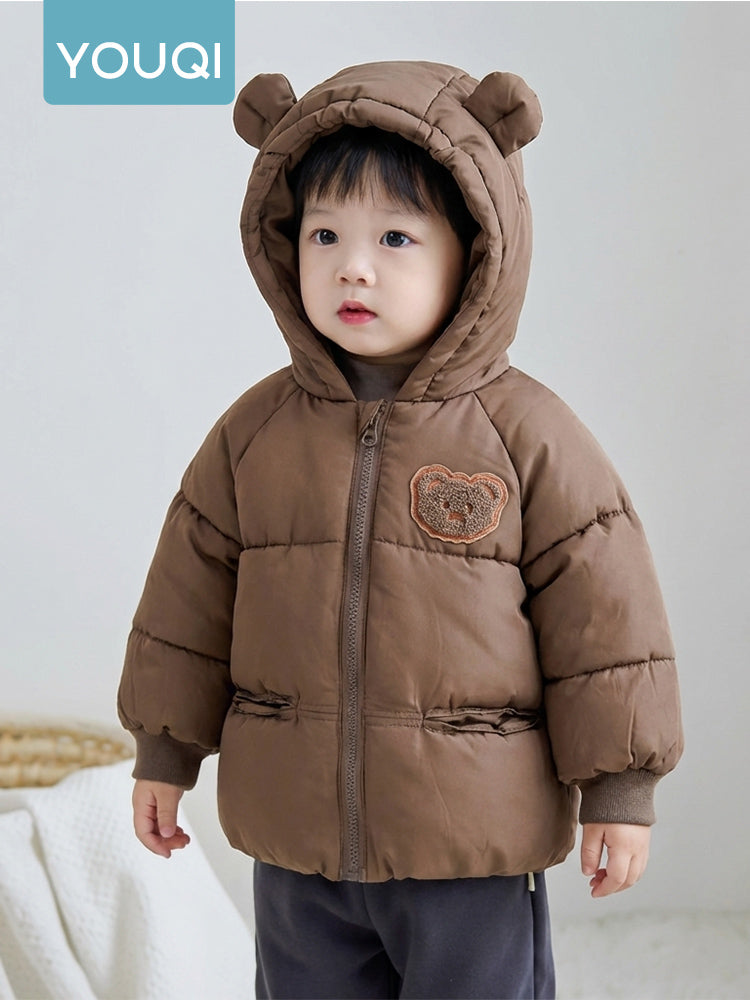 Youqi Qızlar üçün Gödəkçə 2025 Yeni Qış Qalınlaşdırılmış Yun astarlı Küləkdən Qoruyucu Başlıqlı Pambıq Yastıqlı Gödəkçə Oğlanlar və Qızlar üçün