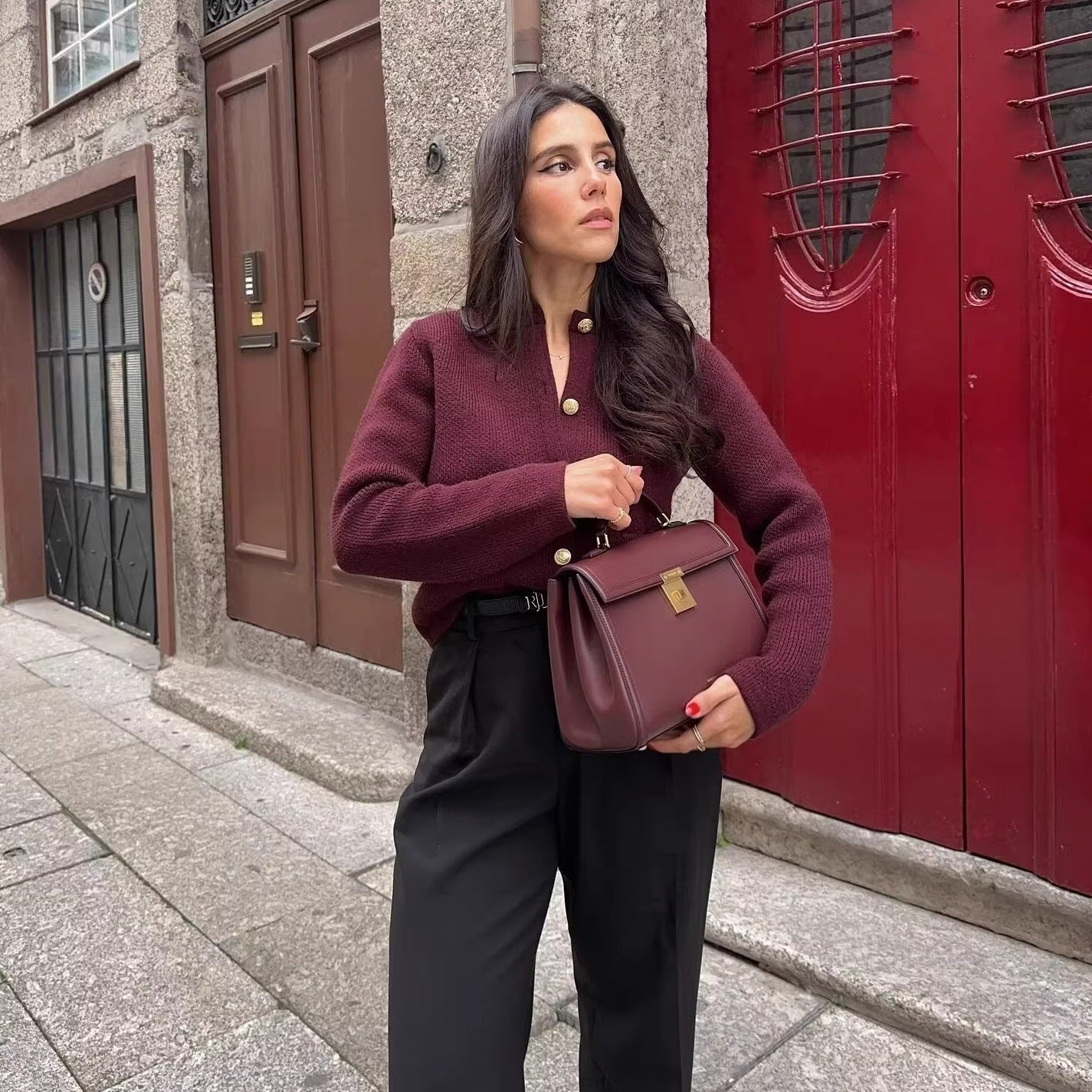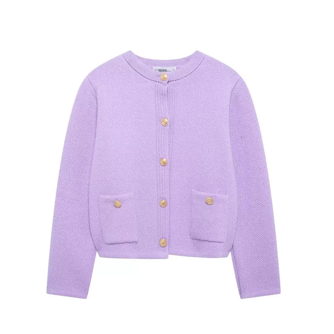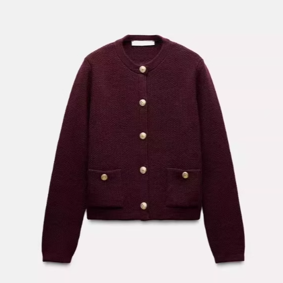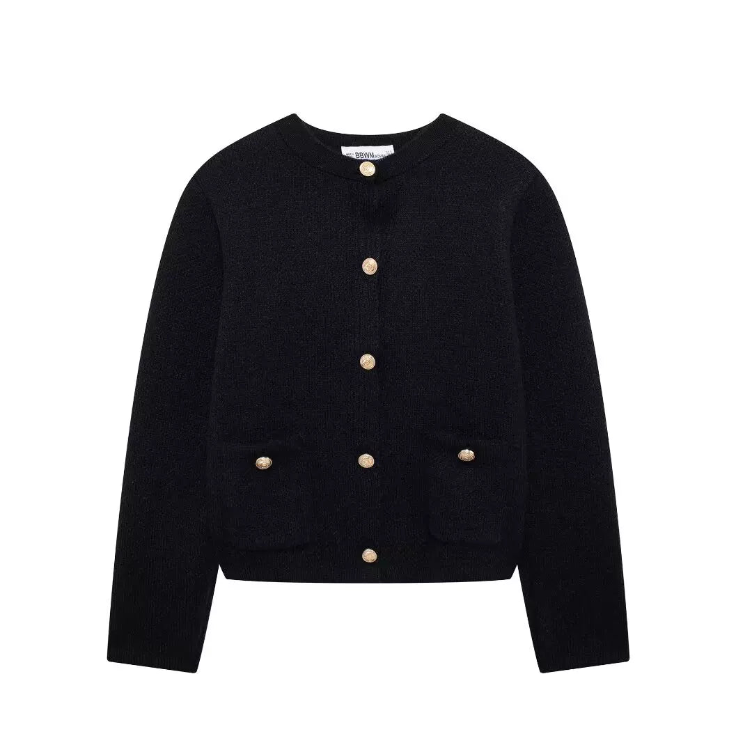 ZA Payız/Qış Yeni Qadın Geyimləri Avropa və Amerika Üslubunda Qızılı Düyməli Uzunqol Dəyirmi Yaxalı Qısa Örgü Kardiqan 6427144